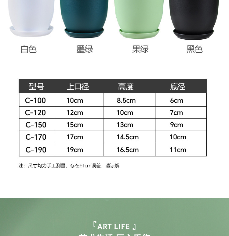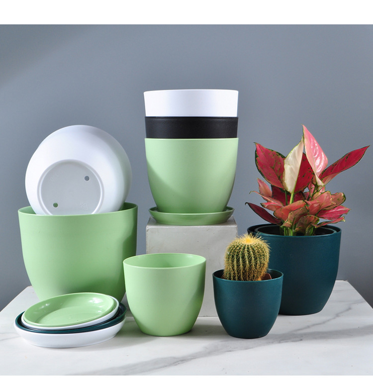 Новый тип утолщения яйцевидной формы пластиковый цветочный горшок скандинавский простой домашний большой размер матовый зеленый посадка на пол смола цветочный горшок оптом