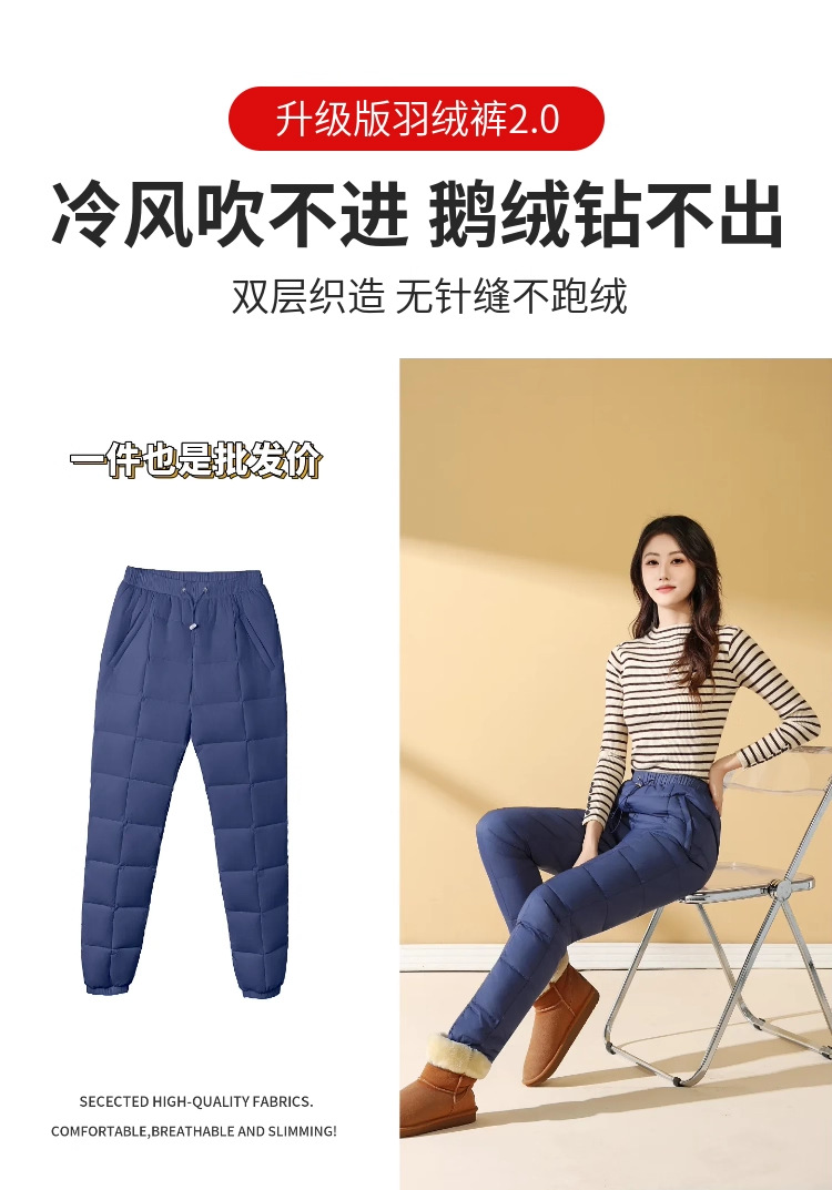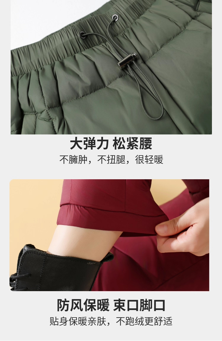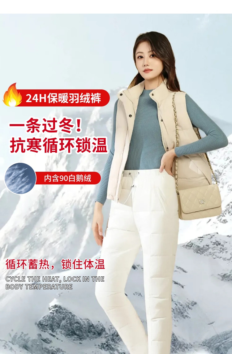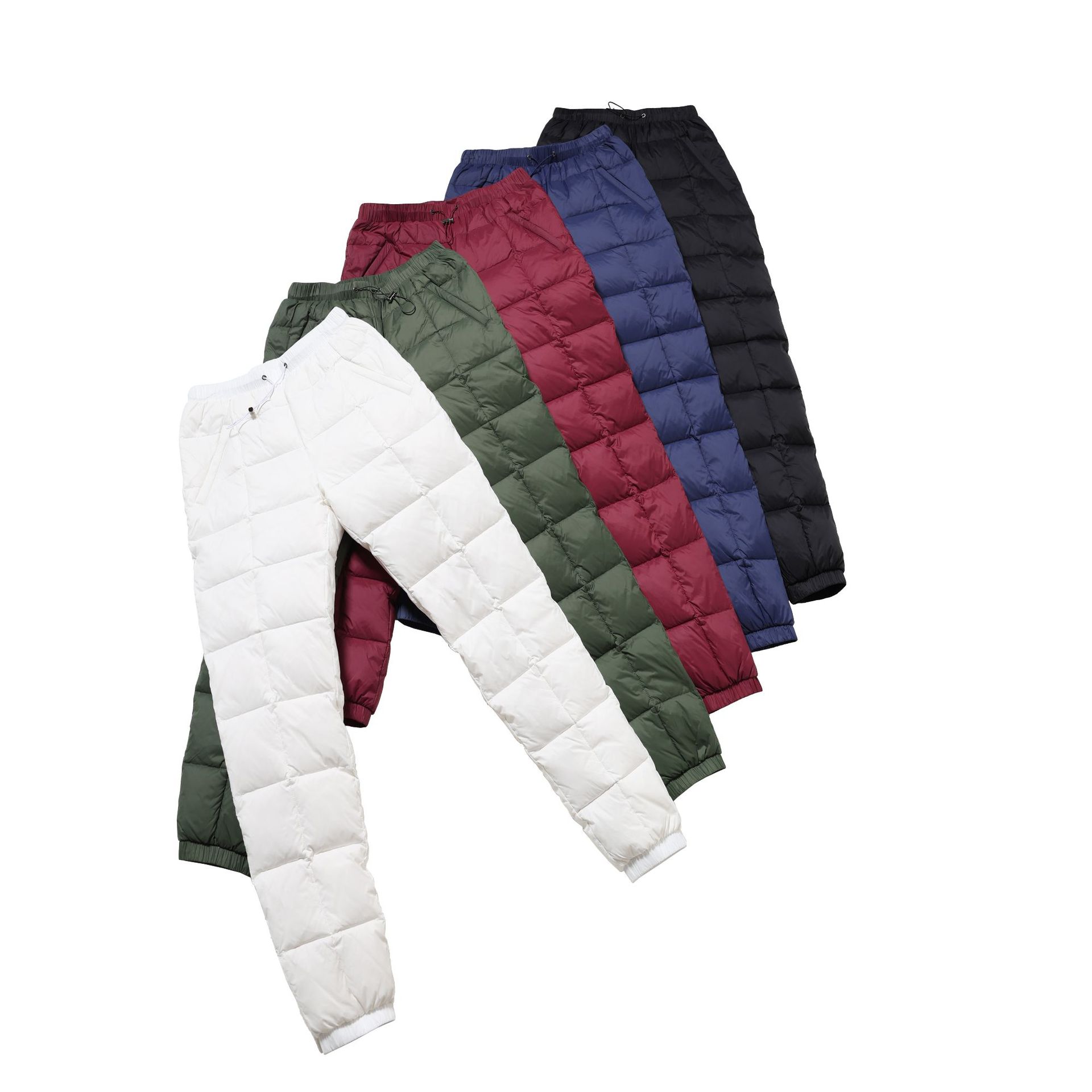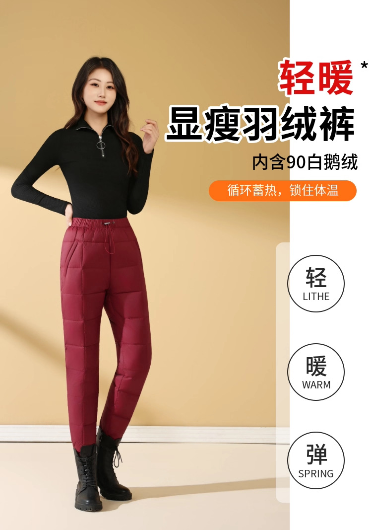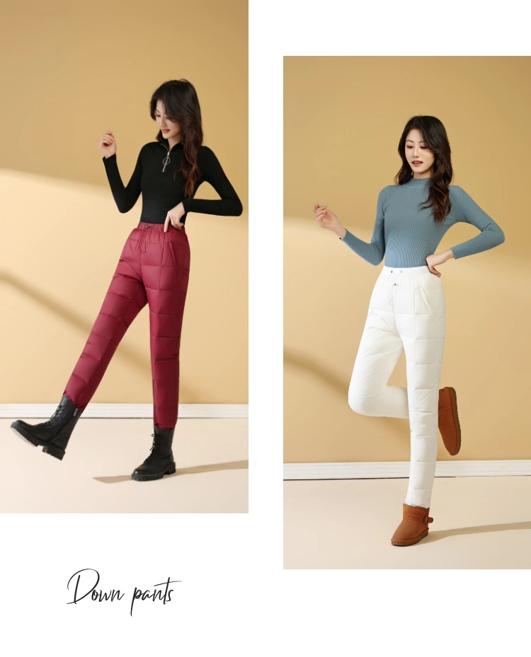 Зимние теплые женские пуховые брюки 2024-1 из 90% белого гусиного пуха, пять цветов, утолщенные, облегающие, теплые