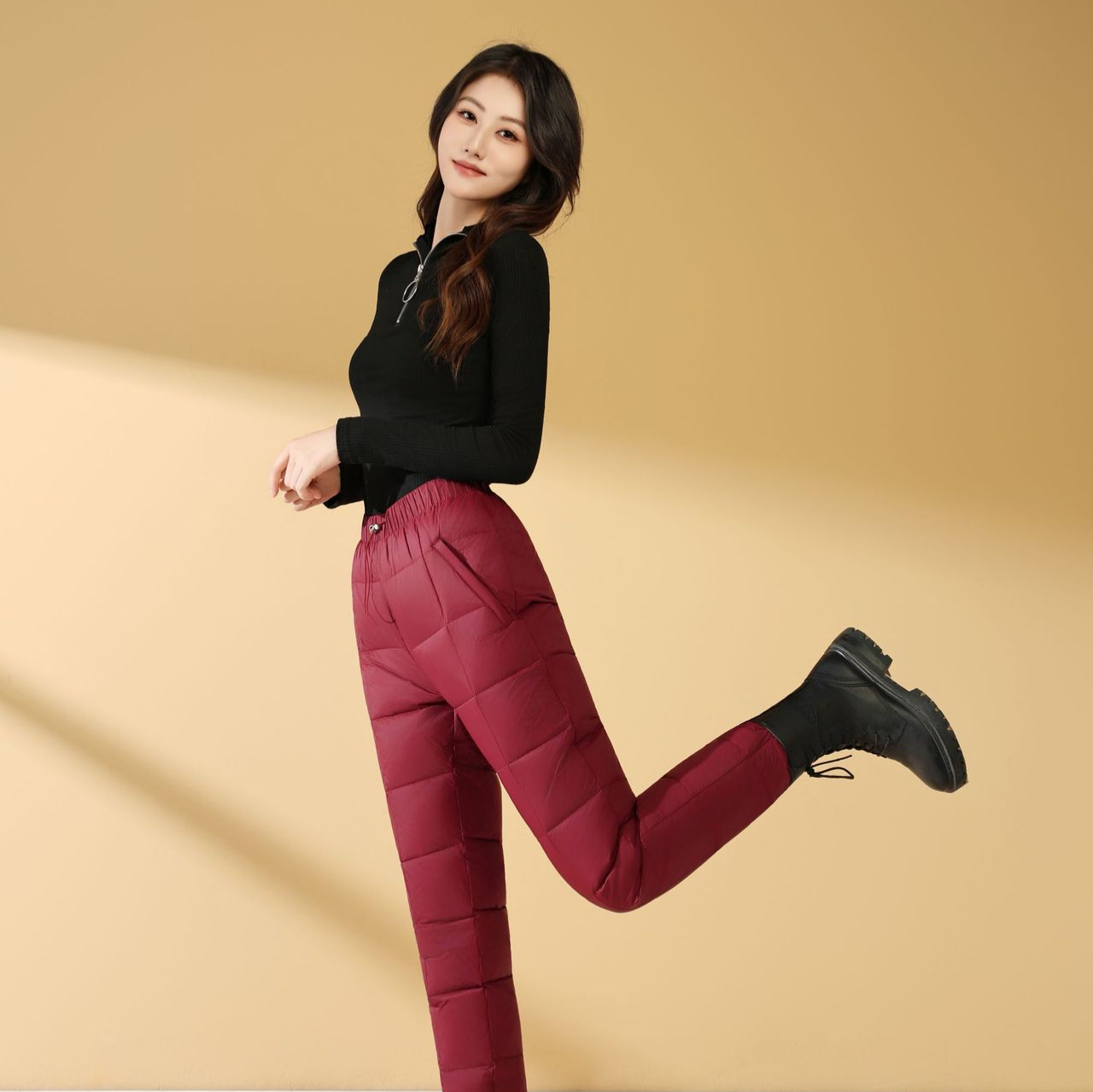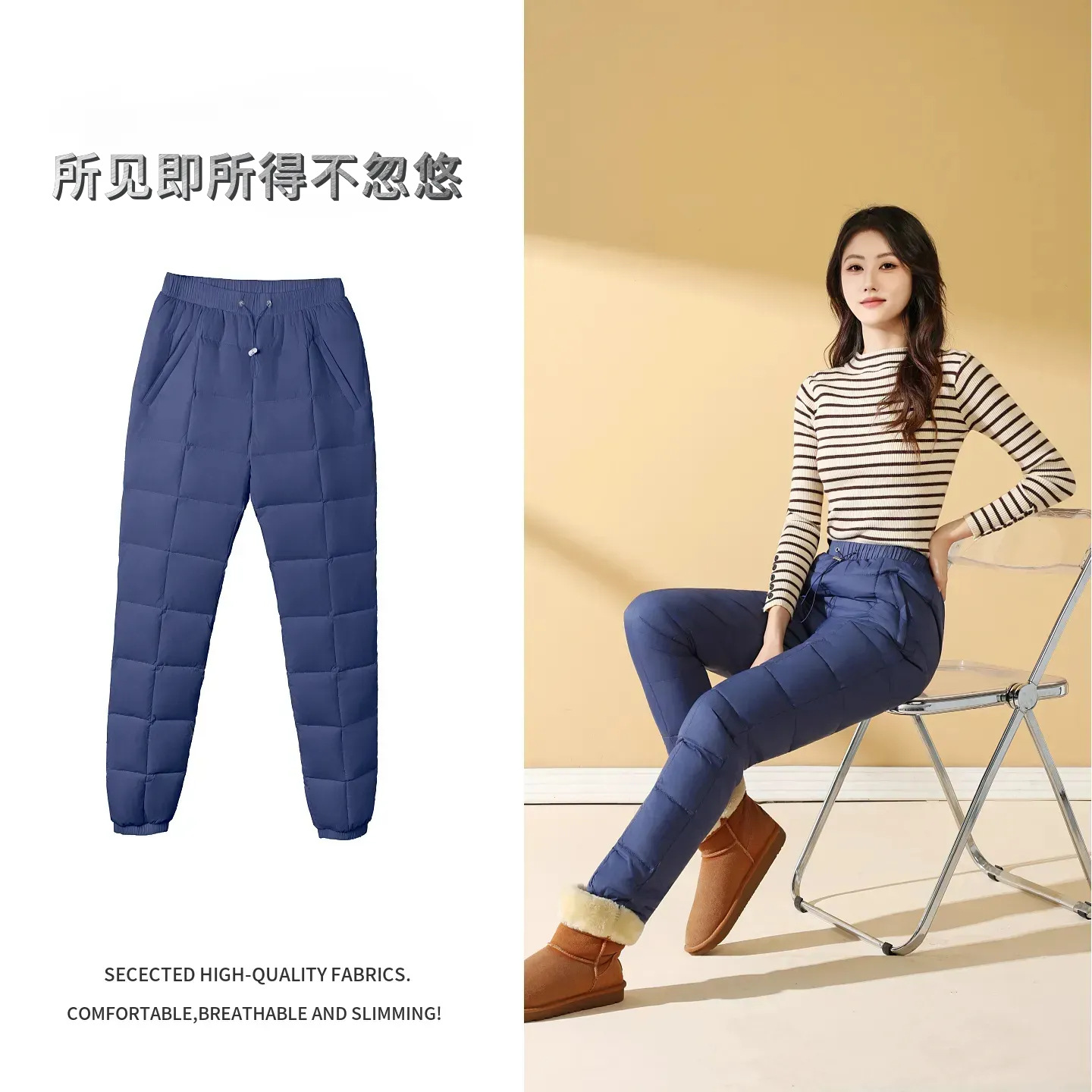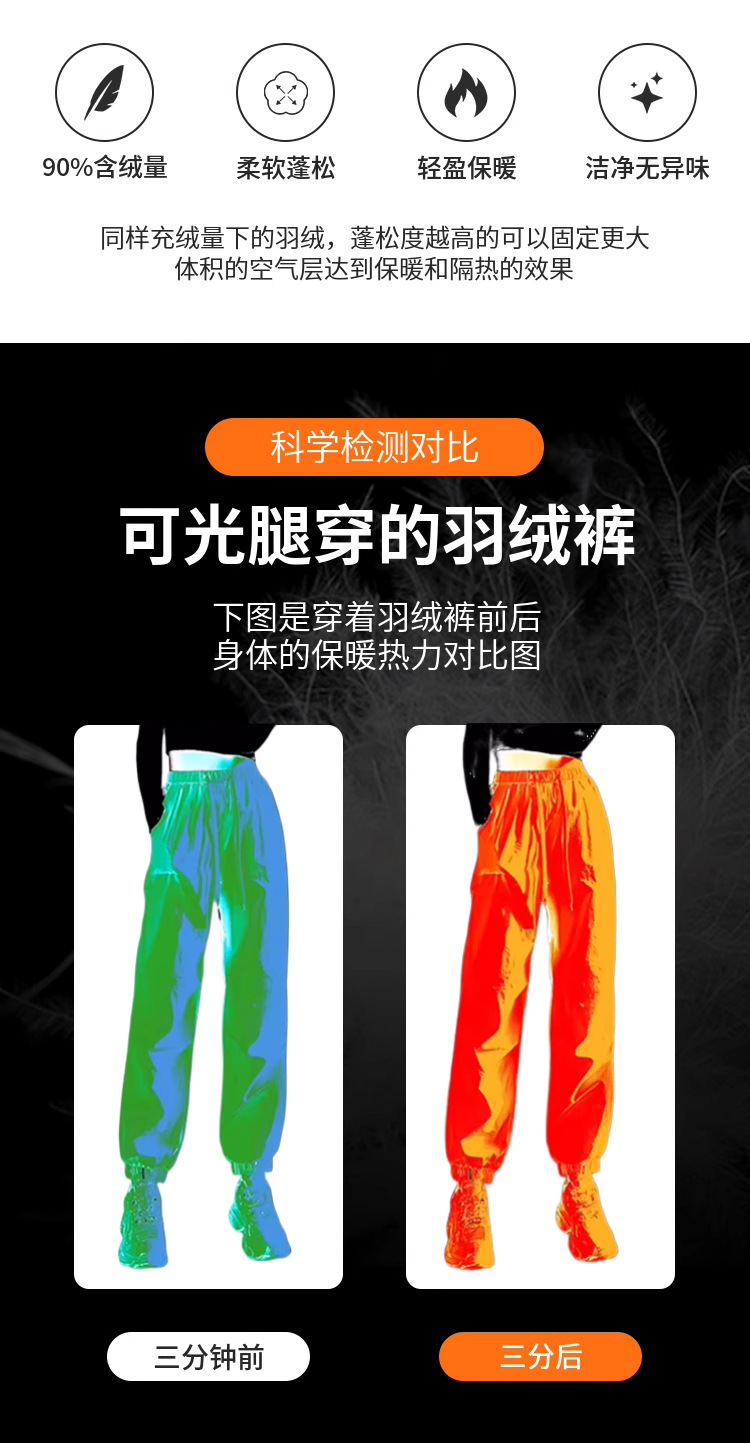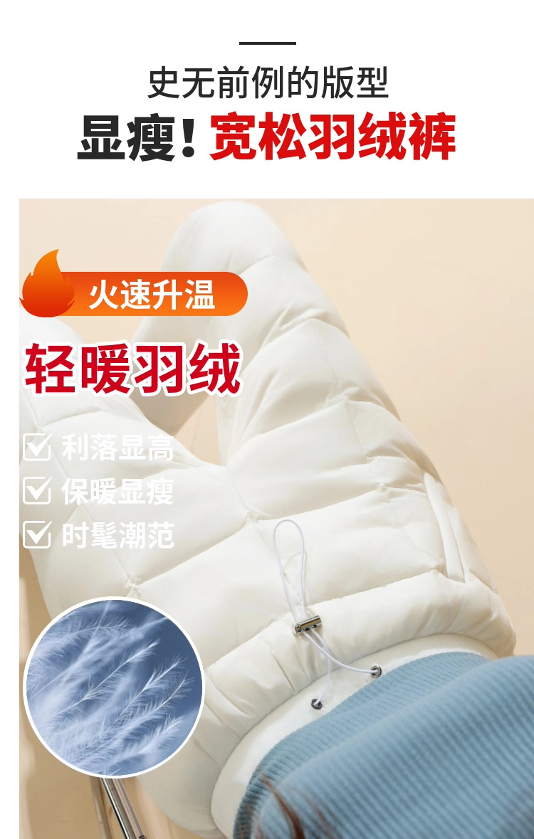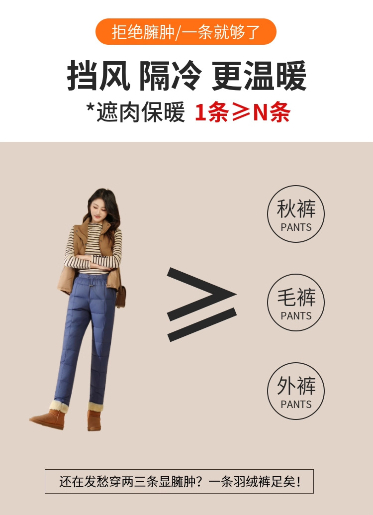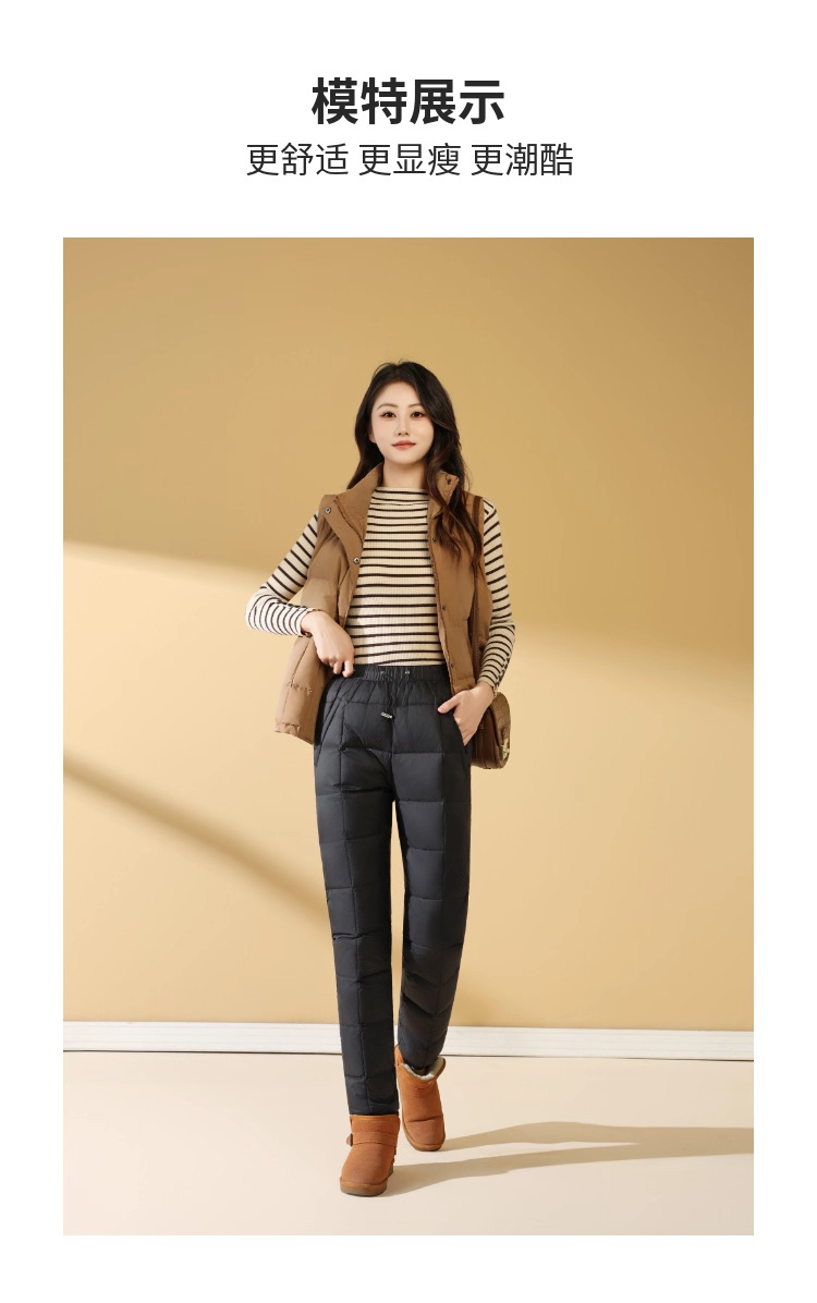Зимние теплые женские пуховые брюки 2024-1 из 90% белого гусиного пуха, пять цветов, утолщенные, облегающие, теплые