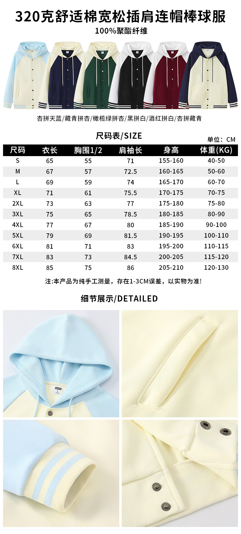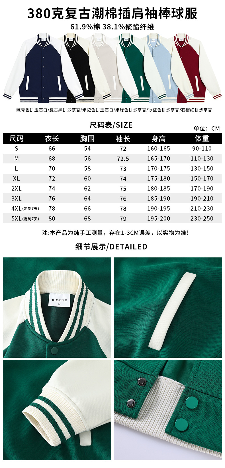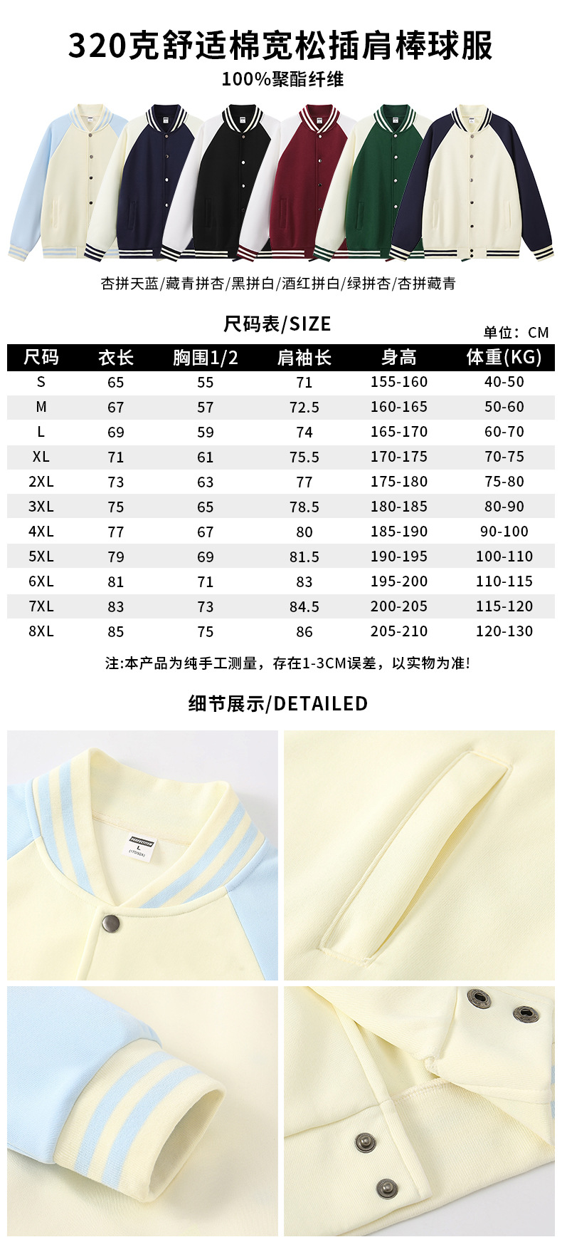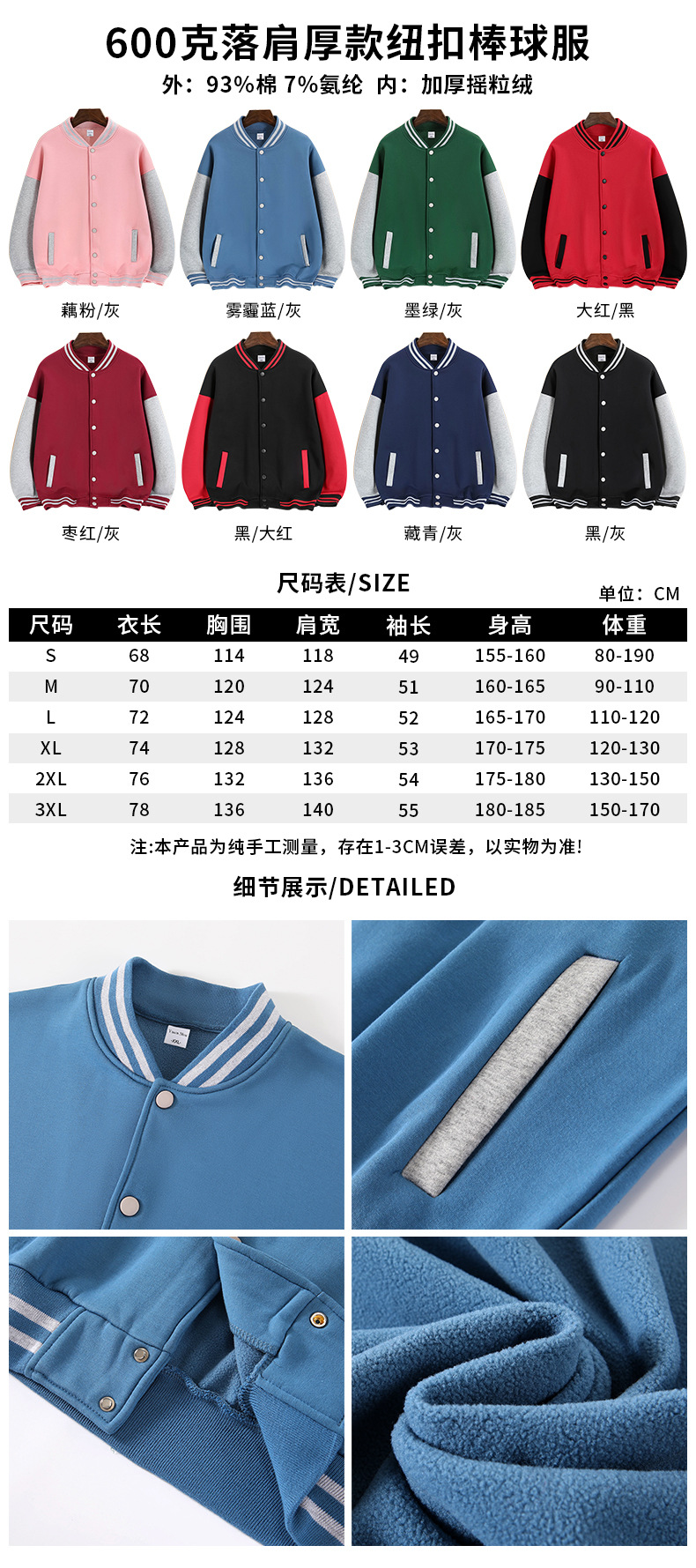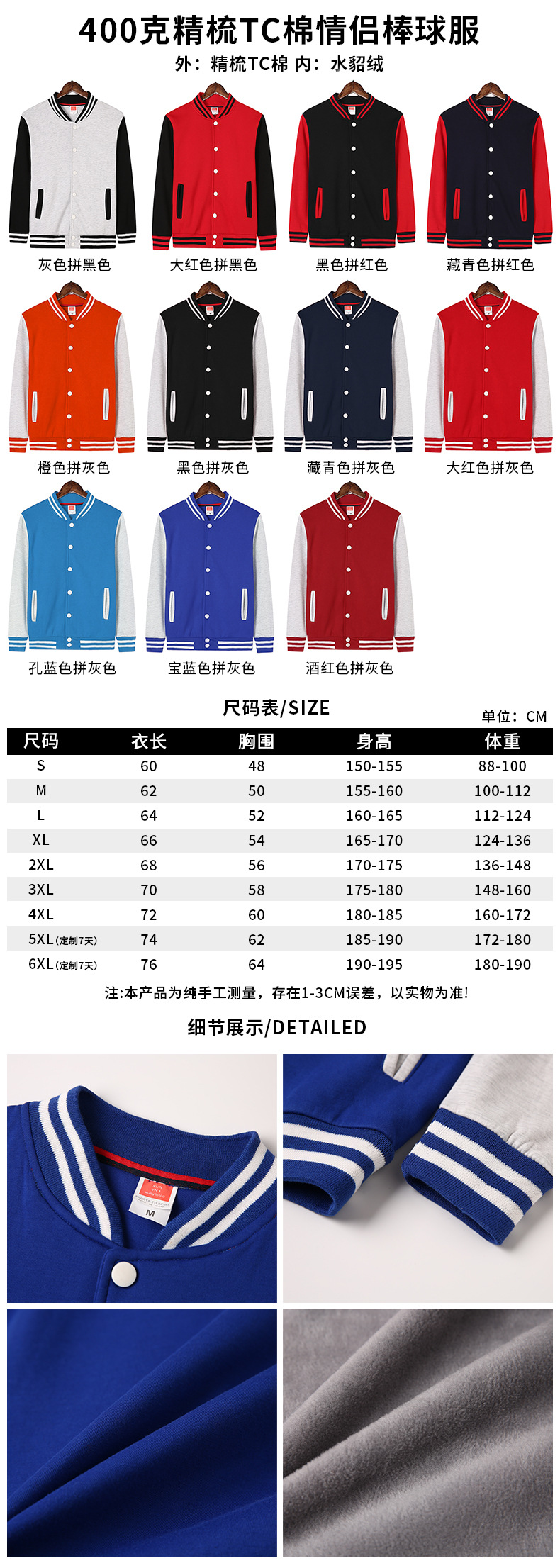 Стиль 1-200г пара свободная бейсбольная форма; Стиль 2-200 г пара свободная бейсбольная форма контрастного цвета; Стиль 3-320 г клетчатая хлопковая свободная бейсбольная форма реглан; Стиль 4-320 г клетчатая хлопковая свободная бейсбольная форма с капюшоном реглан; Стиль 5-320 г модная брендовая бейсбольная форма из чистого хлопка; Стильная бейсбольная форма на молнии из чистого хлопка 6-320 г.; Стиль 7–100 г корейская хлопковая прямая бейсбольная форма на тонкой молнии; Стиль 8——360 г ватный тампон пике униформа; Стиль 9-380г Ретро модная бейсбольная форма из хлопка с рукавами реглан; Стиль 10-380г Ретро модная хлопковая модная бейсбольная форма; Стильная бейсбольная форма для пары из чесаного хлопка TC, 11-400 г.; Стиль 12-450 г Корейская хлопковая бейсбольная форма на толстой молнии; Стильная однотонная толстая бейсбольная форма 13-600 г.; Стильная бейсбольная форма с заниженными плечами и пуговицами, 14-600 г.