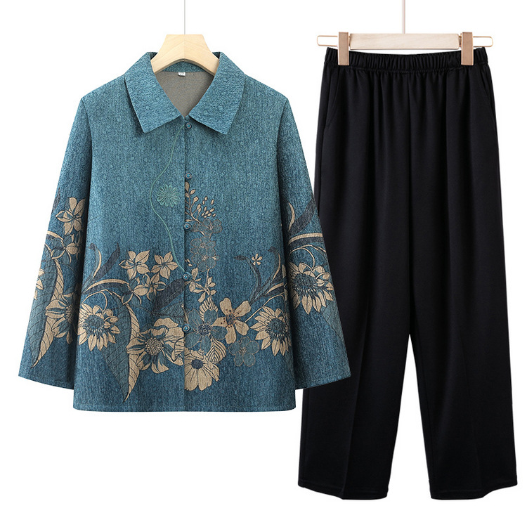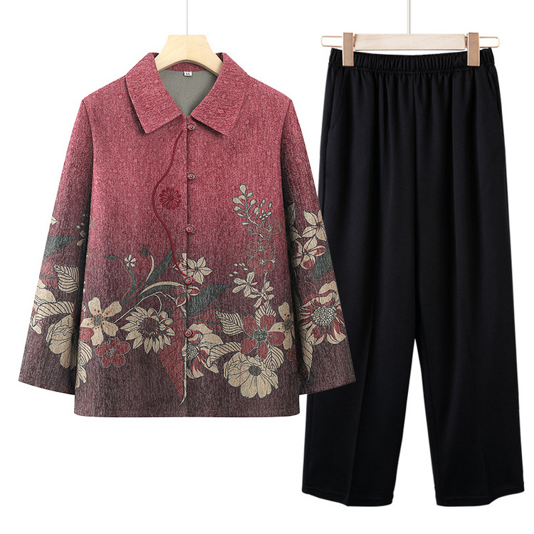 Осенняя бабушка рубашка топ для пожилых мам новый осенний костюм из двух частей 60-летняя 70 повседневная одежда для пожилых людей