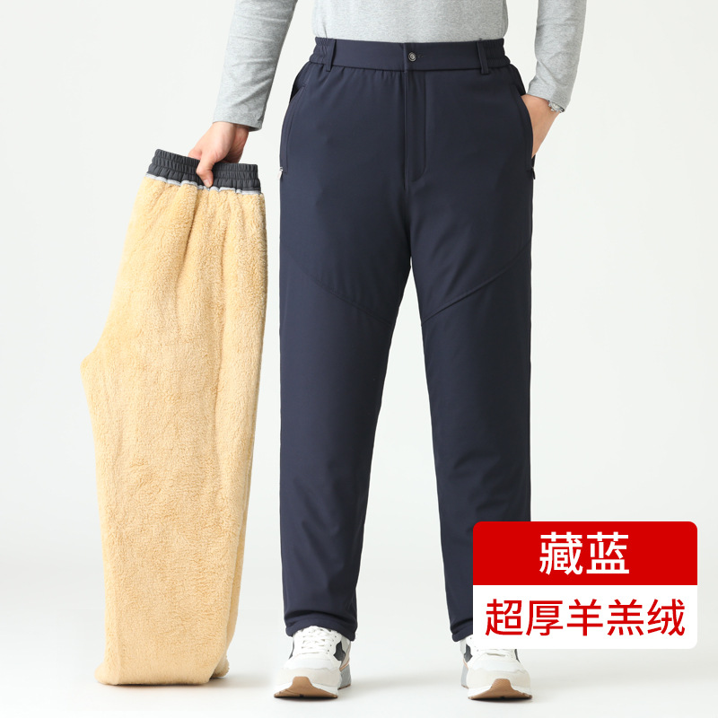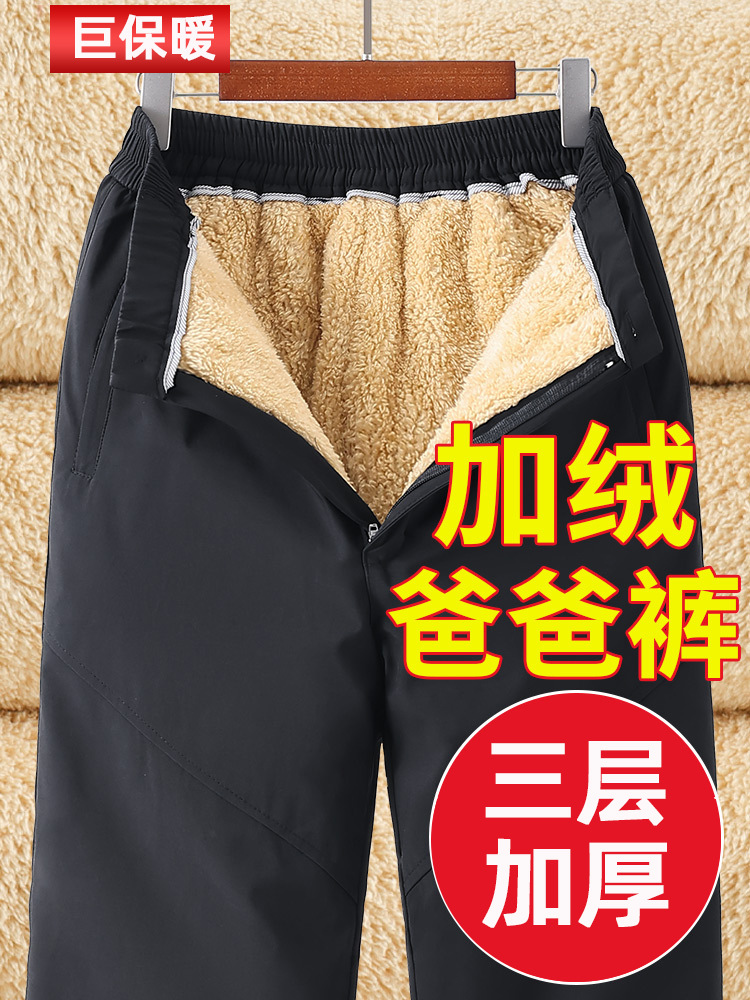 Брюки для папы для активного отдыха, хлопковые брюки для осени и зимы, утепленные флисом и утолщенные длинные брюки, зимние брюки для людей среднего и старшего возраста, из овечьей шерсти, свободного кроя, восточноевропейские брюки.