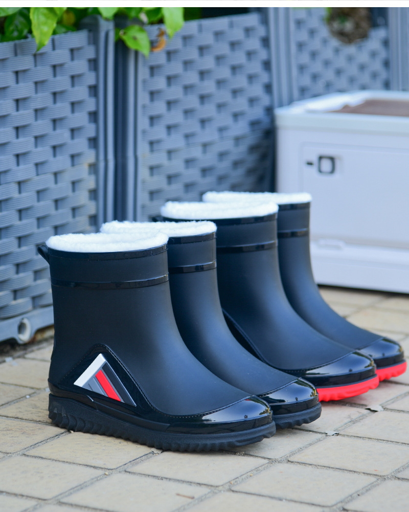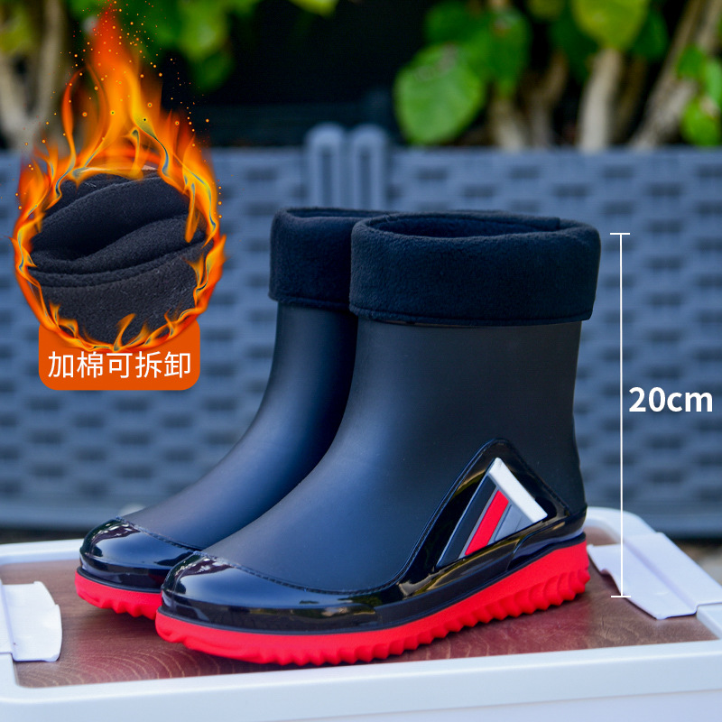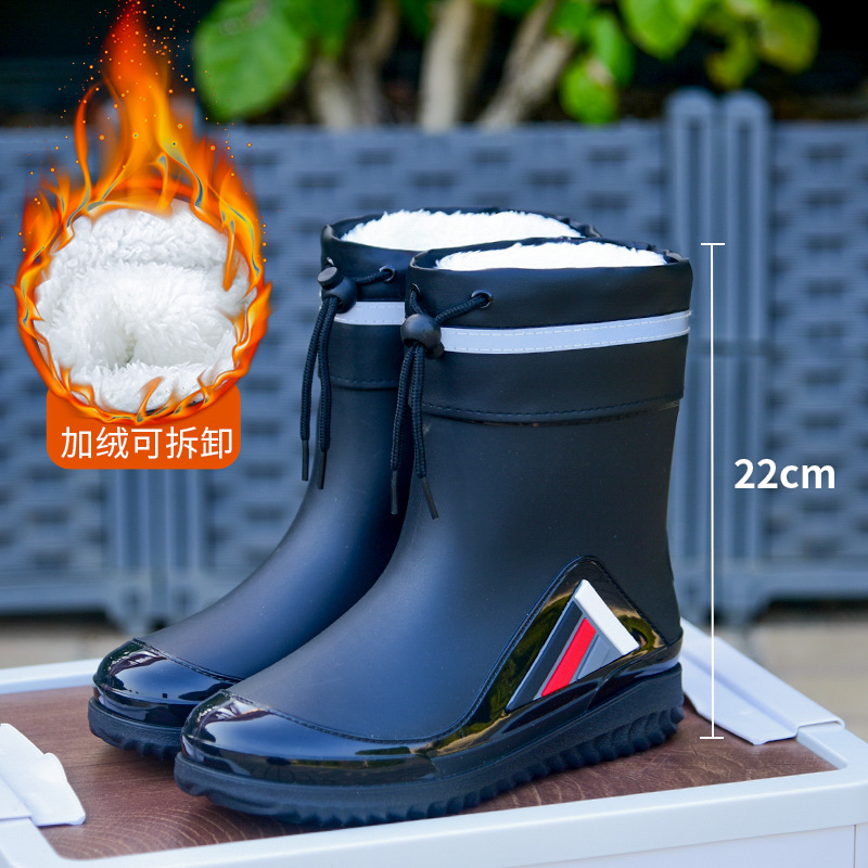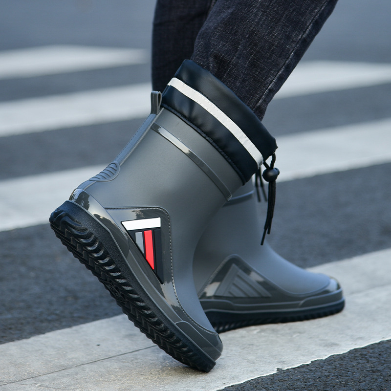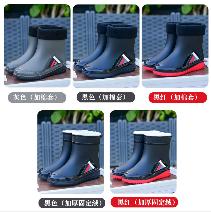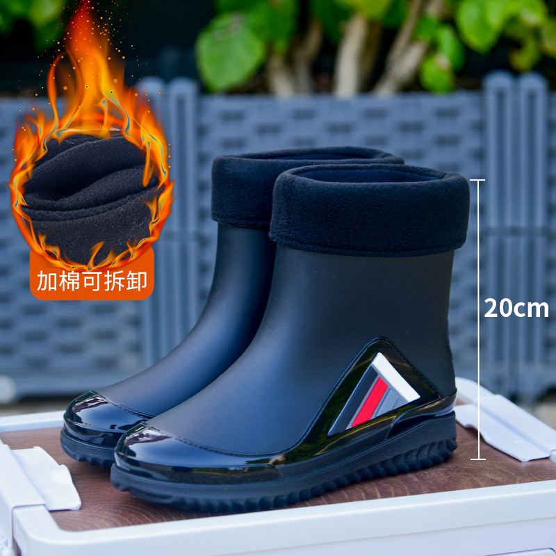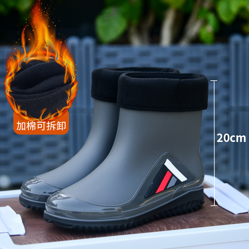 Трансграничные новые стенные модные мужские и женские дождевые сапоги короткая нескользящая короткая трубка плюс бархат наружная работа теплые водонепроницаемые дождевые туфли