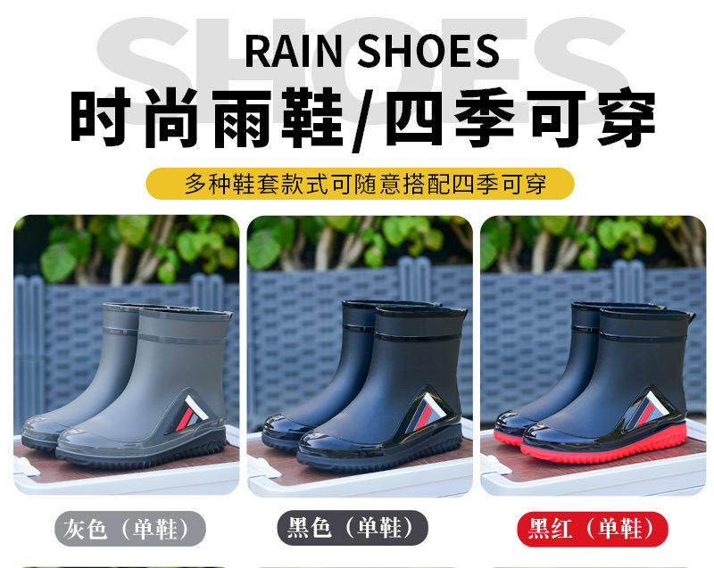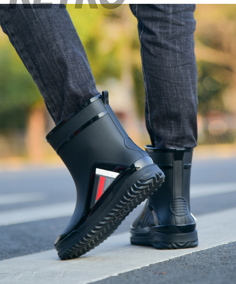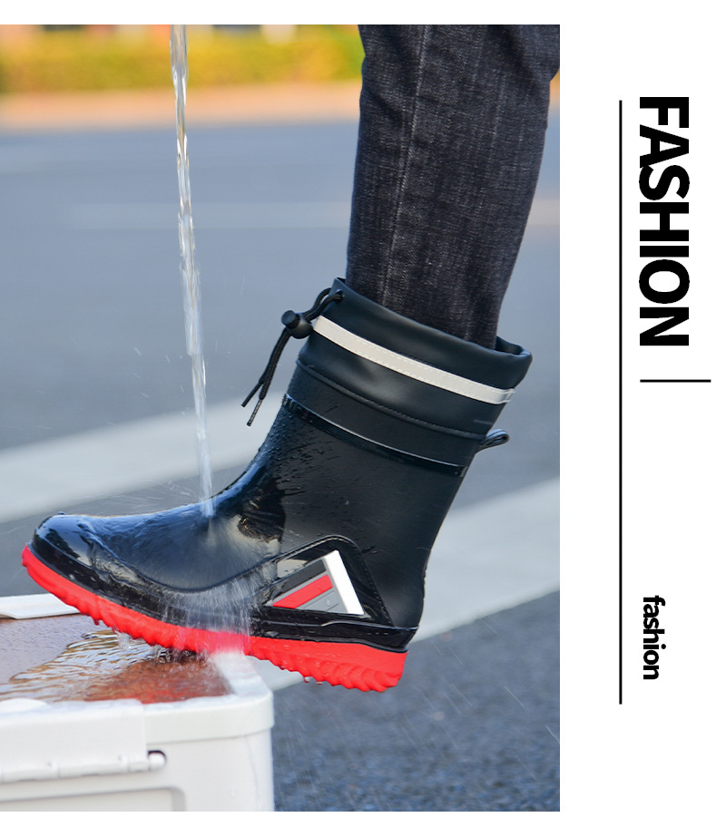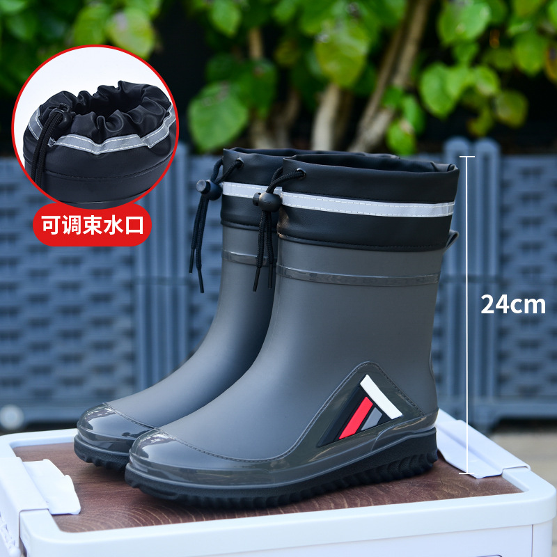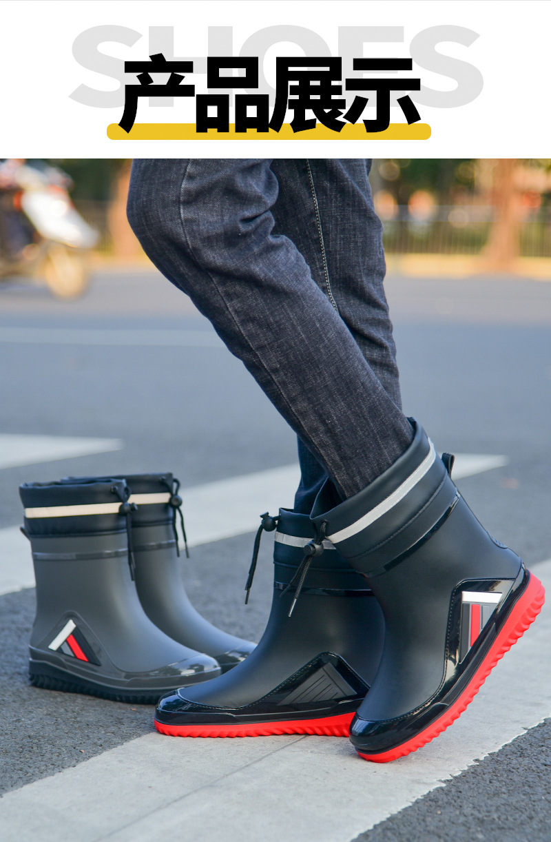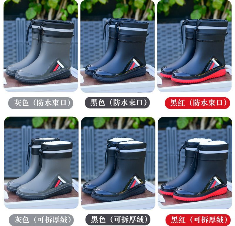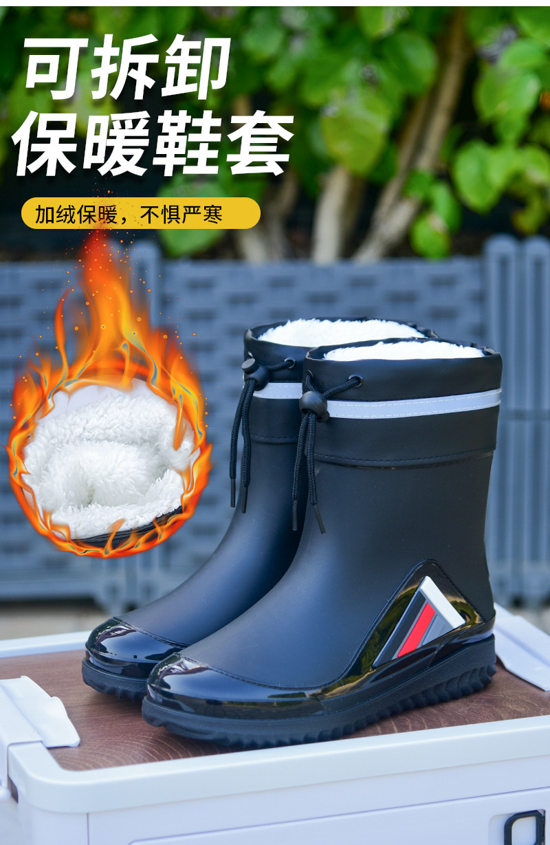 Трансграничные новые стенные модные мужские и женские дождевые сапоги короткая нескользящая короткая трубка плюс бархат наружная работа теплые водонепроницаемые дождевые туфли