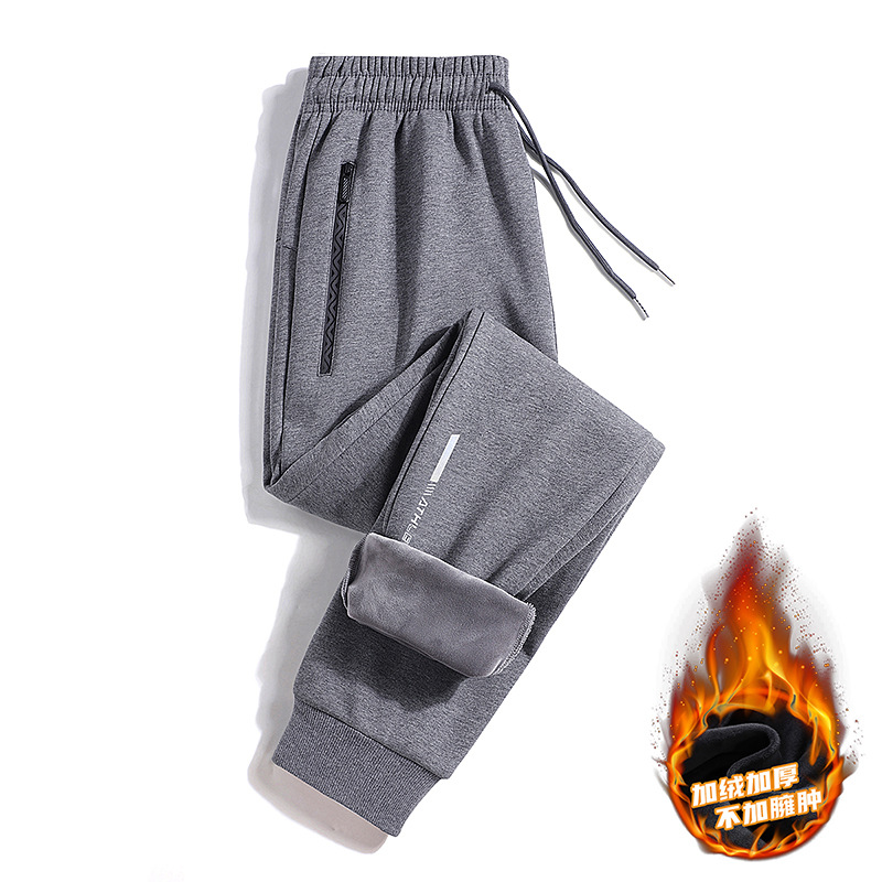 Мужская осень-зима новый сплошной цвет плюс бархат теплая мода свободный плюс размер повседневные брюки эластичные спортивные брюки