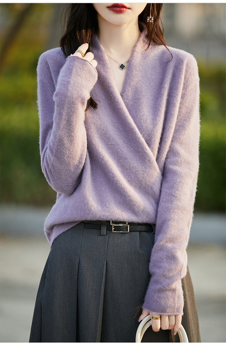 Элитный свитер с перекрестным воротником 2025, новый дизайн, женский шерстяной свитер, 100% чистая шерсть, короткий свитер для женщин