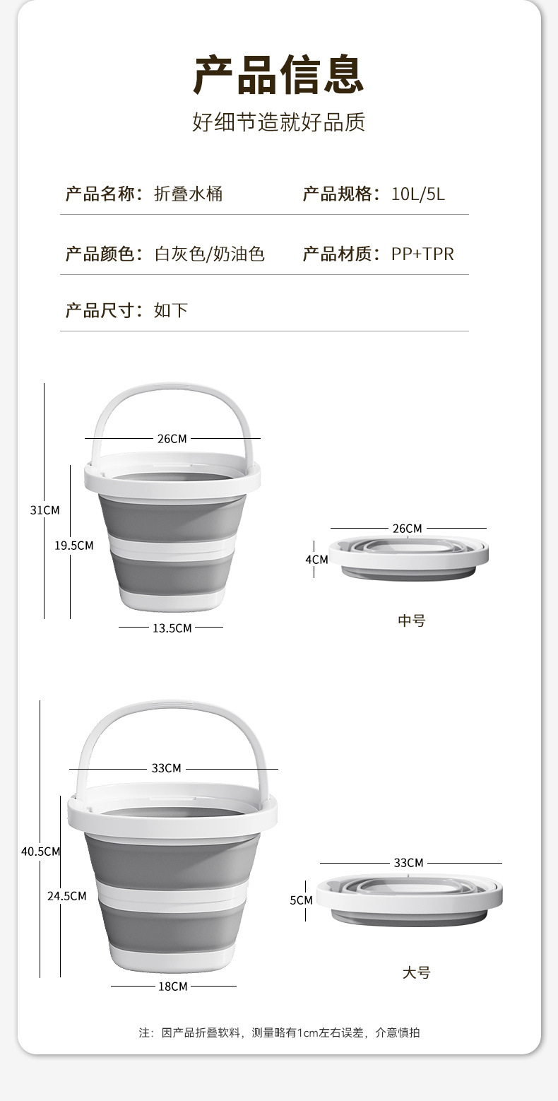 Складной большой размер [бело-серый 10л] вмещает 10kg воду; Складной большой размер [крем 10 л] вмещает 10kg воду; Складной средний размер [бело-серый 5л] вмещает 5kg воду; Складной средний размер [крем 5 л] может удерживать 5kg воду; Складной мини [белый, серый совок для воды]; Складной мини [Кремовый ковш для воды]