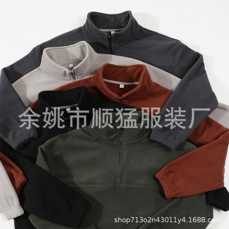 Мужская одежда 300g двухсторонний флисс-флисс-фланчик прилив-свитера новый свободный шнур с флисом и полузастежкой-молнией с флисом