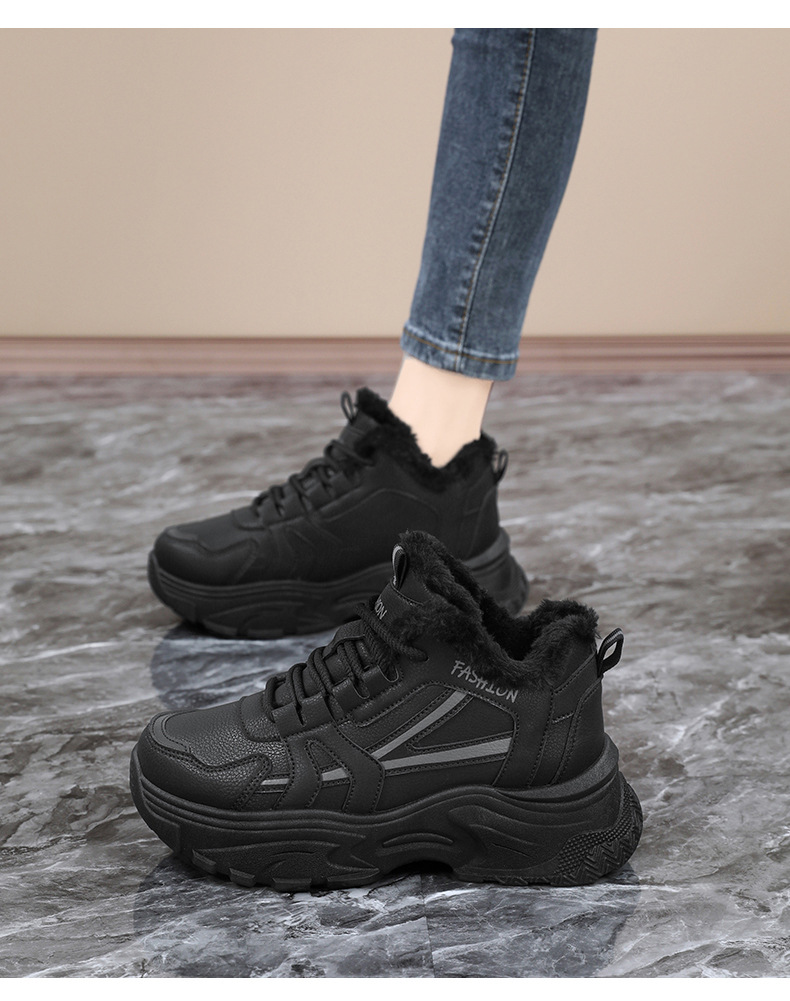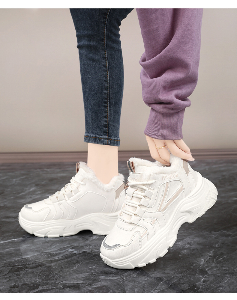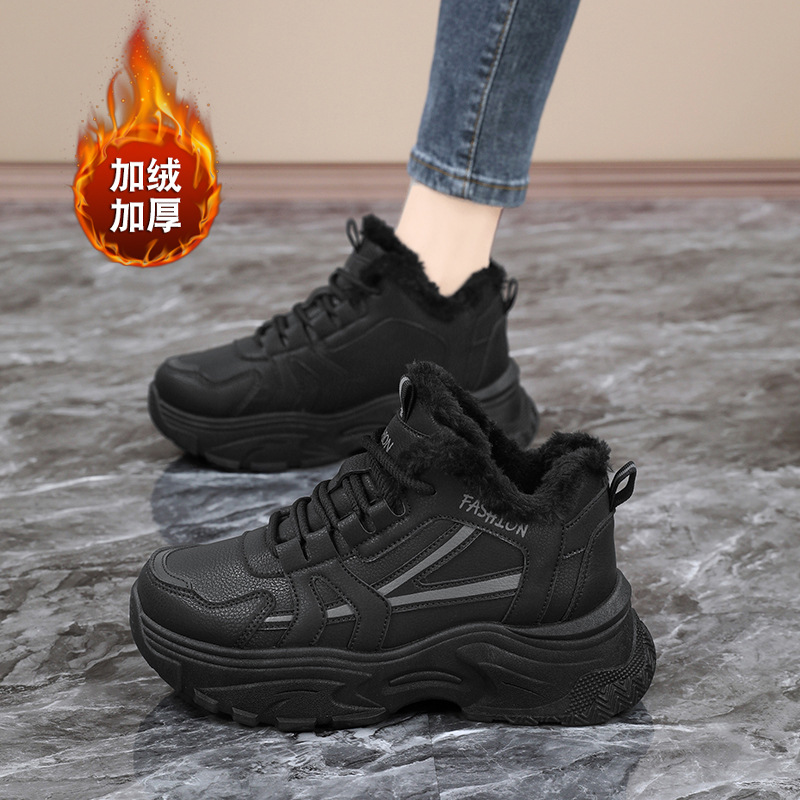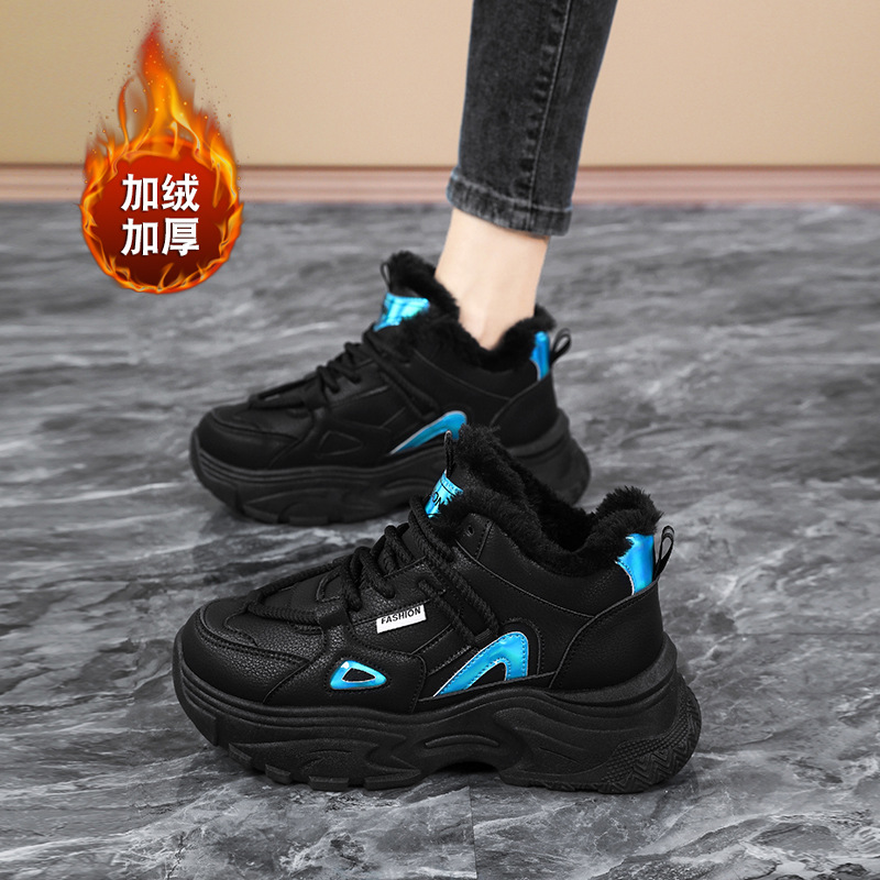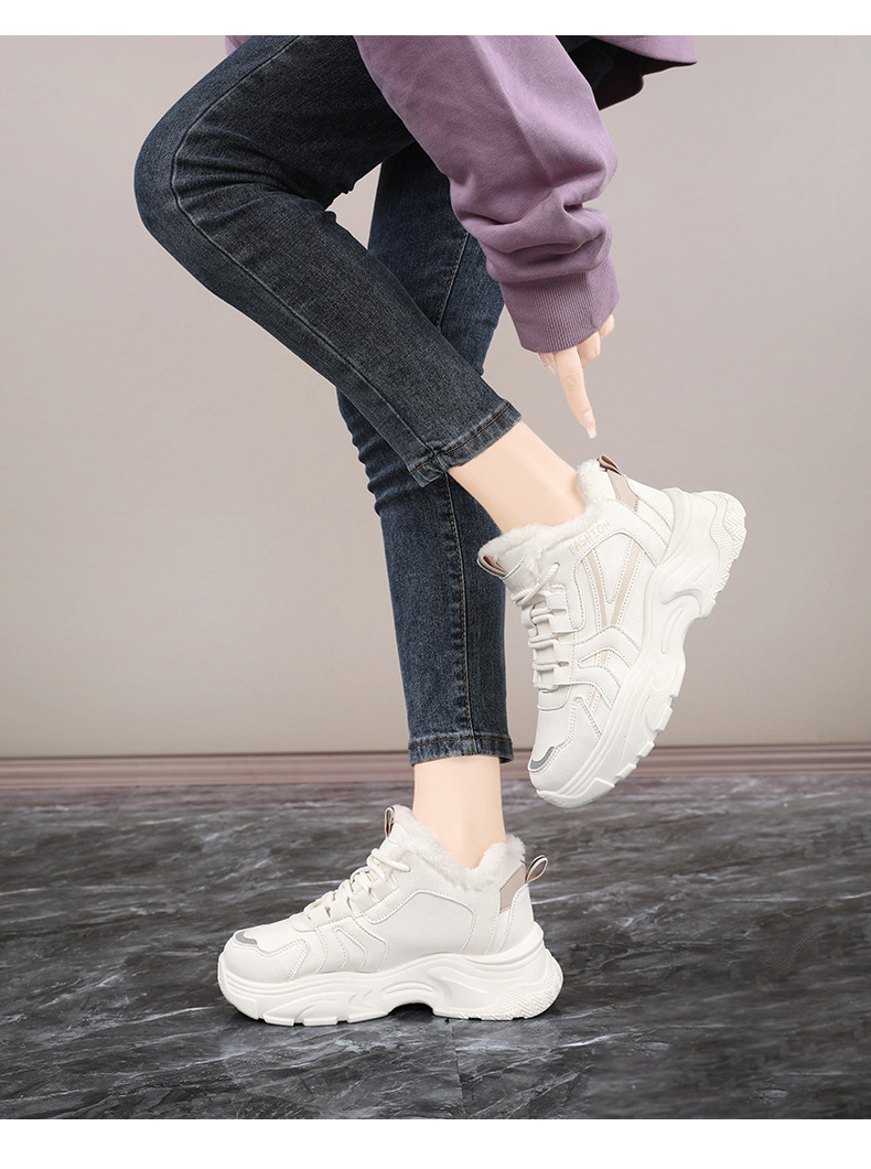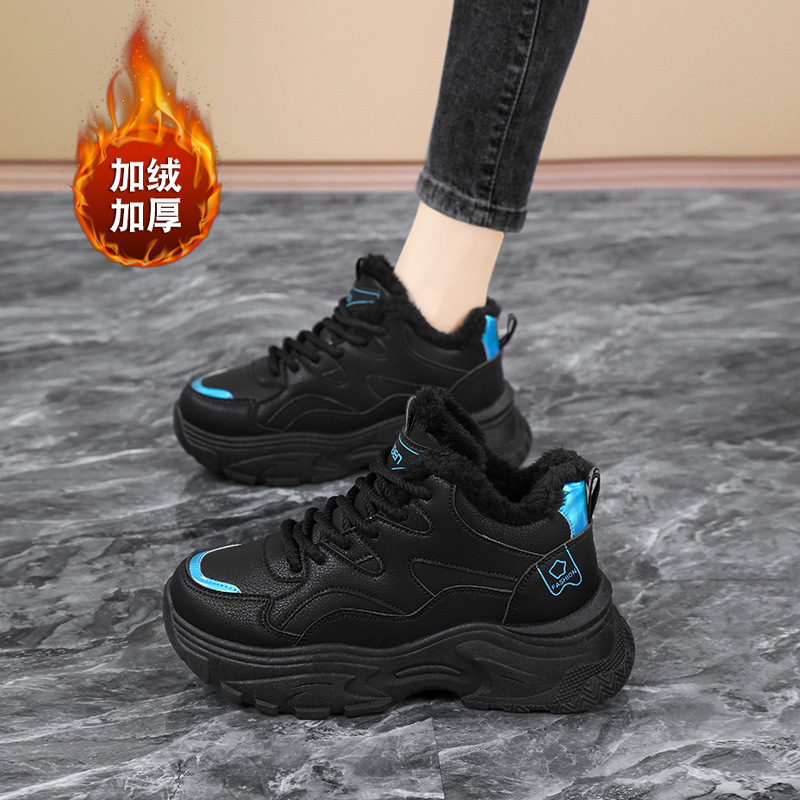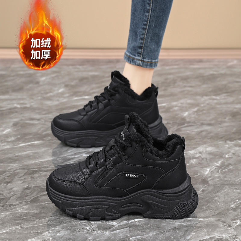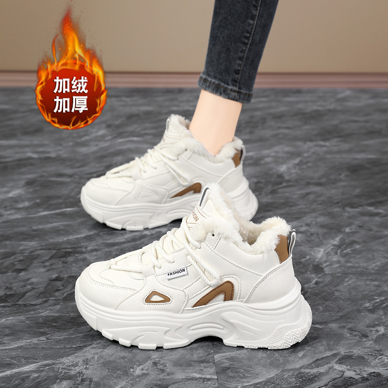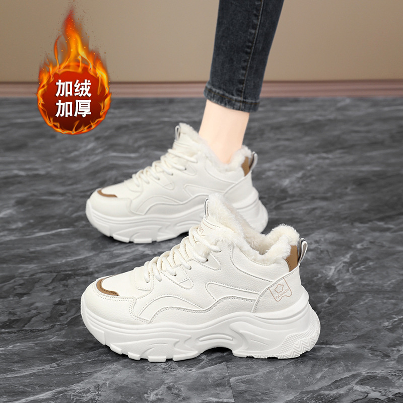 Женские кроссовки-«дад-шоу» 2025: новые зимние высокие кеды на толстой подошве, увеличивающие рост, на флисовой подкладке, спортивные, из хлопка, с кожаной поверхностью, универсальные, большие размеры