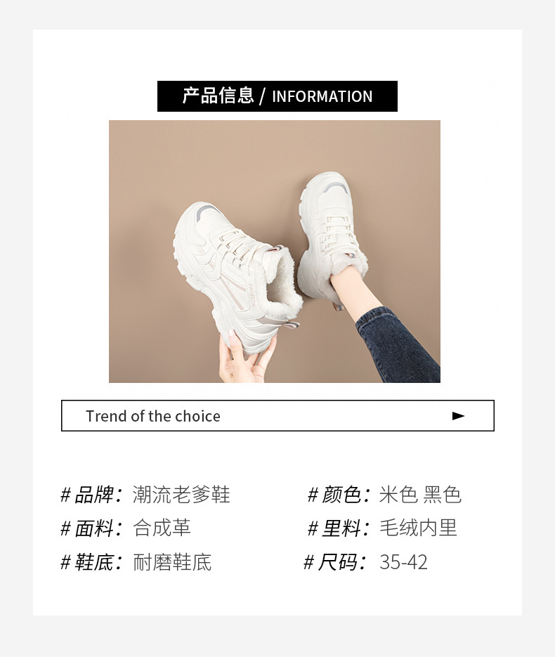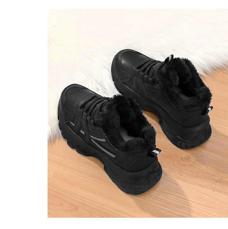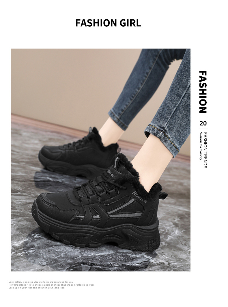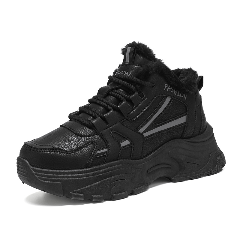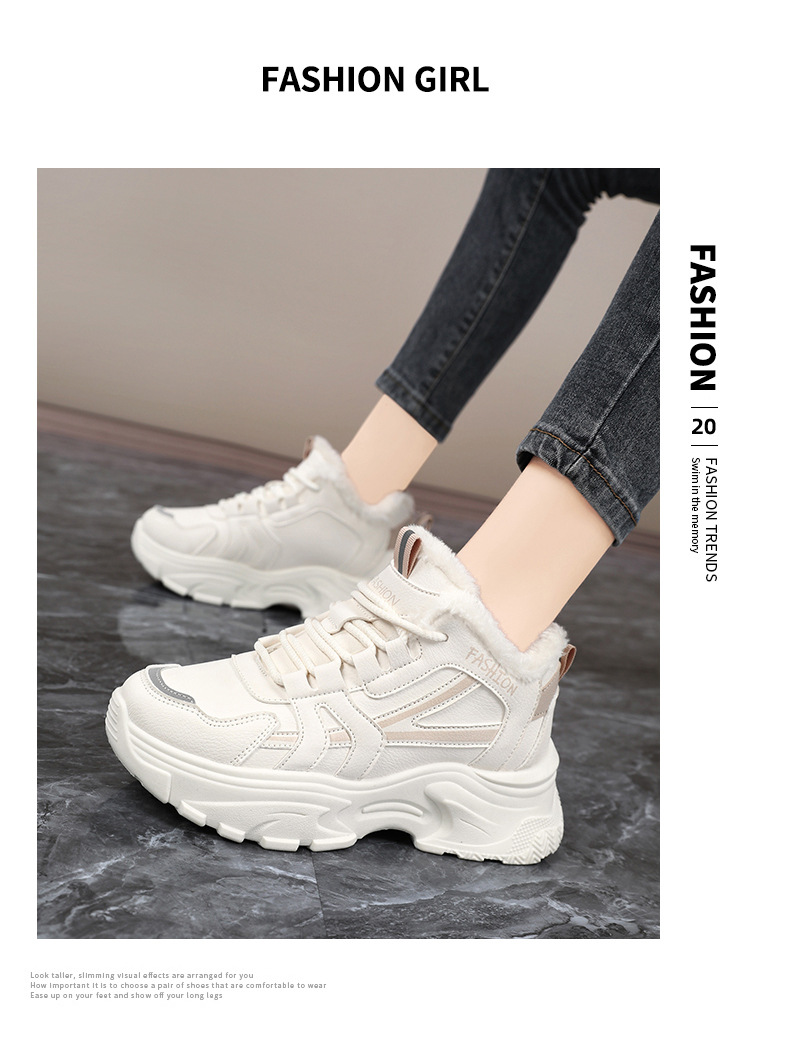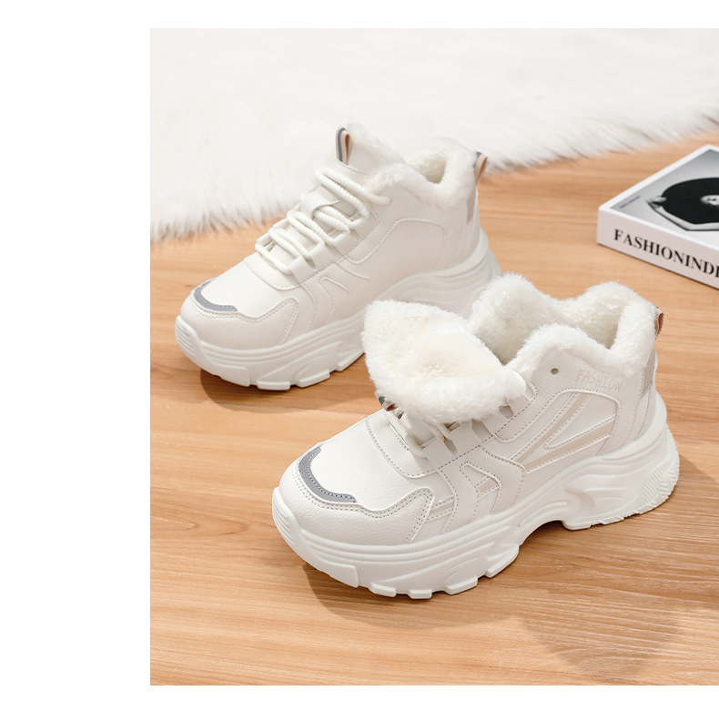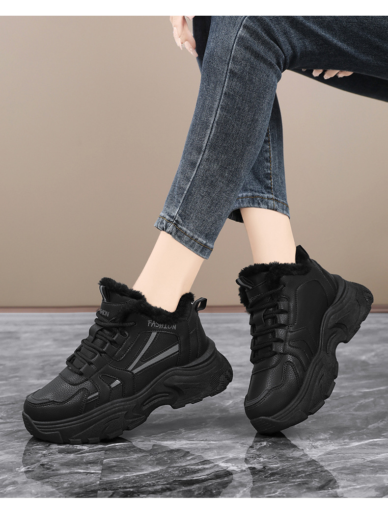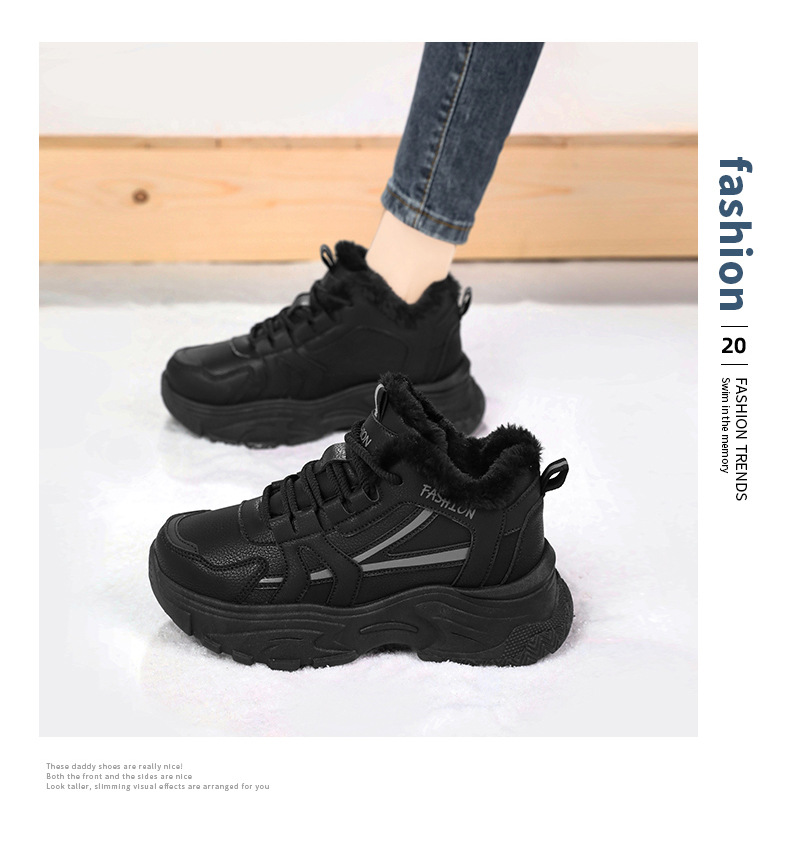 Женские кроссовки-«дад-шоу» 2025: новые зимние высокие кеды на толстой подошве, увеличивающие рост, на флисовой подкладке, спортивные, из хлопка, с кожаной поверхностью, универсальные, большие размеры