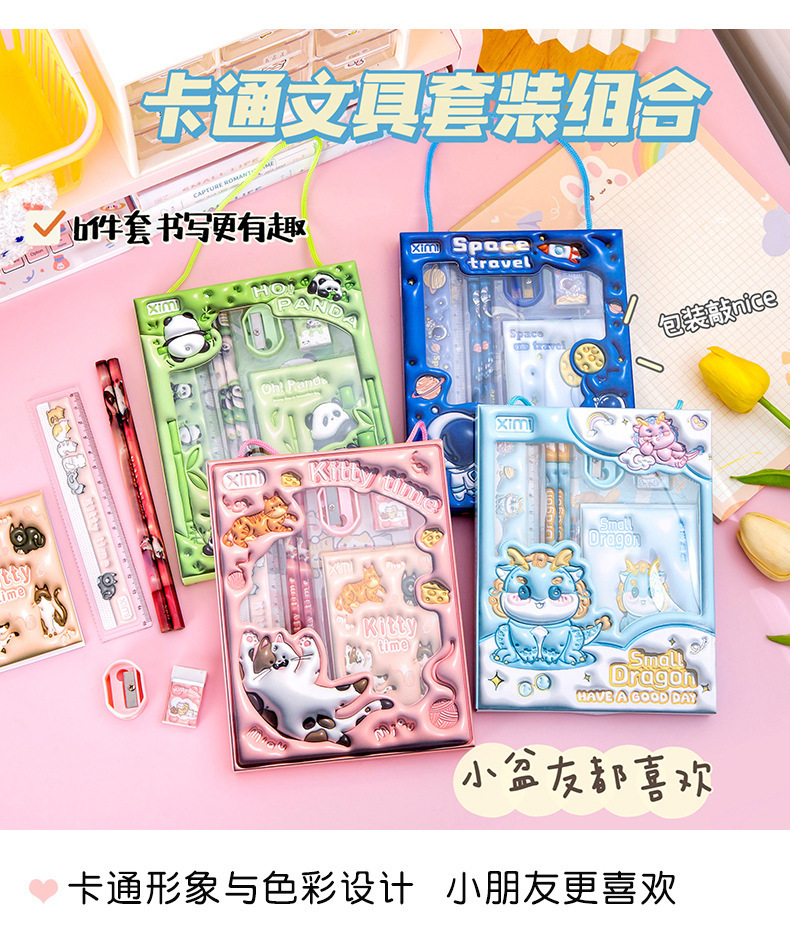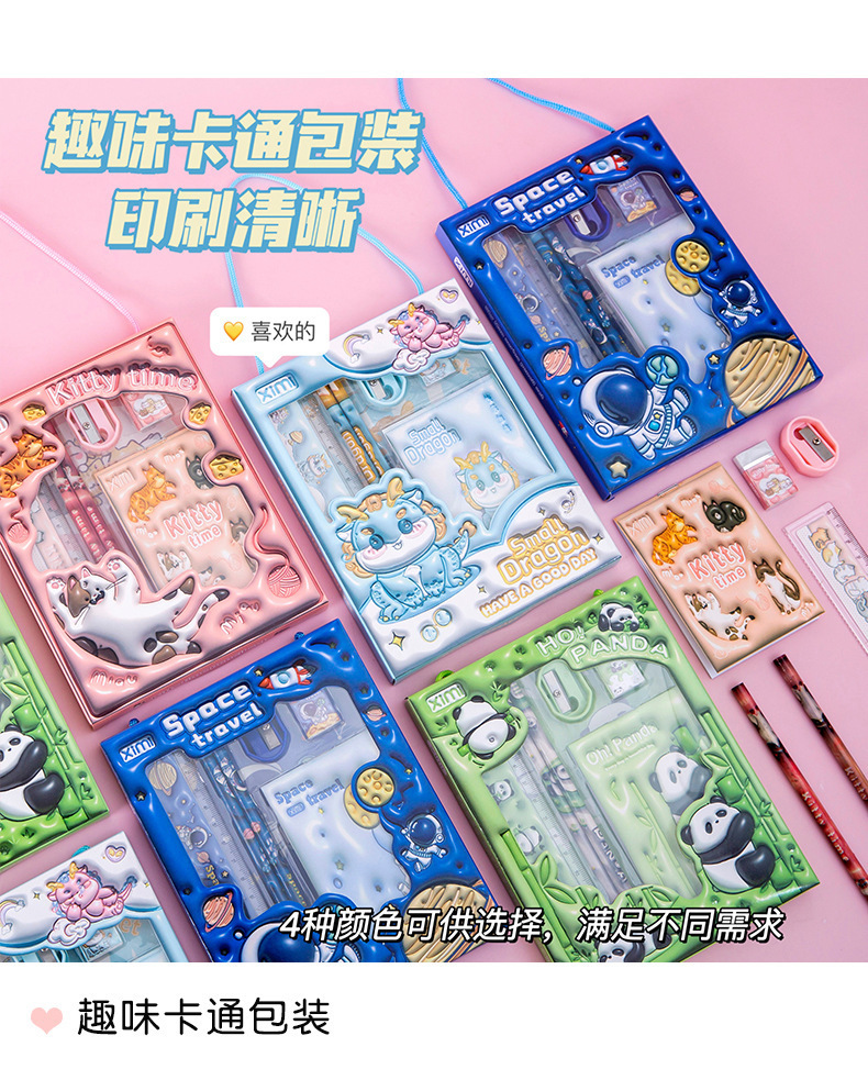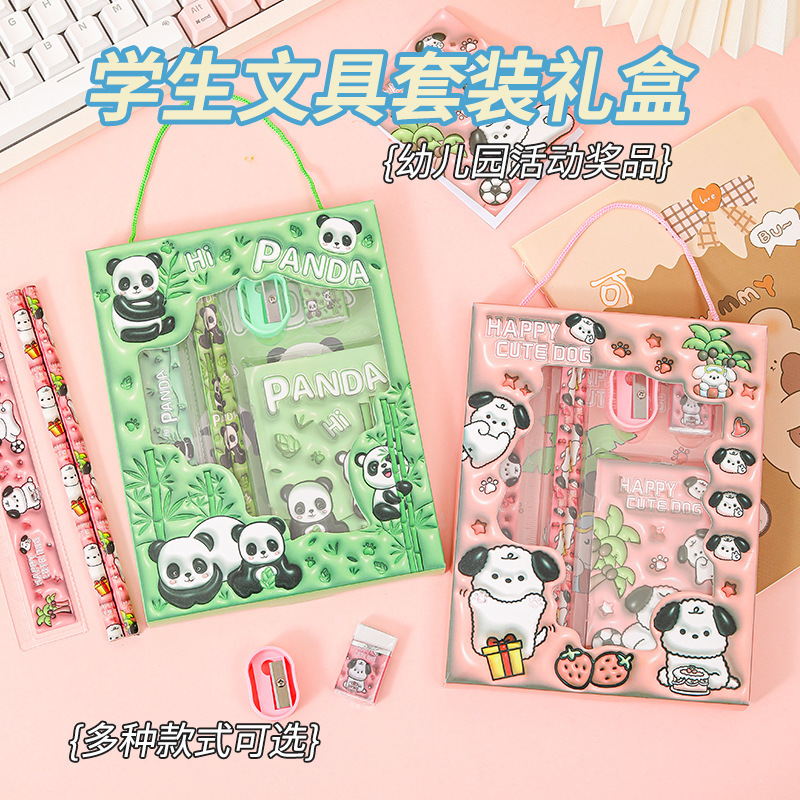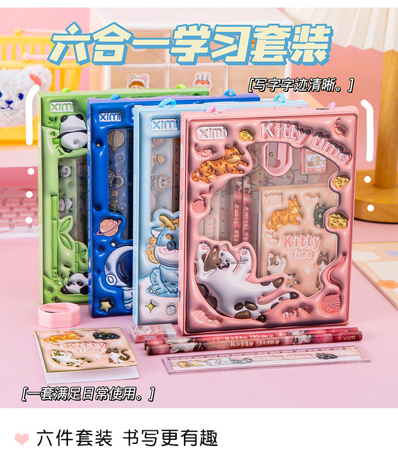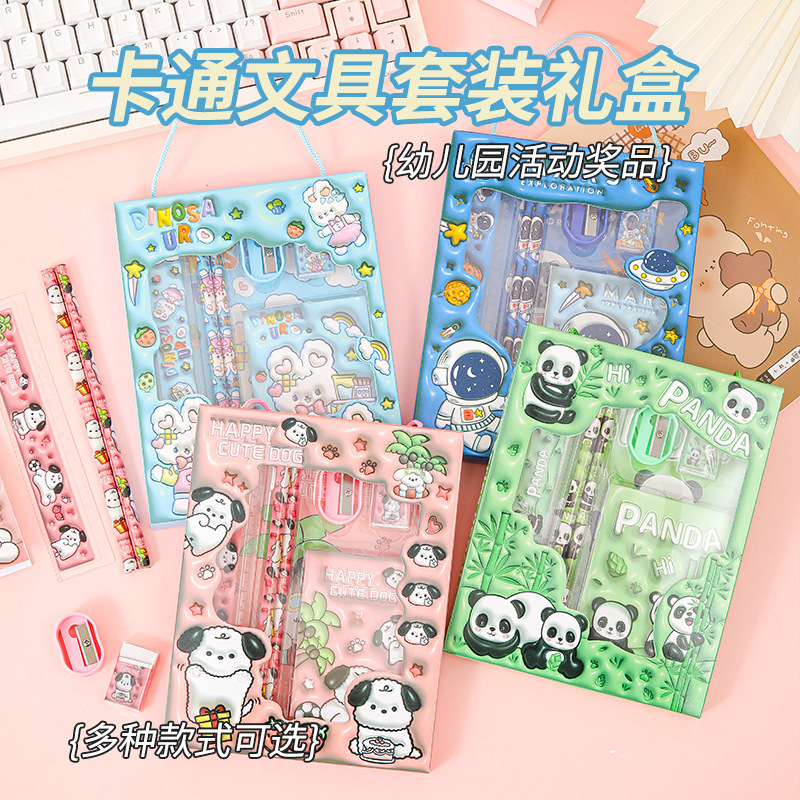 Новый набор канцелярии в подарочной коробке с мультяшным дизайном, набор канцелярии для детей начальной школы, подарок для поощрения, набор из шести предметов, оптом