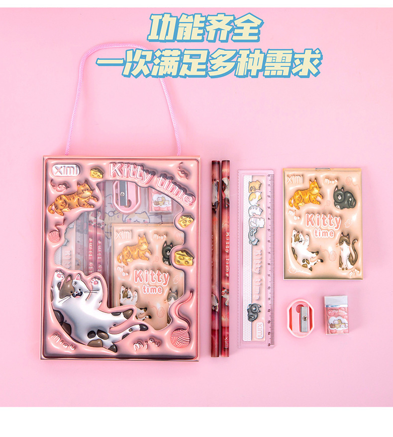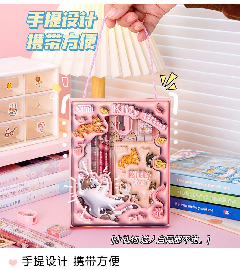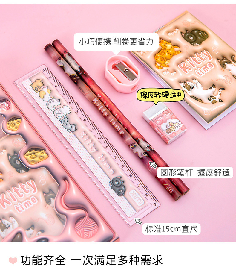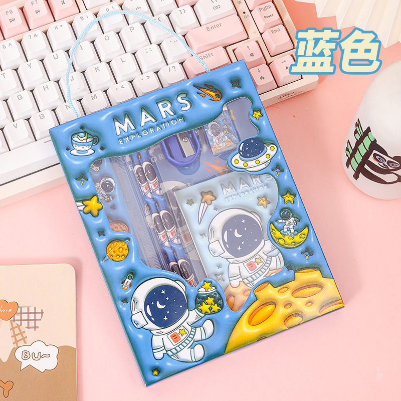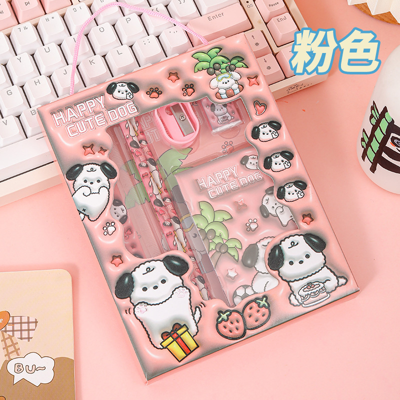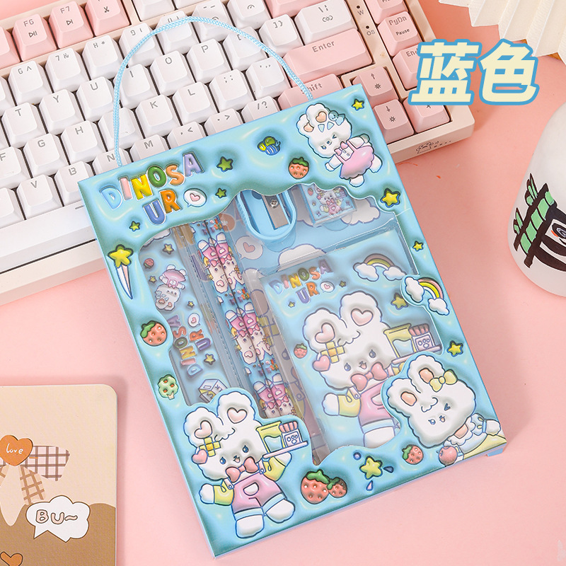 Новый набор канцелярии в подарочной коробке с мультяшным дизайном, набор канцелярии для детей начальной школы, подарок для поощрения, набор из шести предметов, оптом
