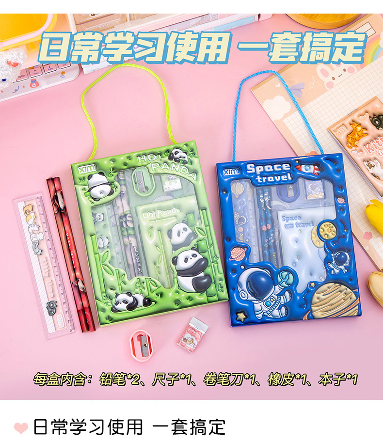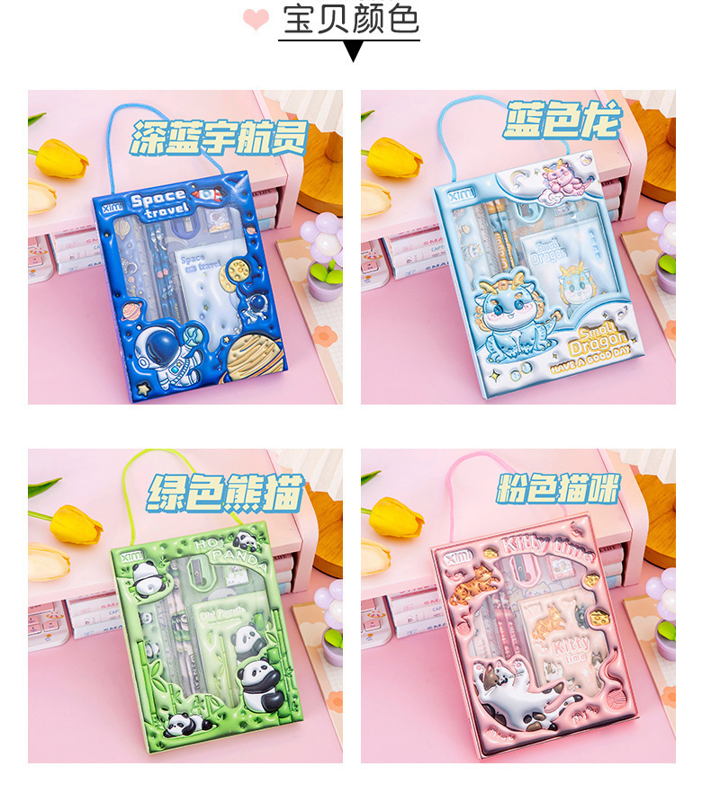 Новый трехмерный набор канцелярских товаров - Темно-синий космонавт; Новый объемный набор канцелярских товаров-голубой кролик; Новый объемный канцелярский набор-розовый щенок; Новый трехмерный набор канцелярских товаров «Зеленая панда»