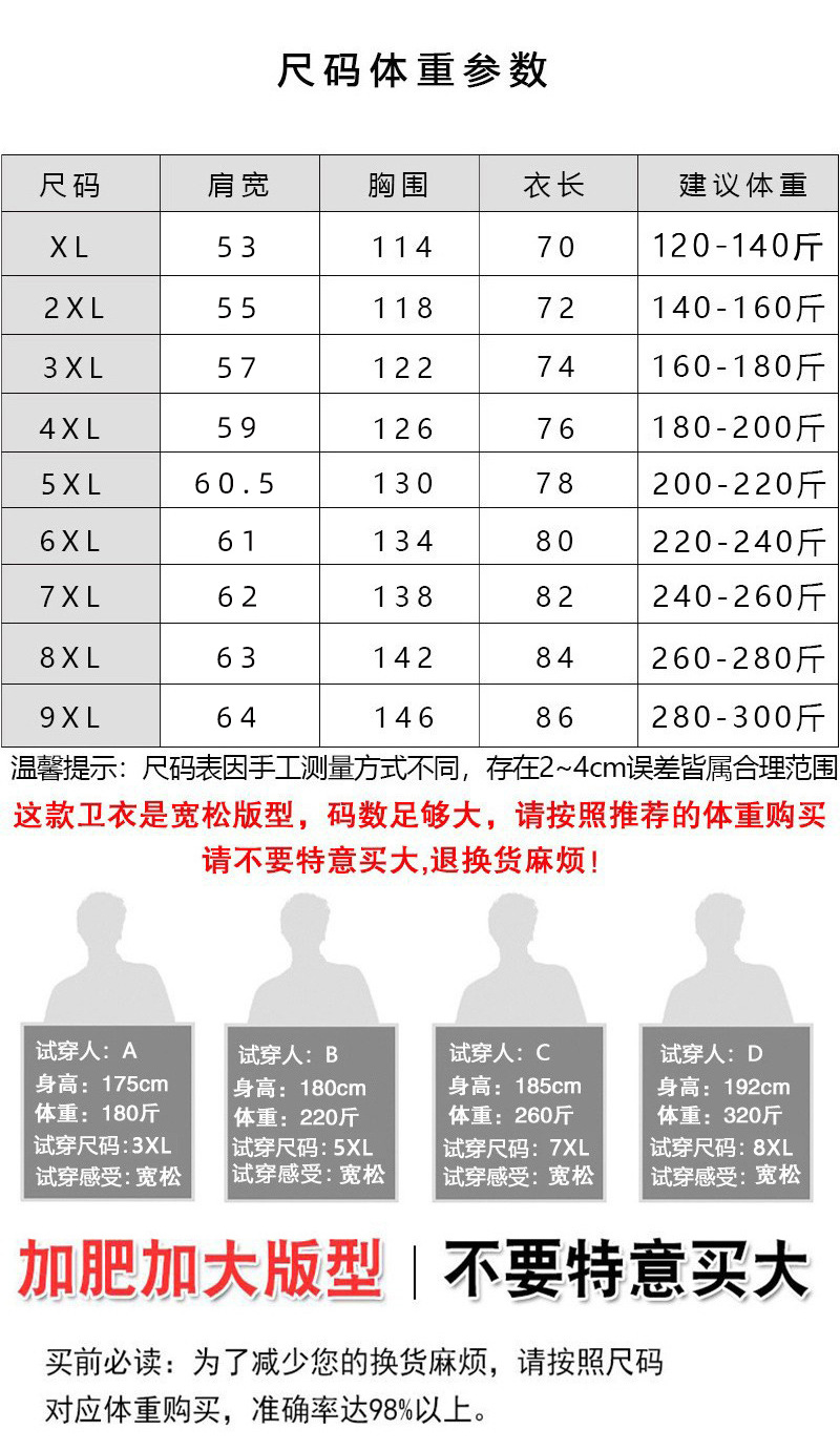 XL( 60-70kg ); 2XL( 70-80kg ); 3XL( 80-90kg ); 4XL( 90-100kg ); 5XL( 100-110kg ); 6XL( 110-120kg ); 7XL( 120-130kg ); 8XL( 130-140kg ); 9XL( 140-150kg )