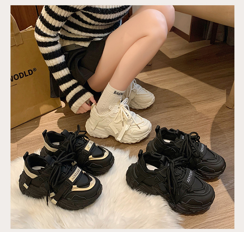 Кроссовки для женщин в корейском стиле, весна 2025, для студентов, спортивные, на толстой подошве, с эффектом увеличения роста, повседневные, FB9905-1.