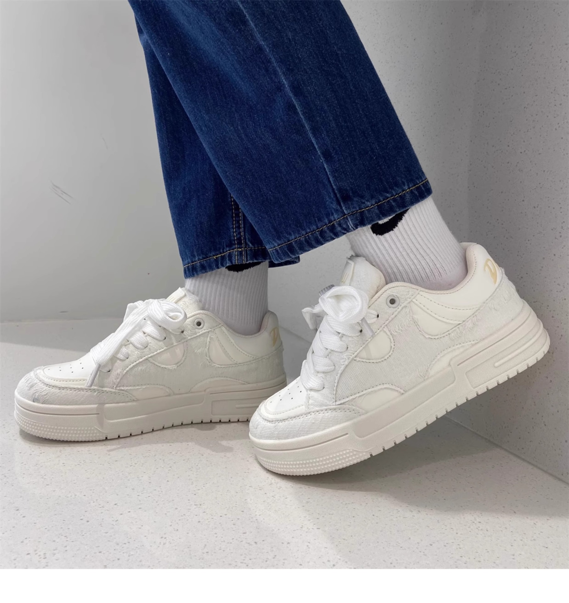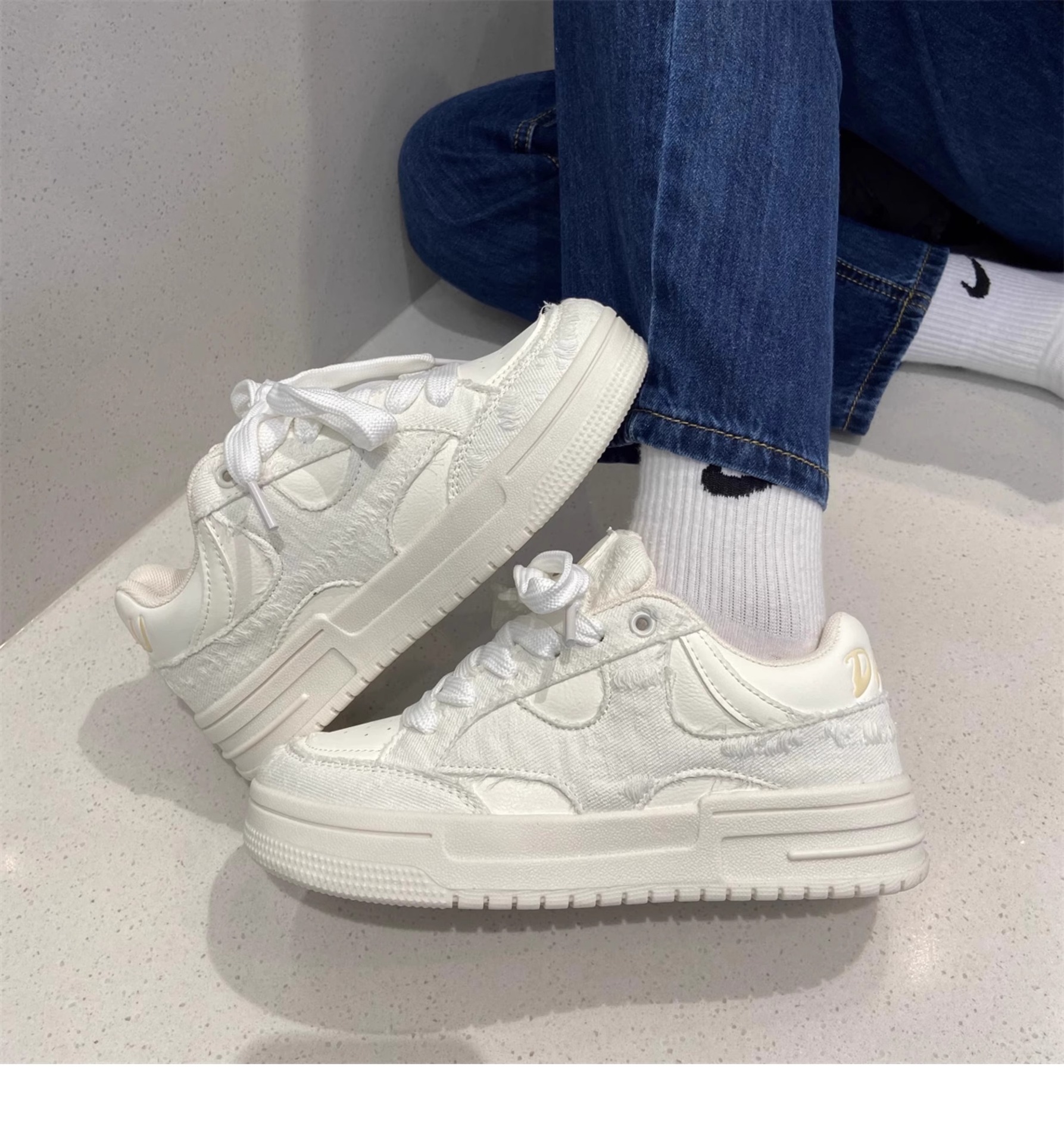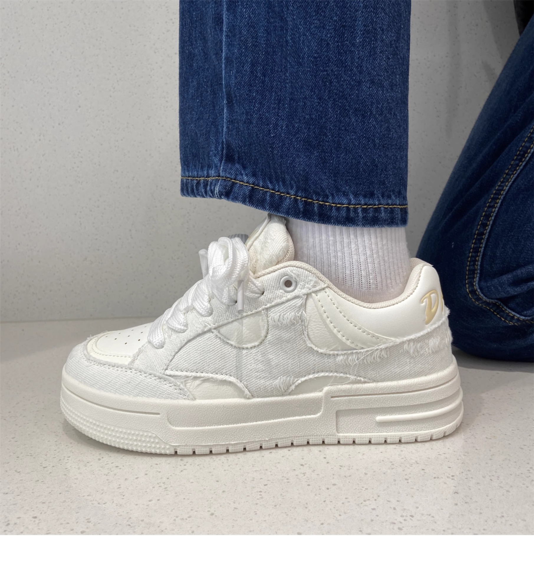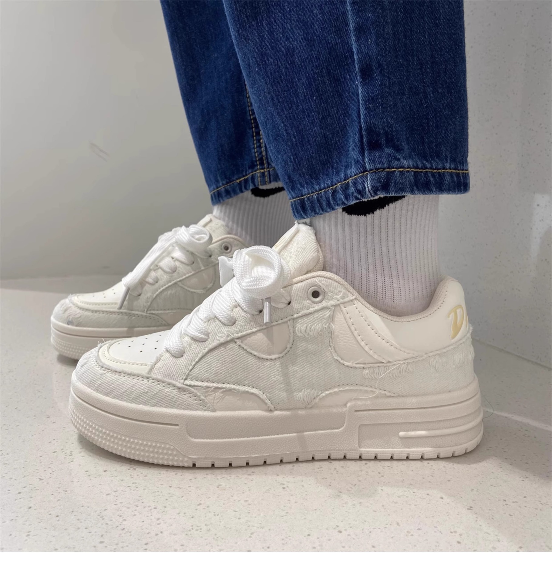 Нишевые скотч сломанный ветер ковбой толстый дно хлебная обувь женская тенденция дикие скейтборды увеличить студенческие маленькие белые туфли