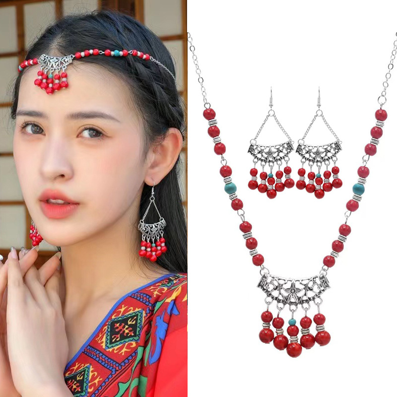красный костюм; синий костюм; костюм смешанного цвета; Красный головной убор (общий для головного убора и ожерелья); Синий головной убор (общий для головного убора и ожерелья); Головной убор смешанного цвета (универсальный для головных уборов и ожерелий); красные серьги; синие серьги; серьги разных цветов; красные бусины; синие бусины