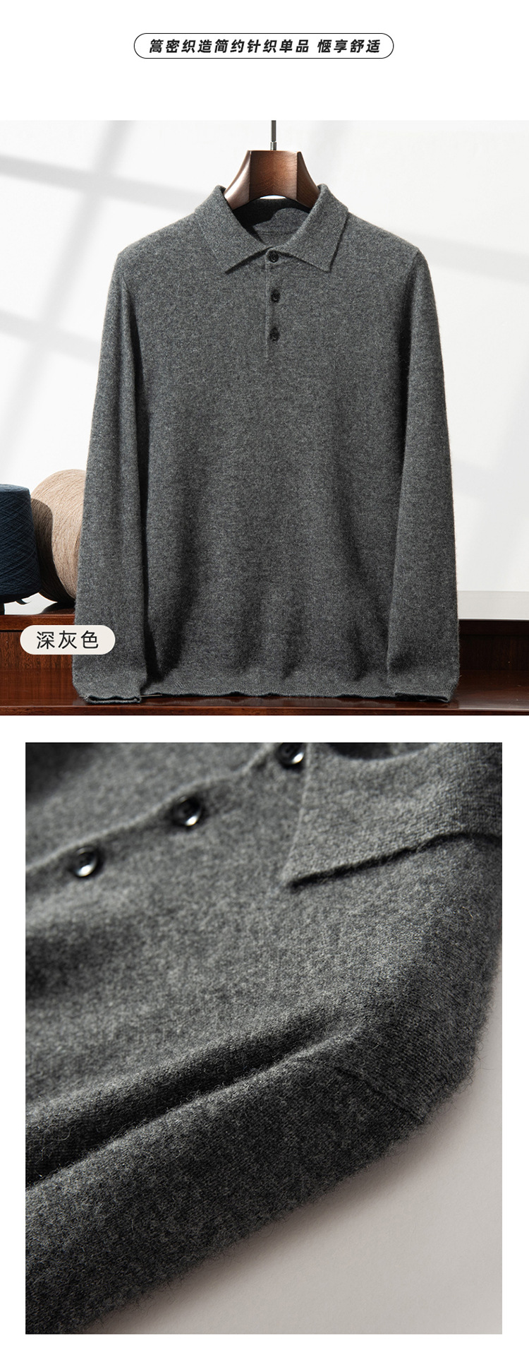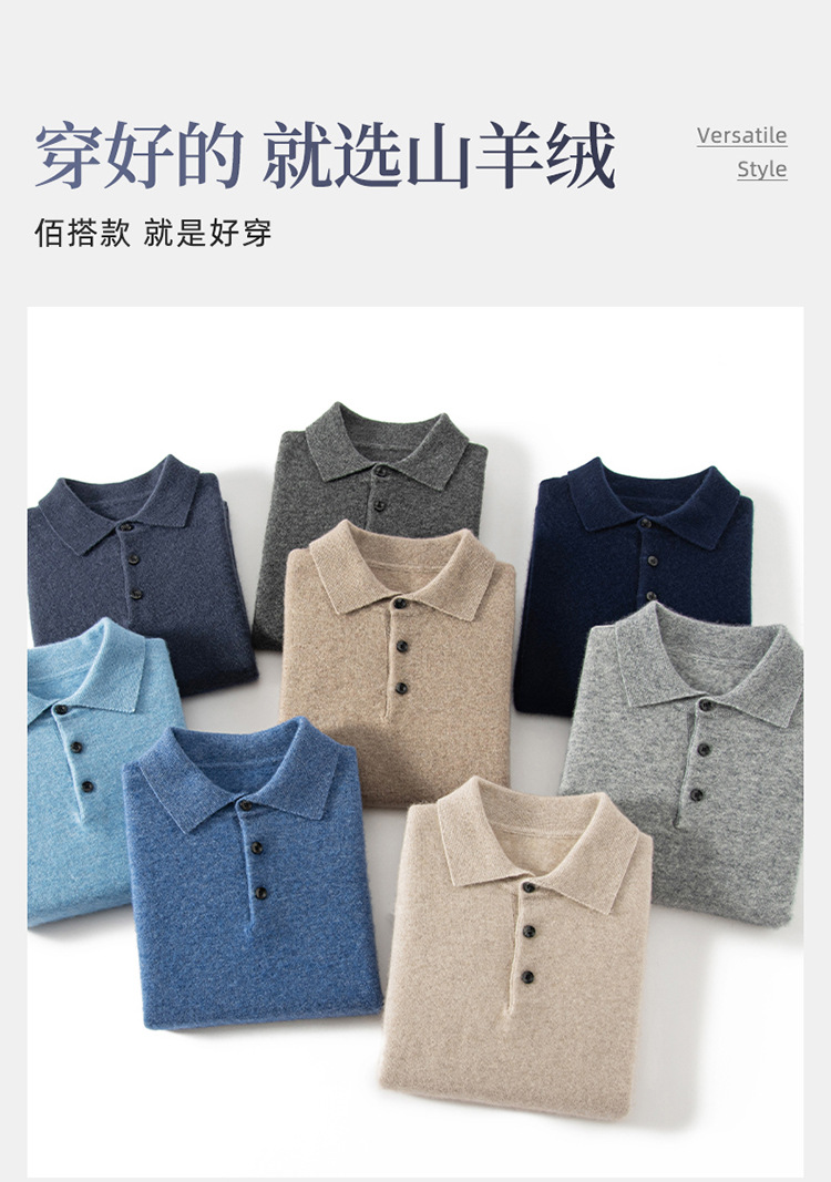 POLO ошейник кашемировый свитер 2024 осень-зима новый мужской плоский нижний свитер среднего возраста бизнес-рыхлый свитер
