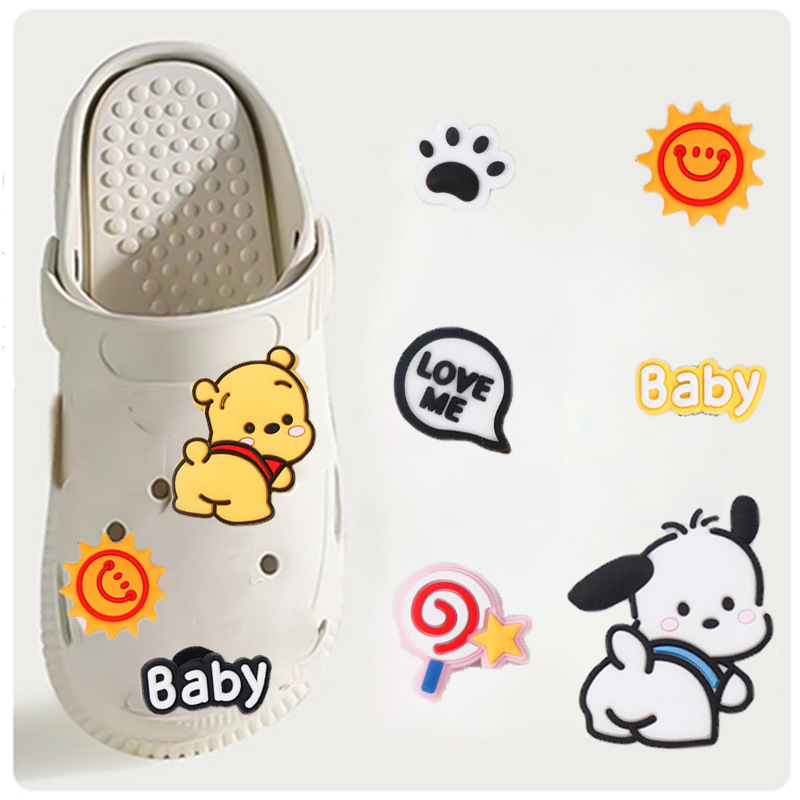 Симпатичные мультяшные туфли Винни Медведь Украшения Обувь Обувь Обувь Цветок DIY Обувь Обувь Аксессуары ПВХ Мягкий клей