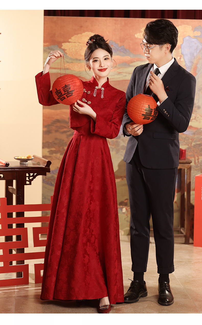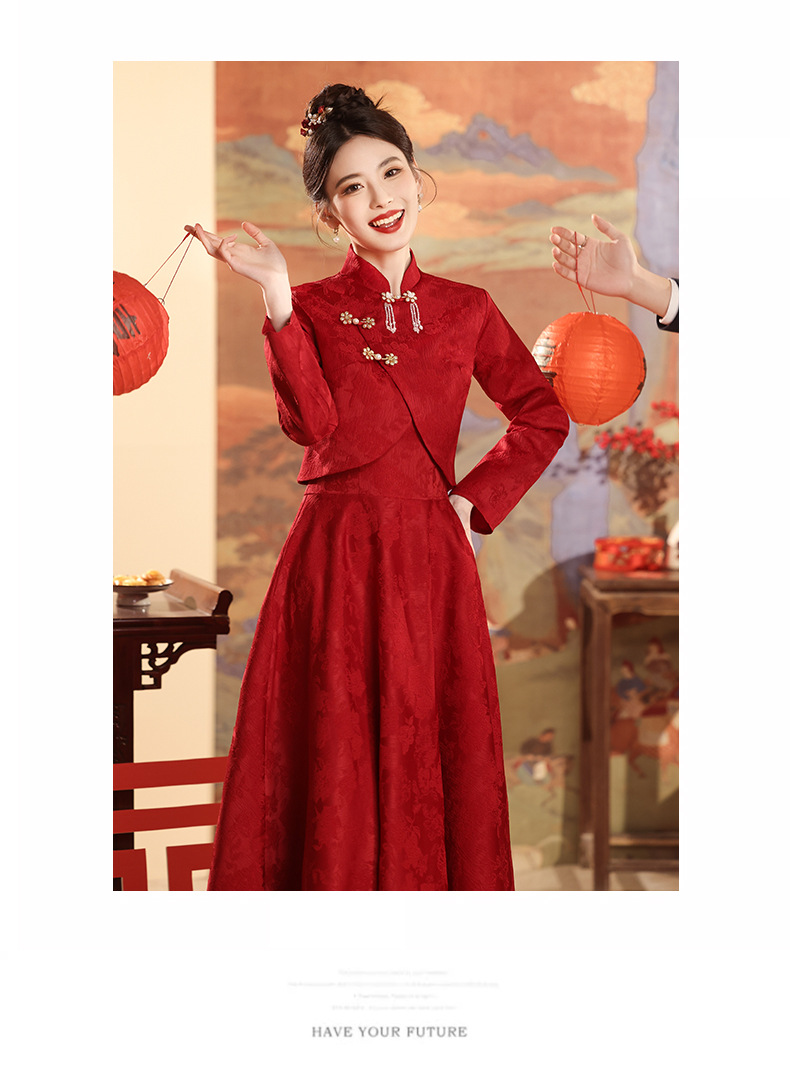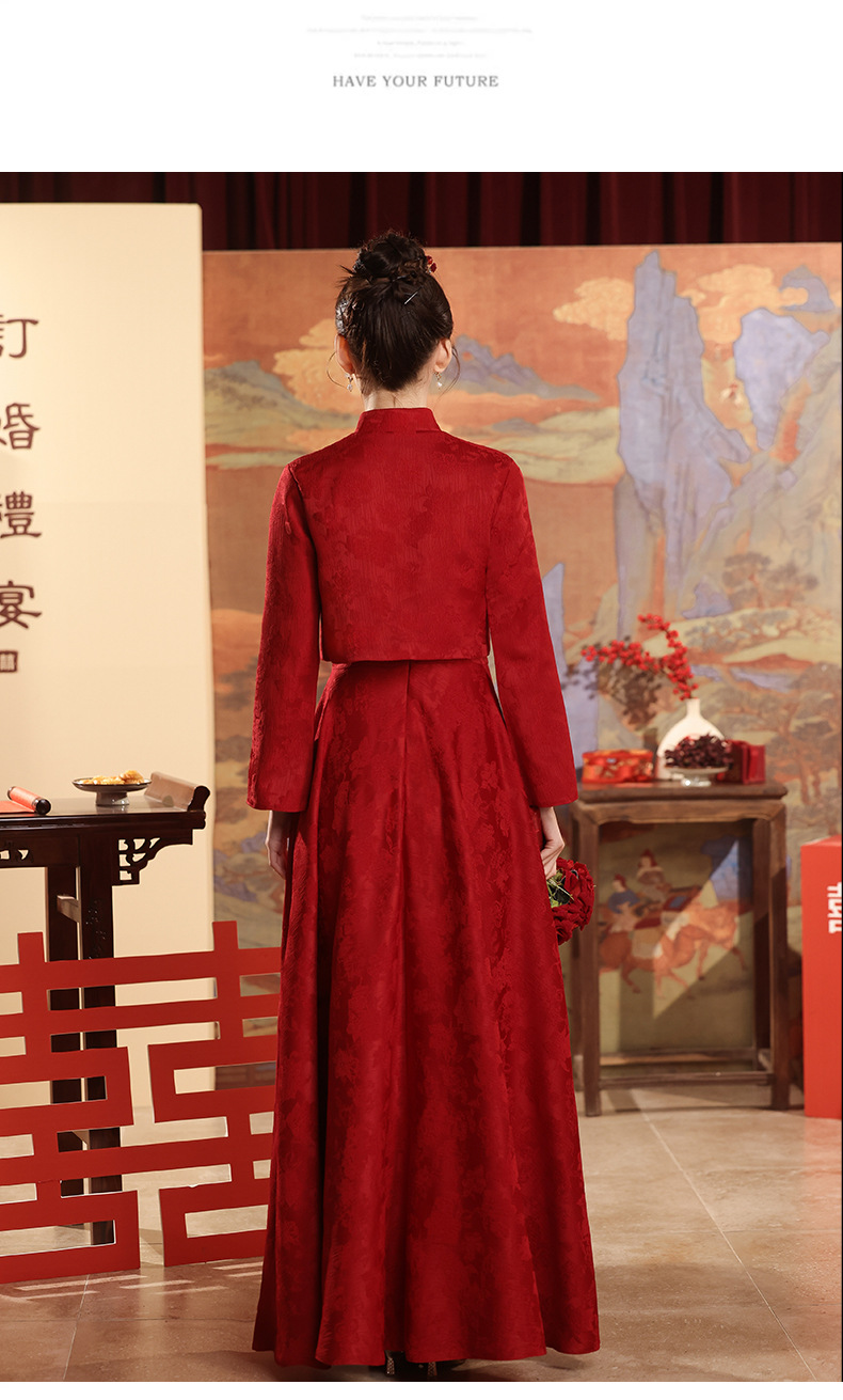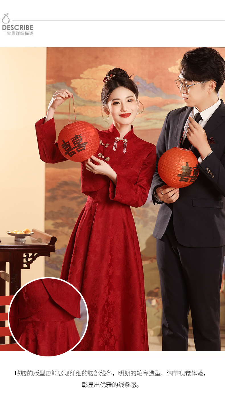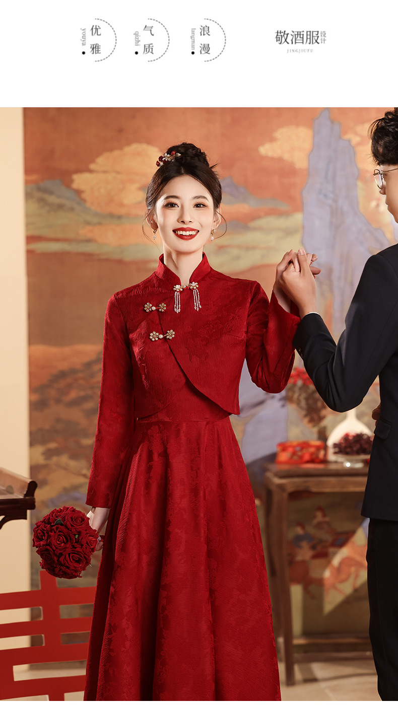 Новое платье-тост в стиле шинуазри, Cheongsam, новинка 2025, красный обручальный костюм из павильона, платье с длинными рукавами, платье