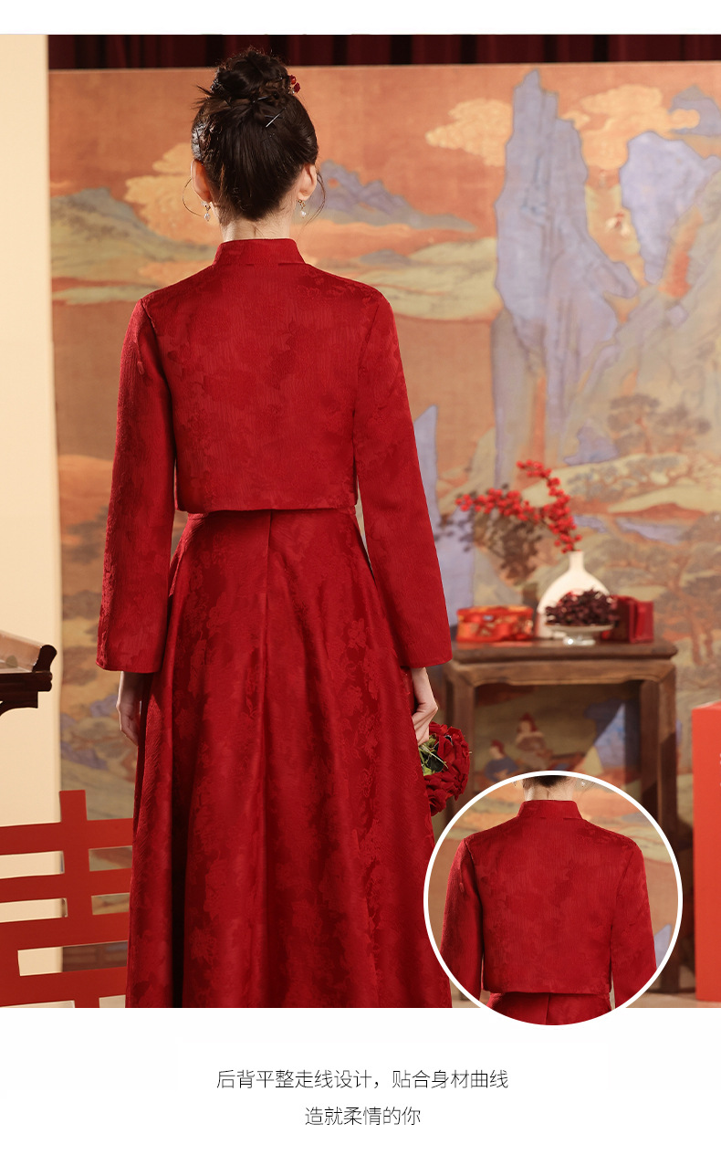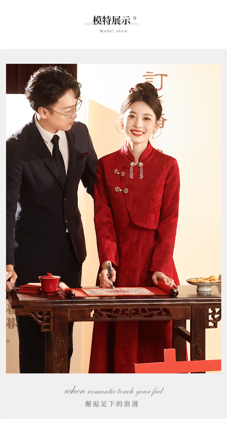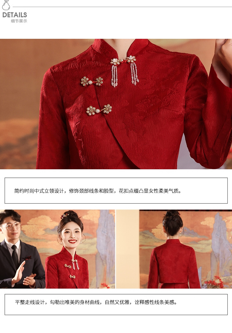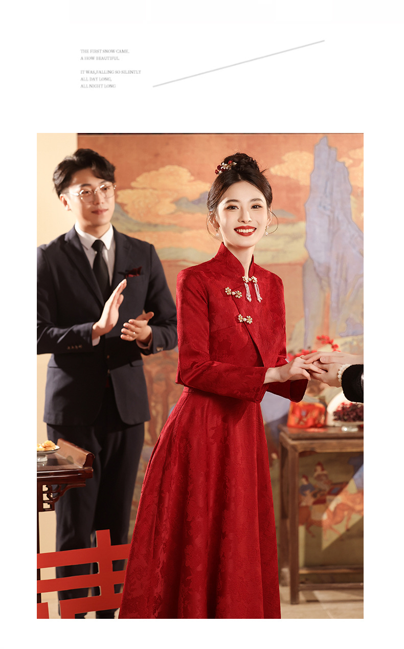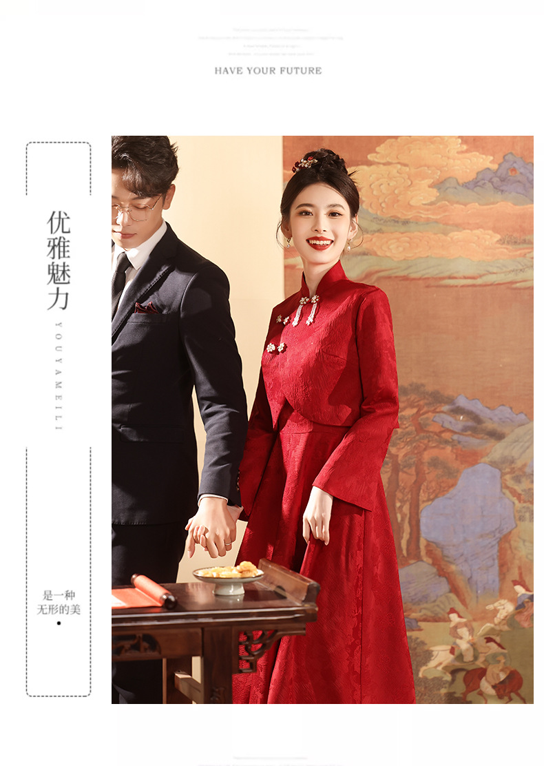 Новое платье-тост в стиле шинуазри, Cheongsam, новинка 2025, красный обручальный костюм из павильона, платье с длинными рукавами, платье