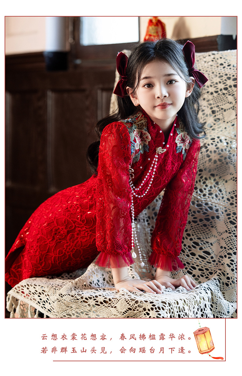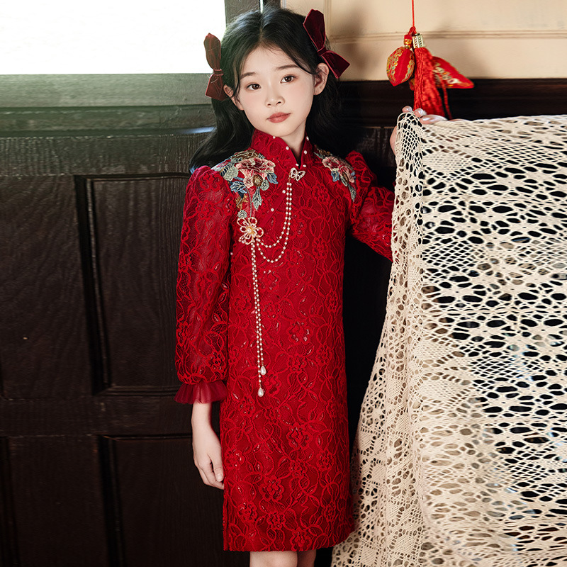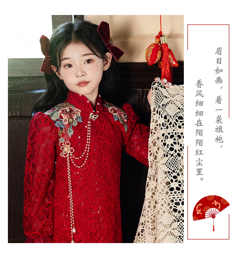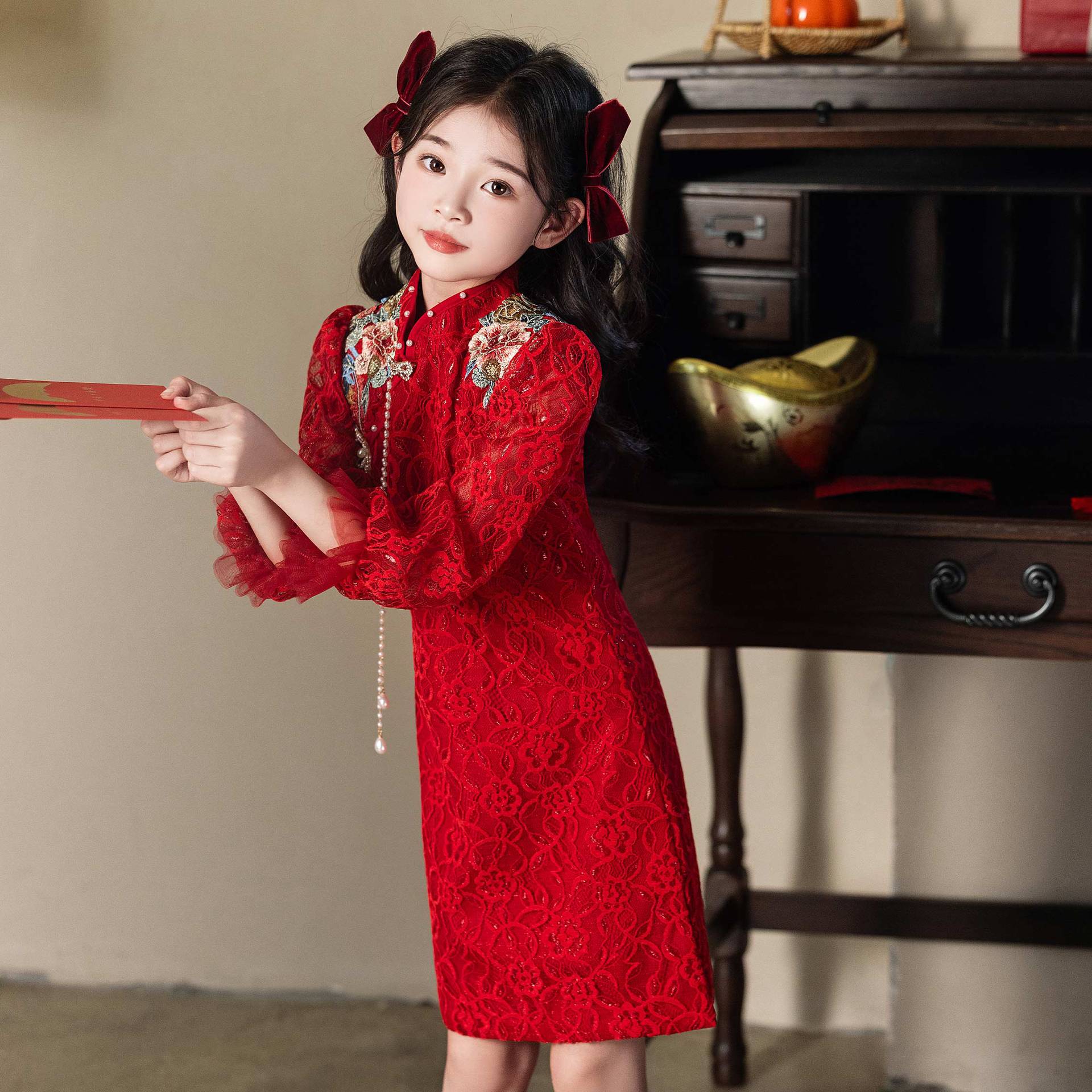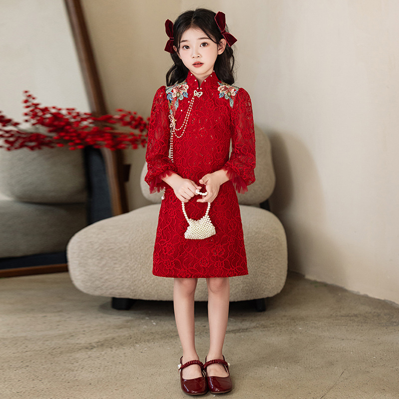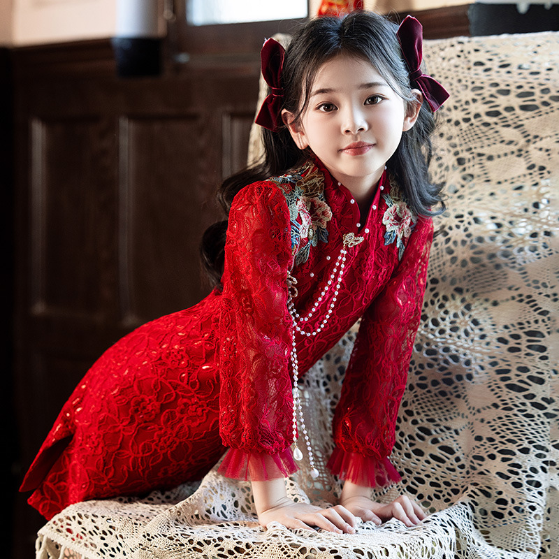 Детское красное платье-ципао для девочек, новинка 2025 года, в китайском стиле, для девочек-цветочниц, платье в китайском стиле для маленьких девочек