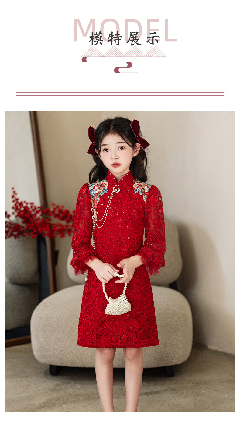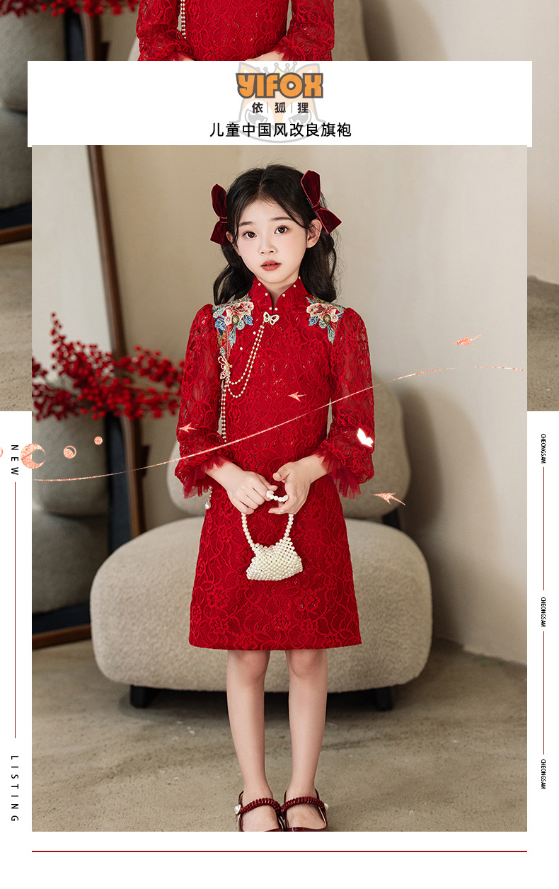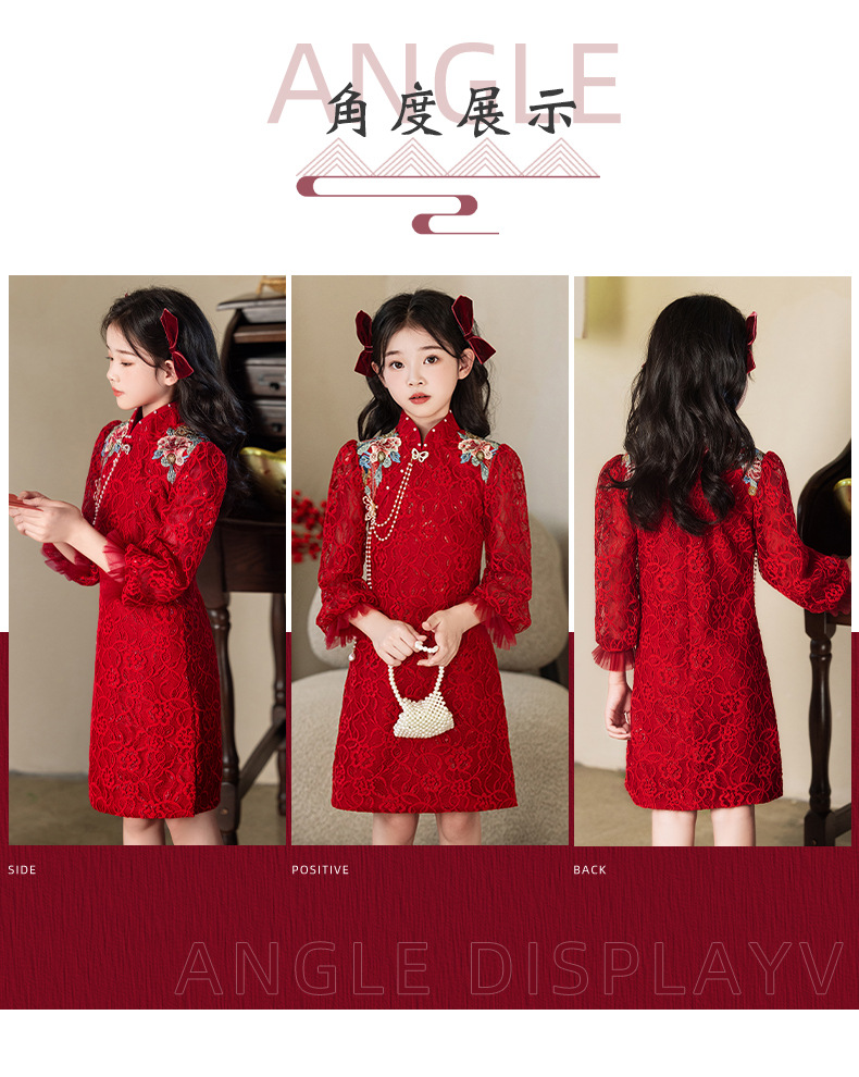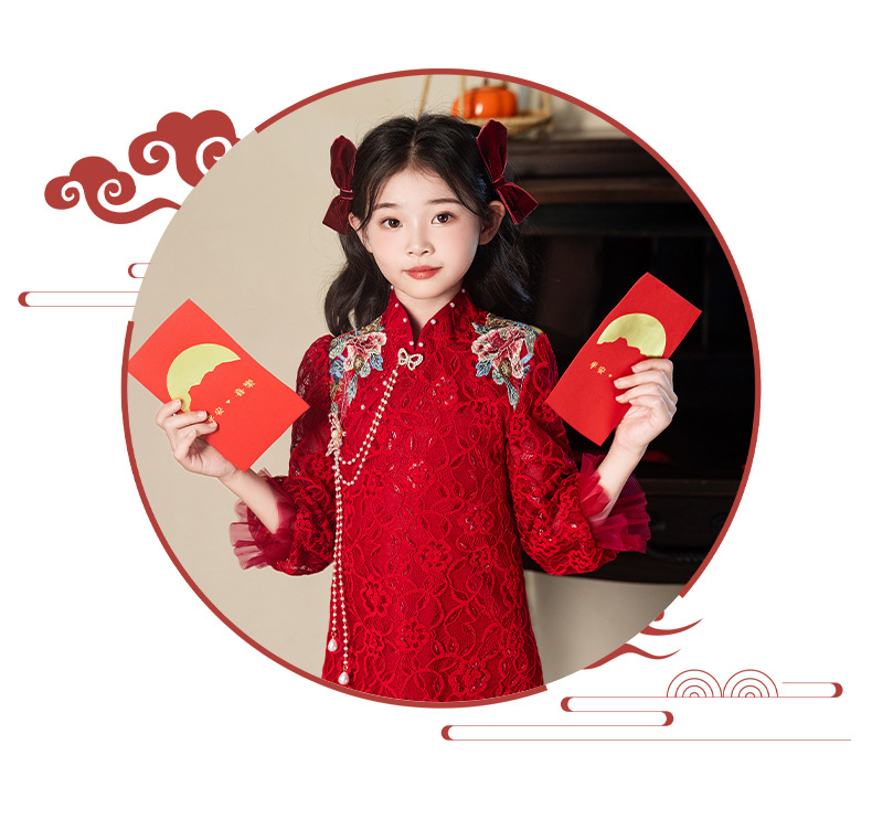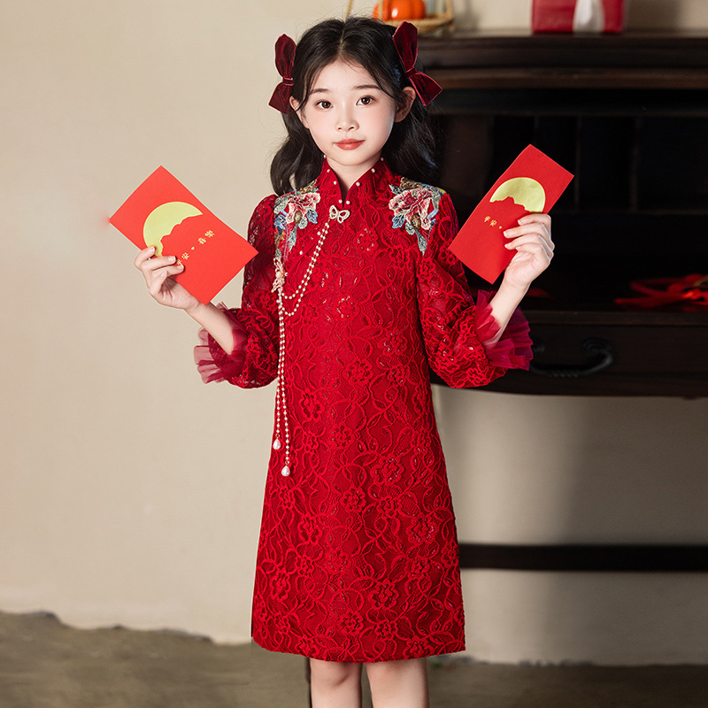Детское красное платье-ципао для девочек, новинка 2025 года, в китайском стиле, для девочек-цветочниц, платье в китайском стиле для маленьких девочек