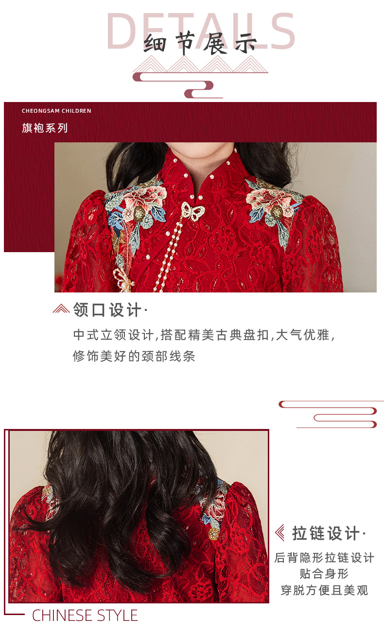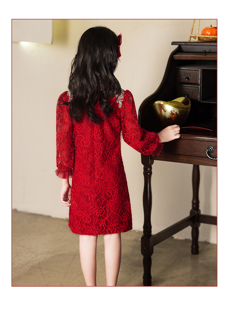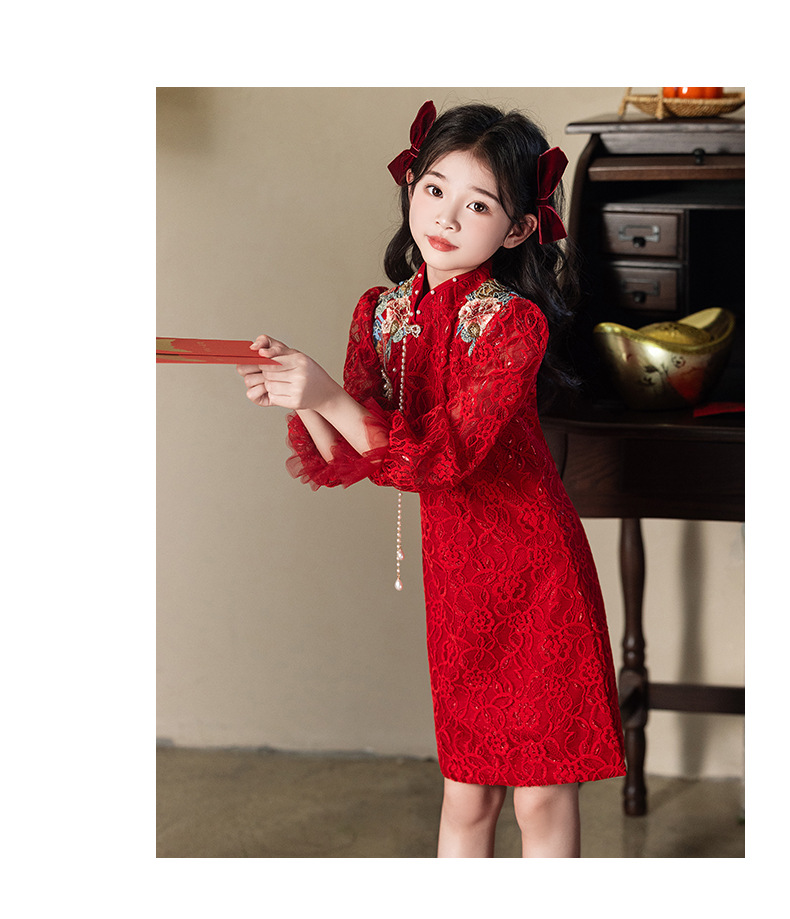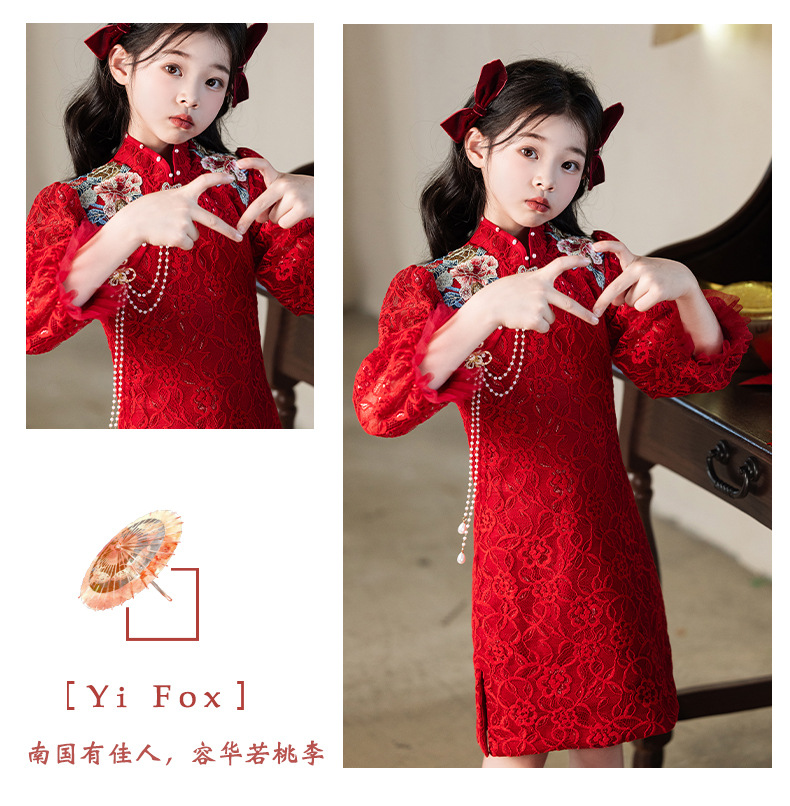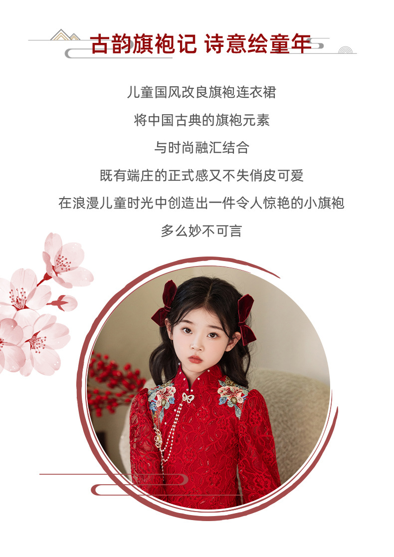 Детское красное платье-ципао для девочек, новинка 2025 года, в китайском стиле, для девочек-цветочниц, платье в китайском стиле для маленьких девочек