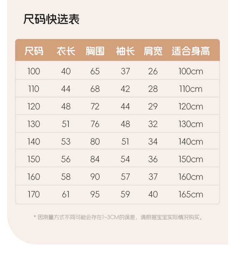 100cm; 110cm; 120cm; 130cm; 140cm; 150cm; 160cm; 170cm