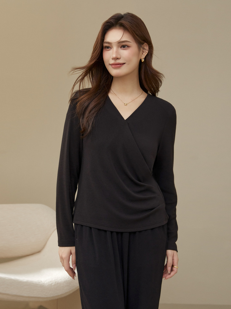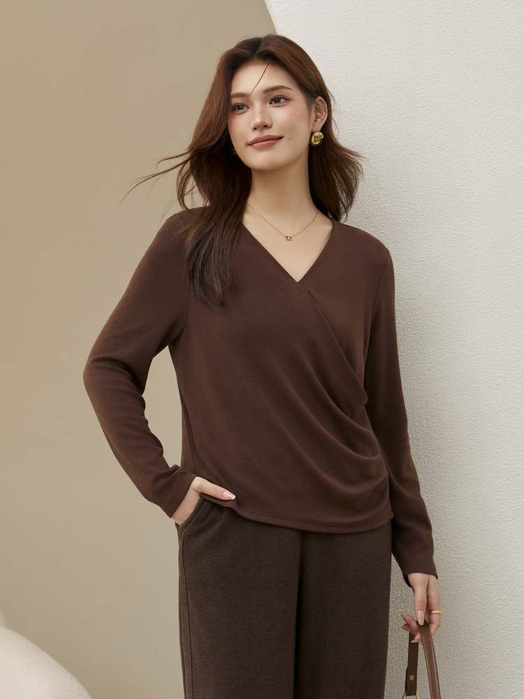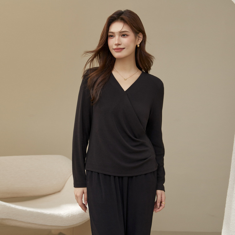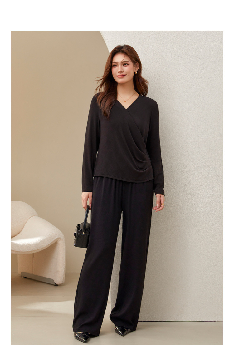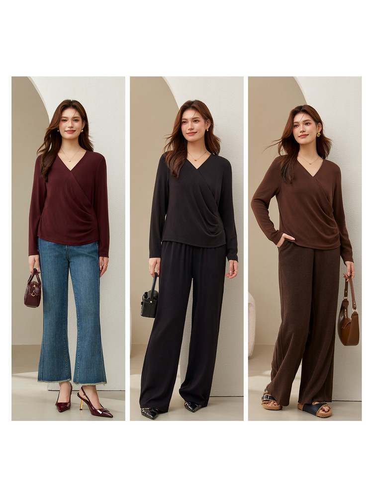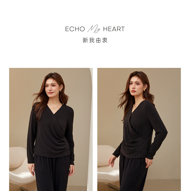Слепое шоу большой размер женской одежды элегантный легкий ветер шикарная мода дикая футболка с V-образным вырезом жирный mm2024 зимний новый стиль