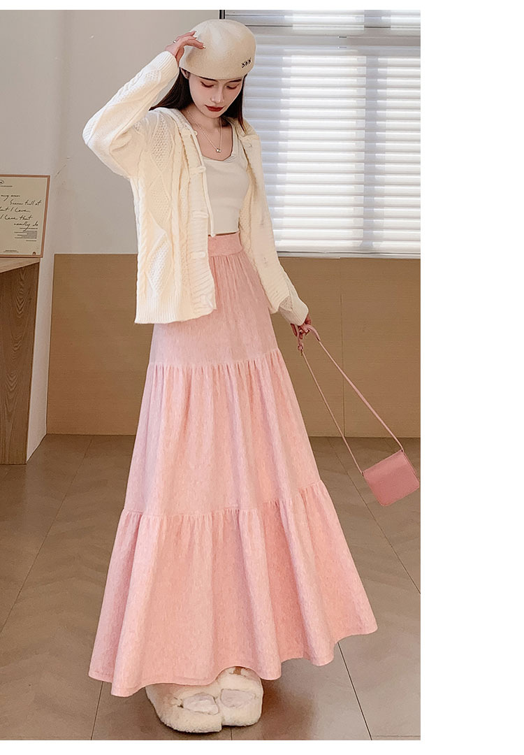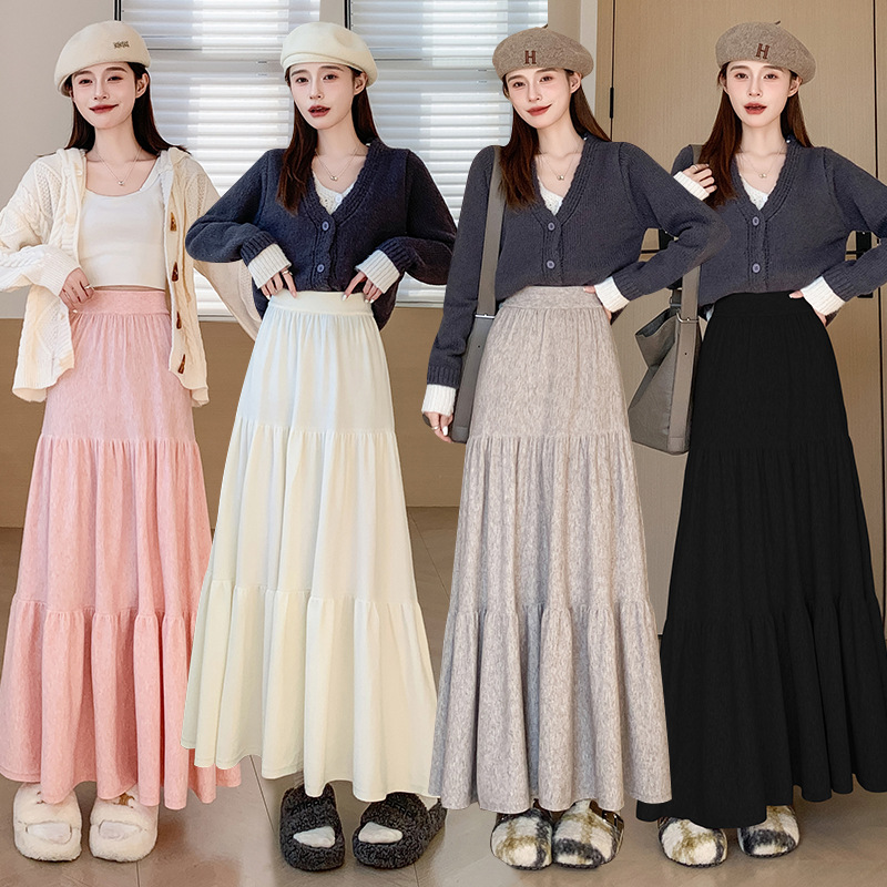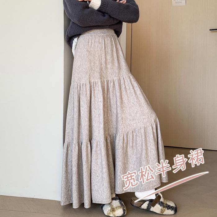 Трансграничная 2024 трикотажная юбка юбка женская осенняя и зимняя шерсть с высокой талией