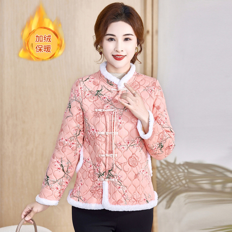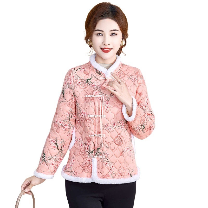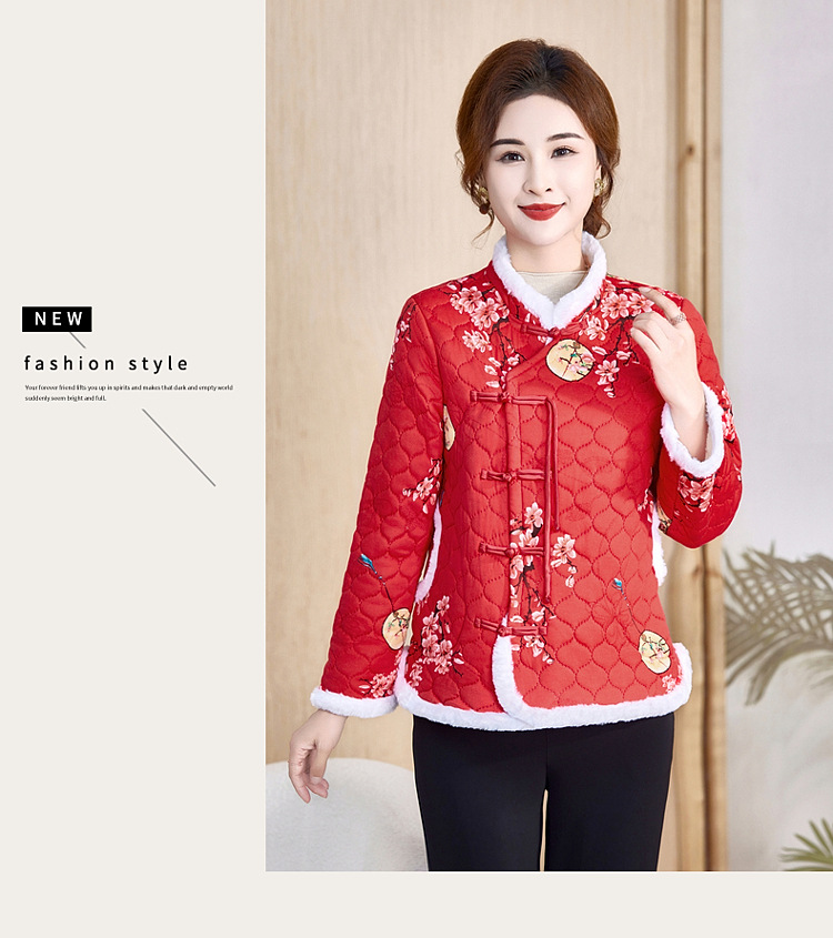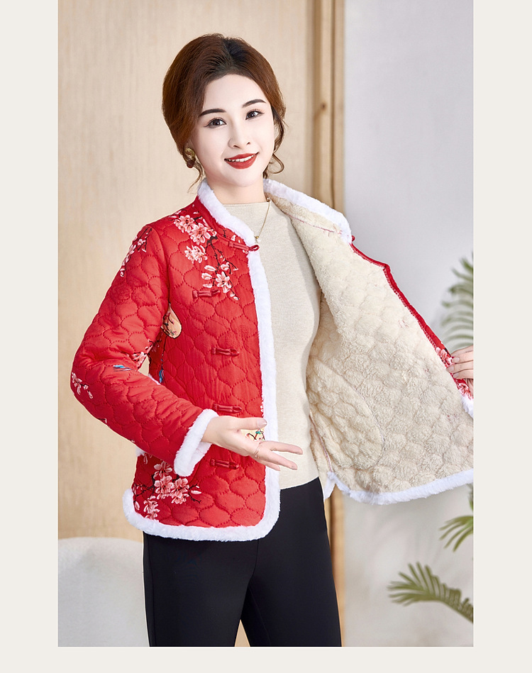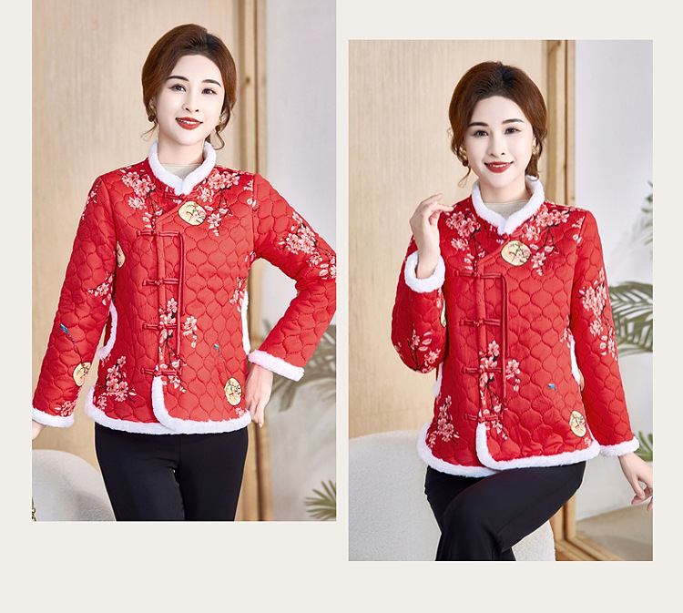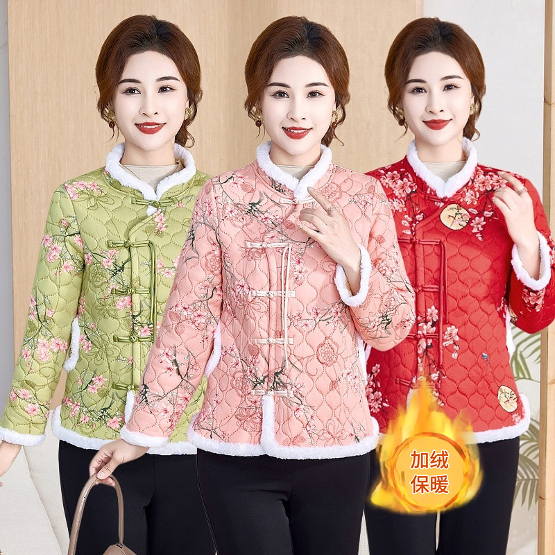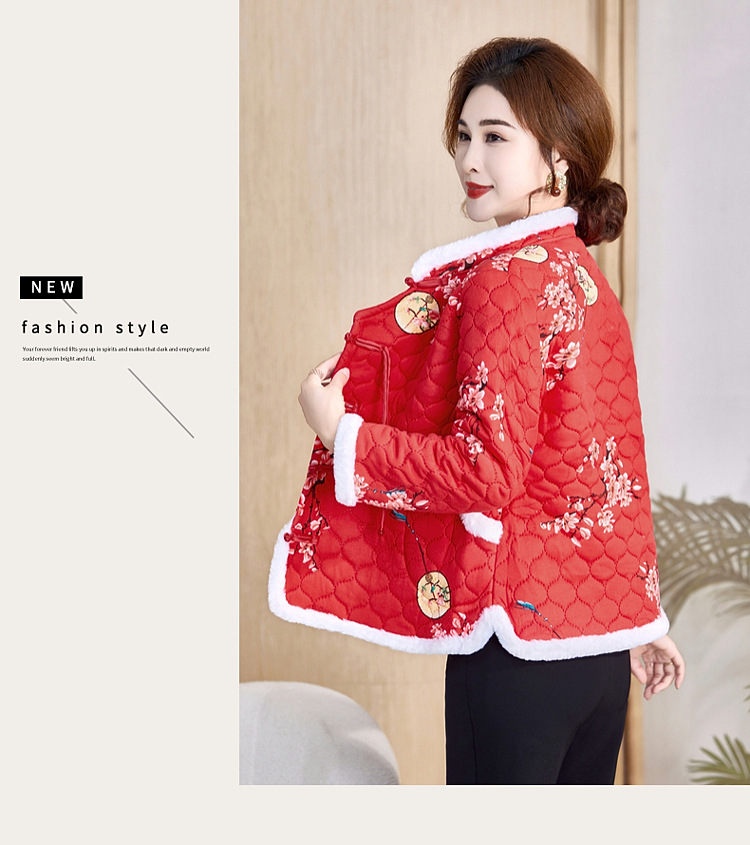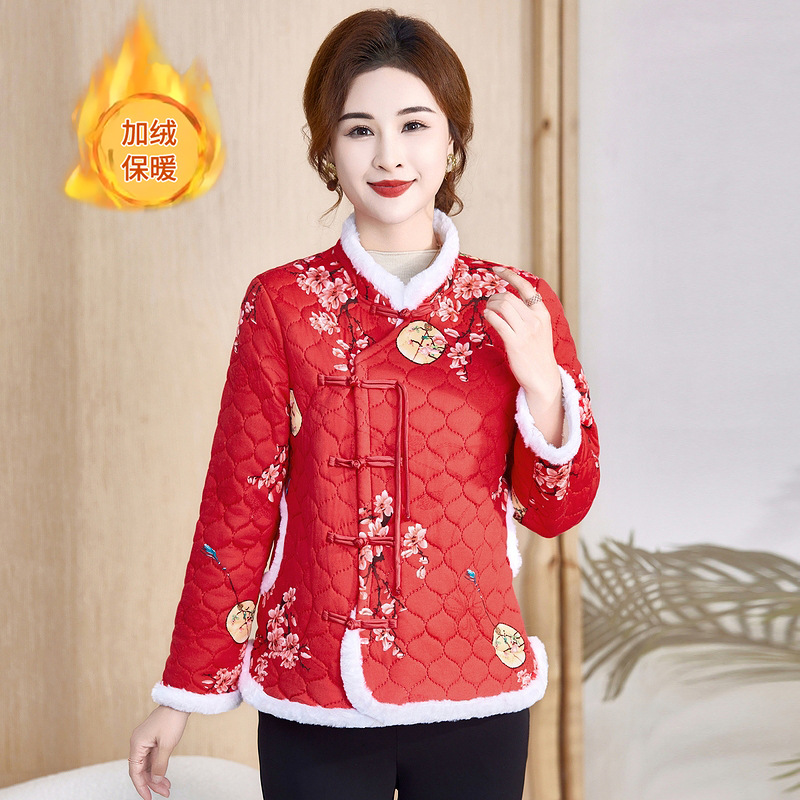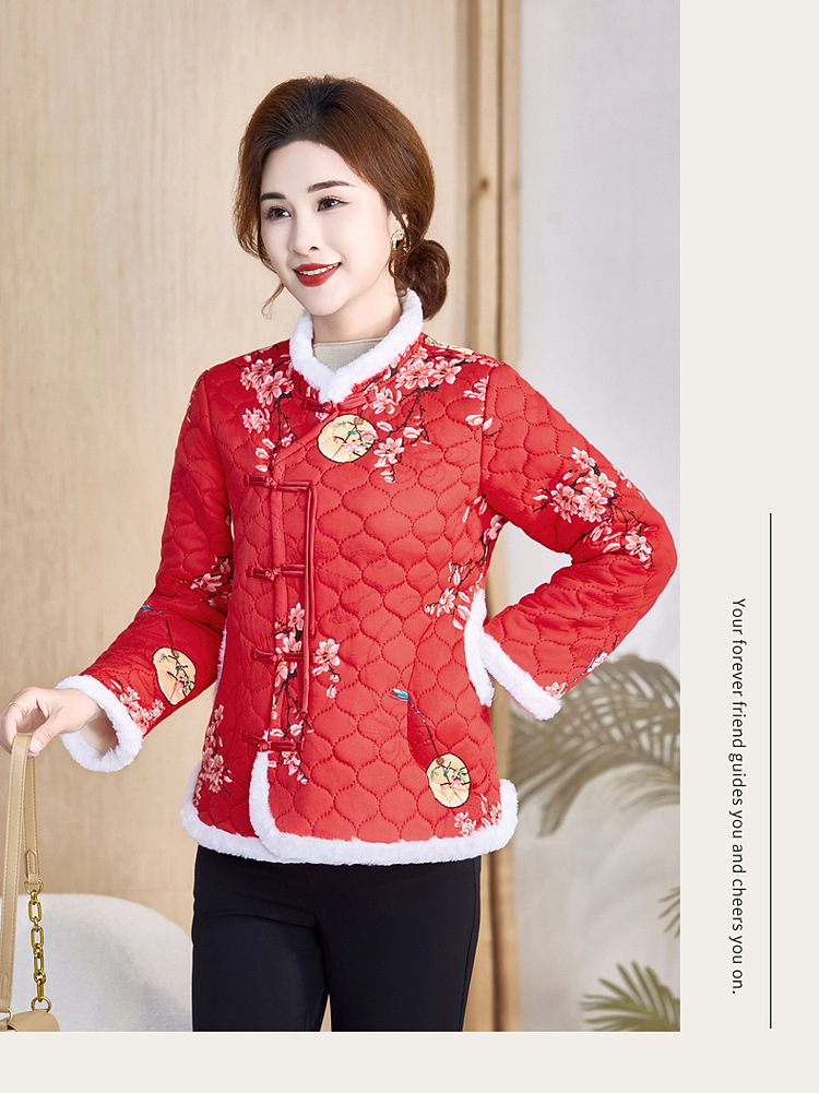 Новая хлопковая куртка ватная куртка утолщение сетка красная ретро хлопчатобумажная куртка плюс бархат китайская теплая мама зимняя женская топ