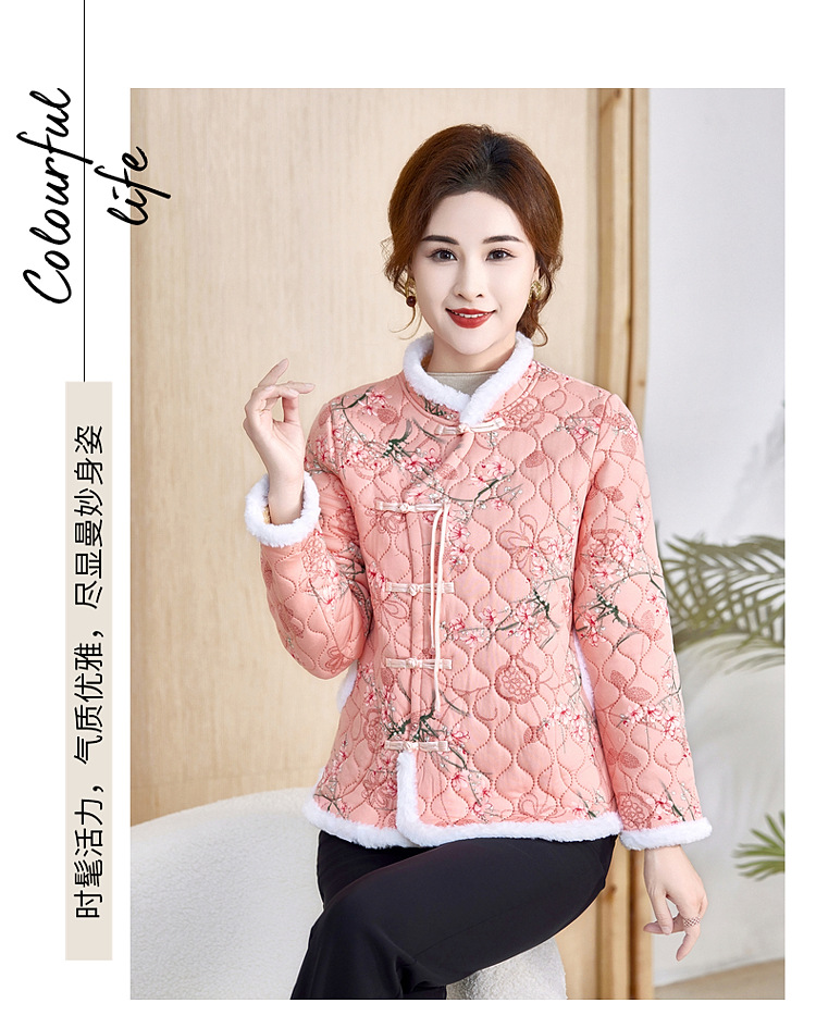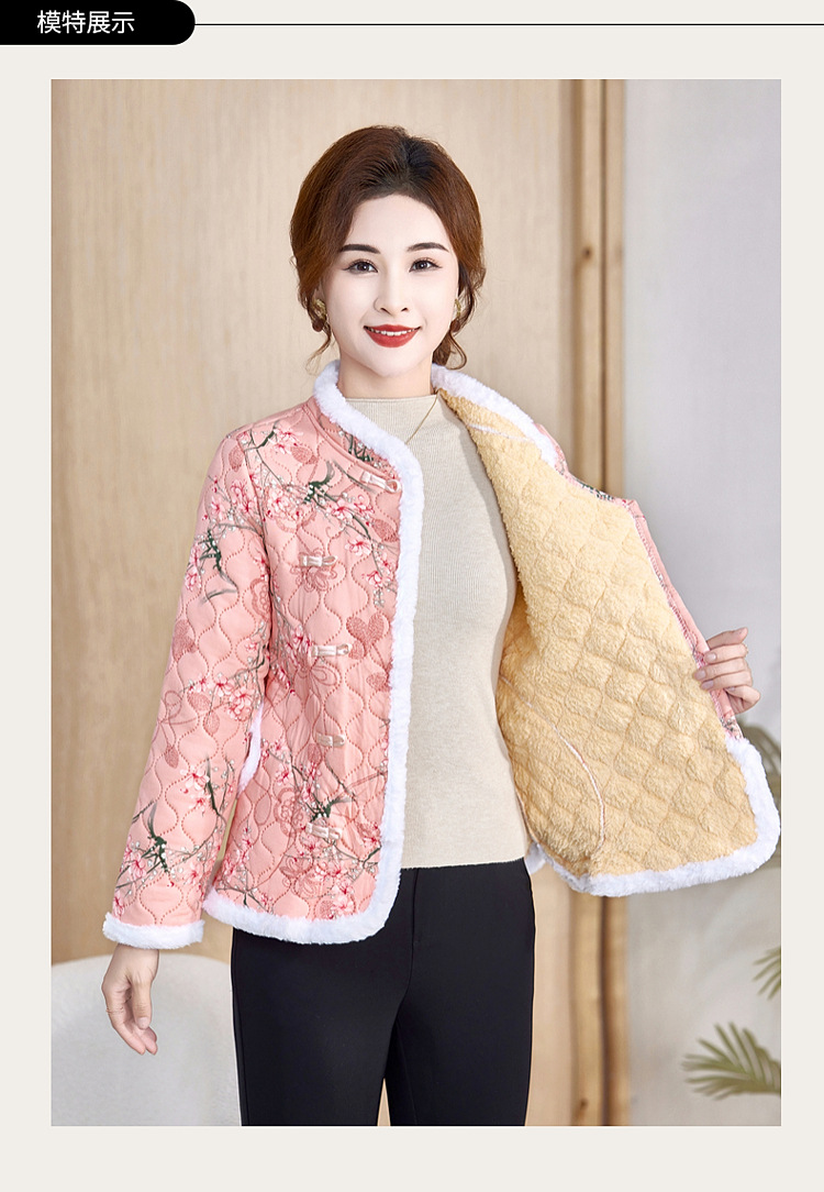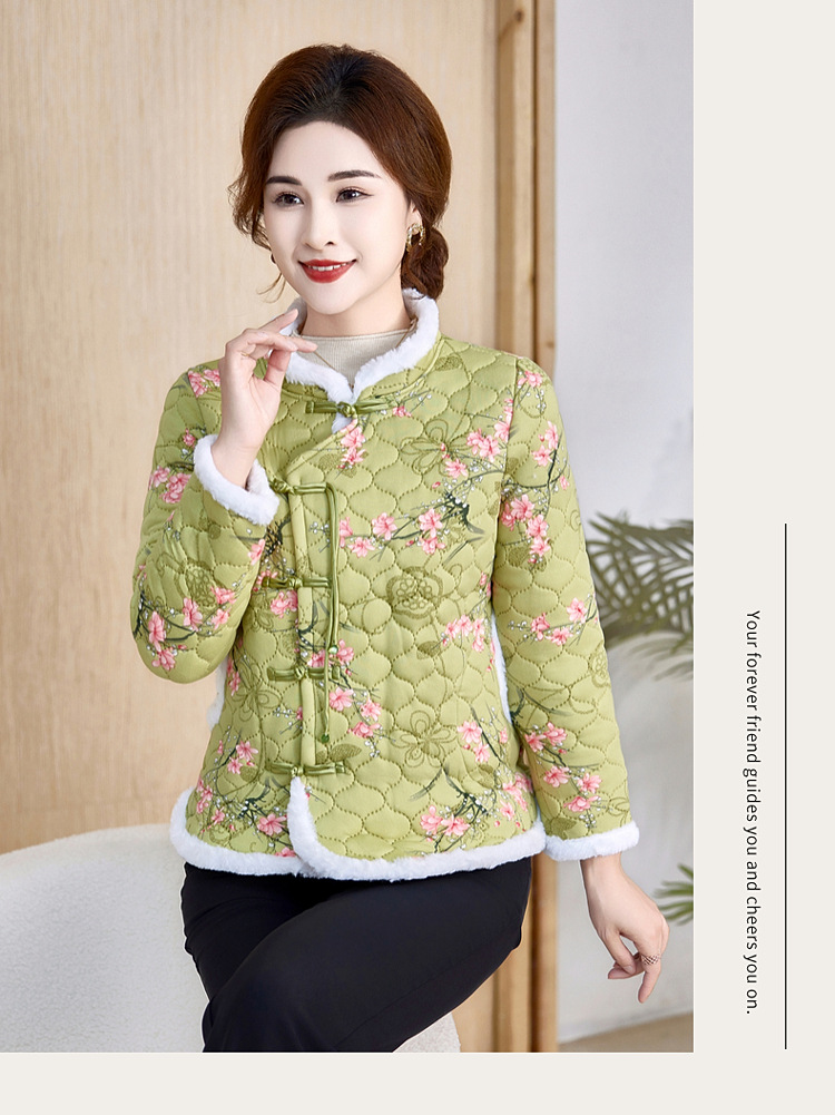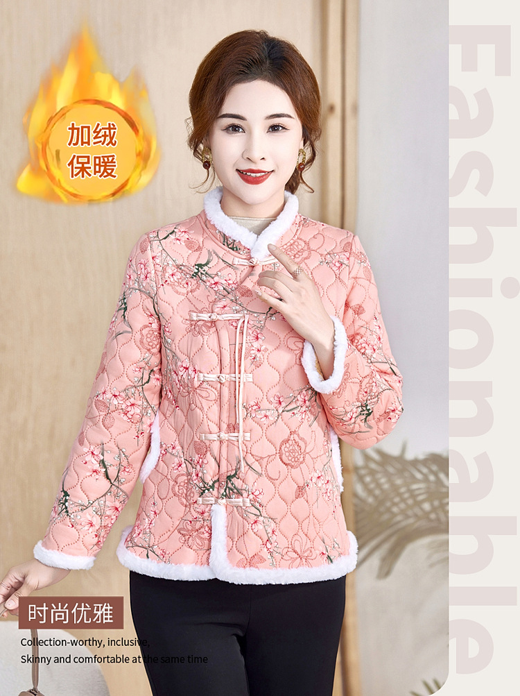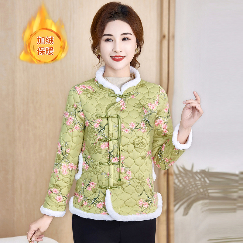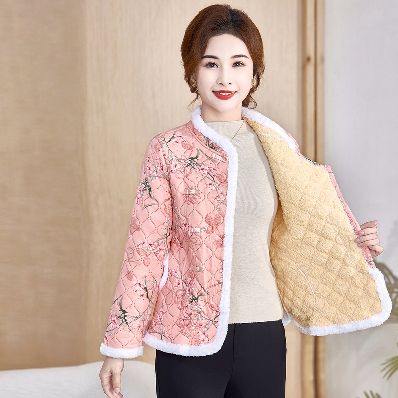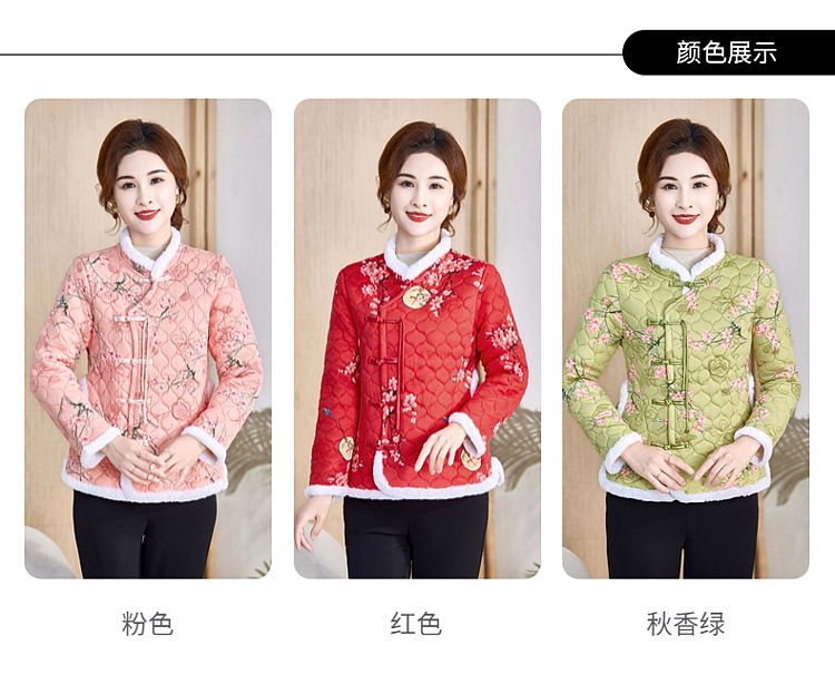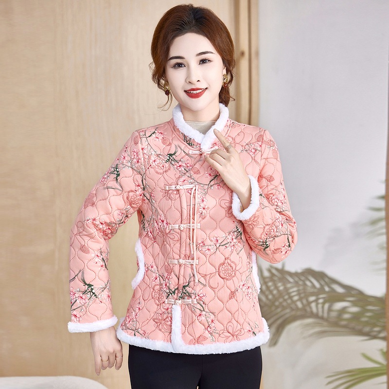 Новая хлопковая куртка ватная куртка утолщение сетка красная ретро хлопчатобумажная куртка плюс бархат китайская теплая мама зимняя женская топ