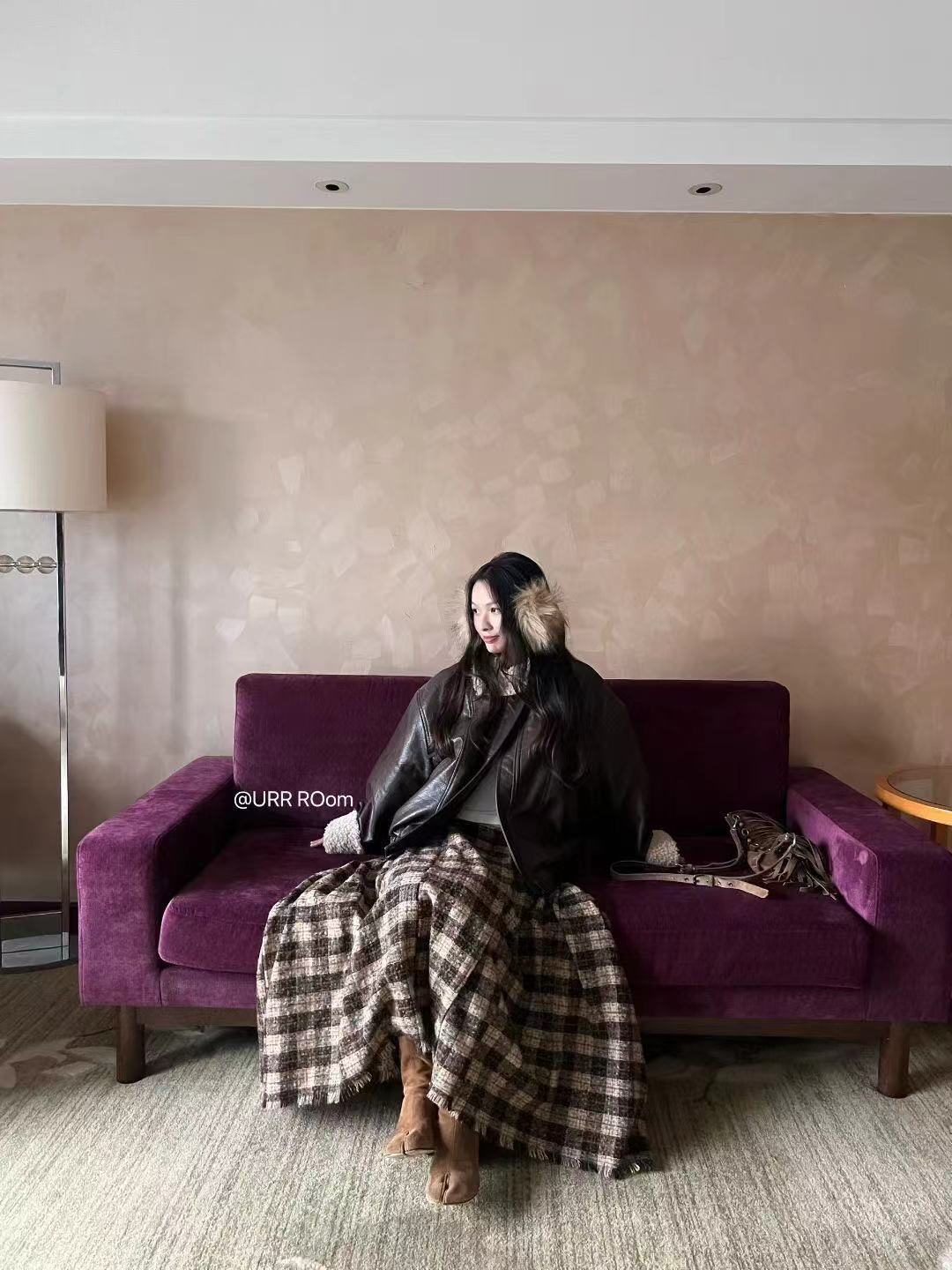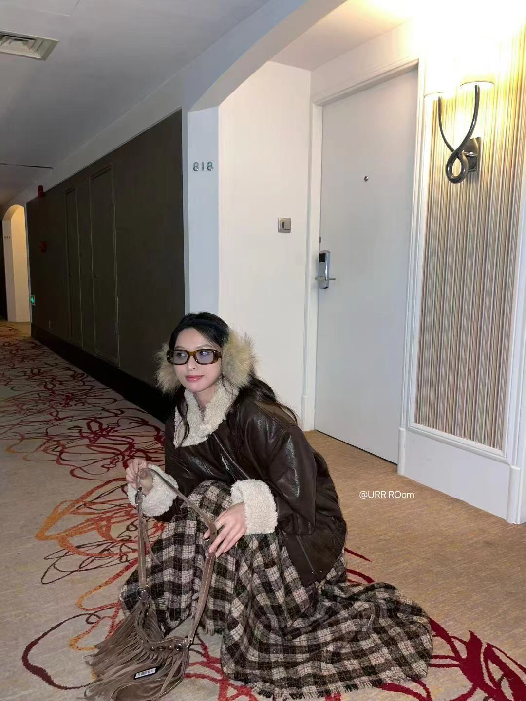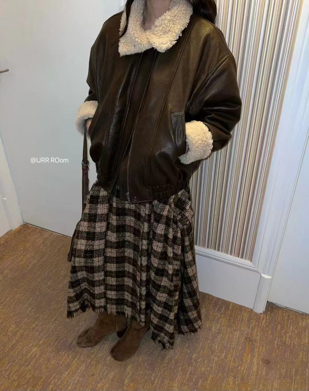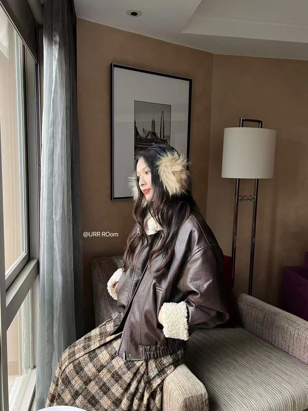 URR Room2025AW秋季新款氛围感复古美式做旧廓形美拉德夹克机车皮毛一体皮衣
