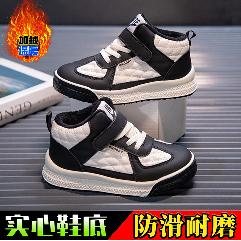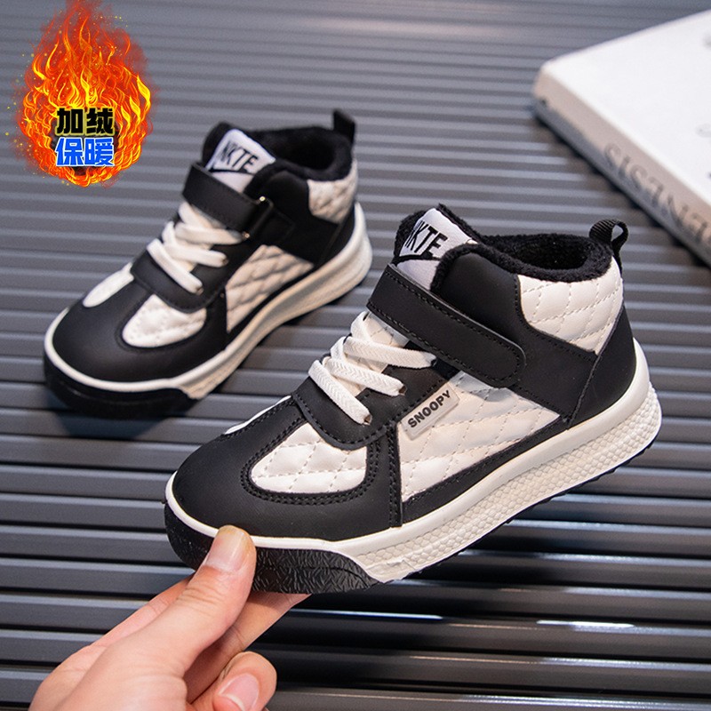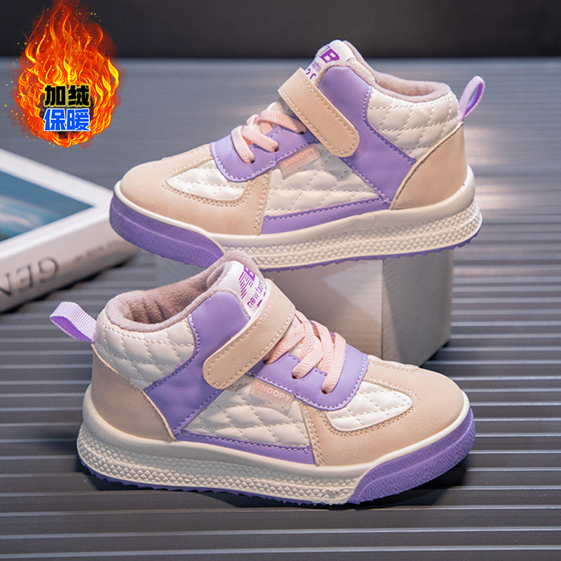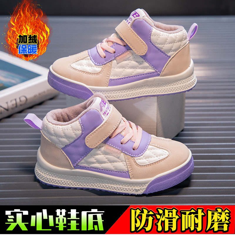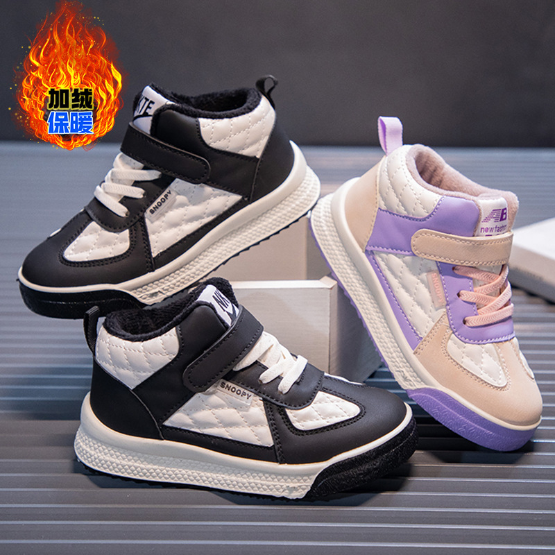 Детские высокие ботинки плюс бархатные женские кроссовки зимние новые теплые двуххлопковые ботинки для девочек повседневная детская обувь
