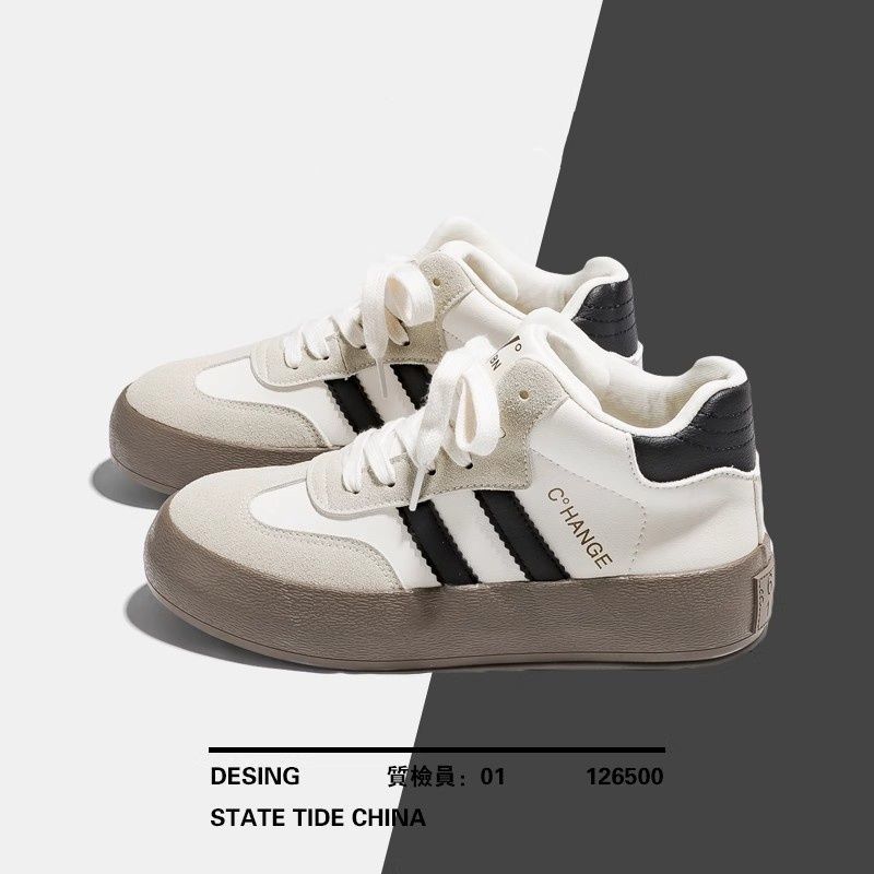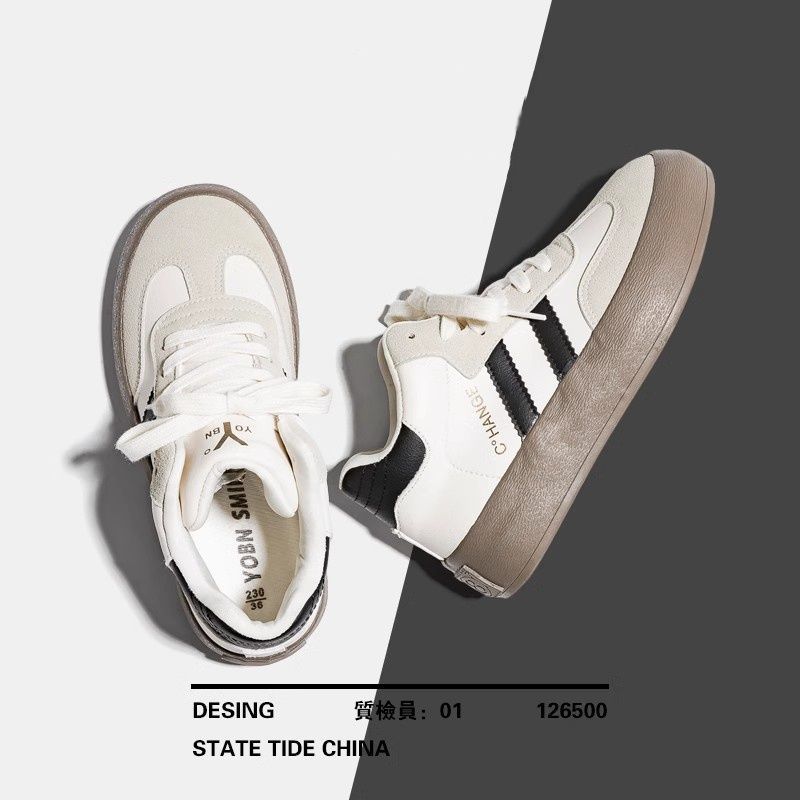 Кампус-гонконгский стиль этические кроссовки женские весенние и осенние новые 2024 дикие ретро-ччи толстые подошвы маленькие белые туфли