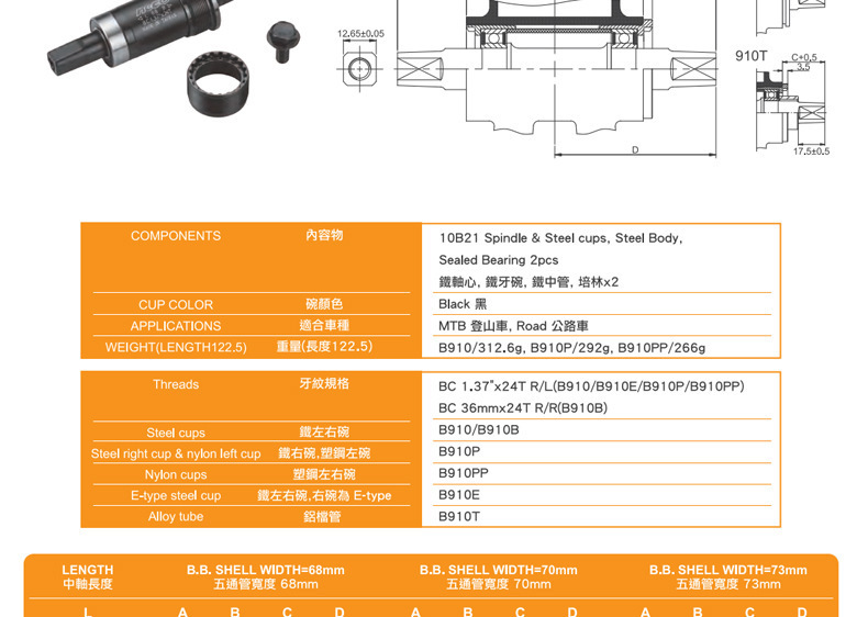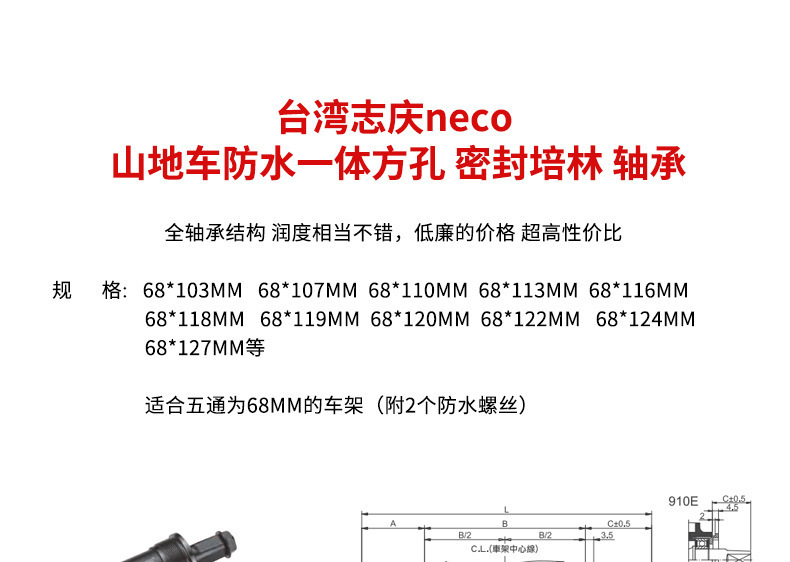 Тайвань Zhiqing Neco Mountain Велосипед интегрирован с квадратным отверстием уплотнительный подшипник Pelin 68mm