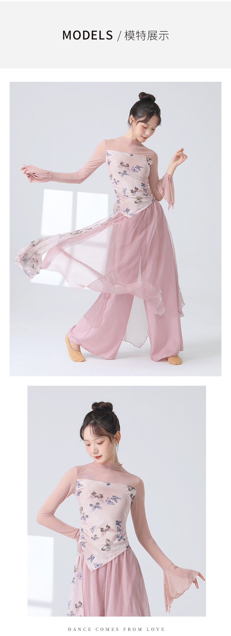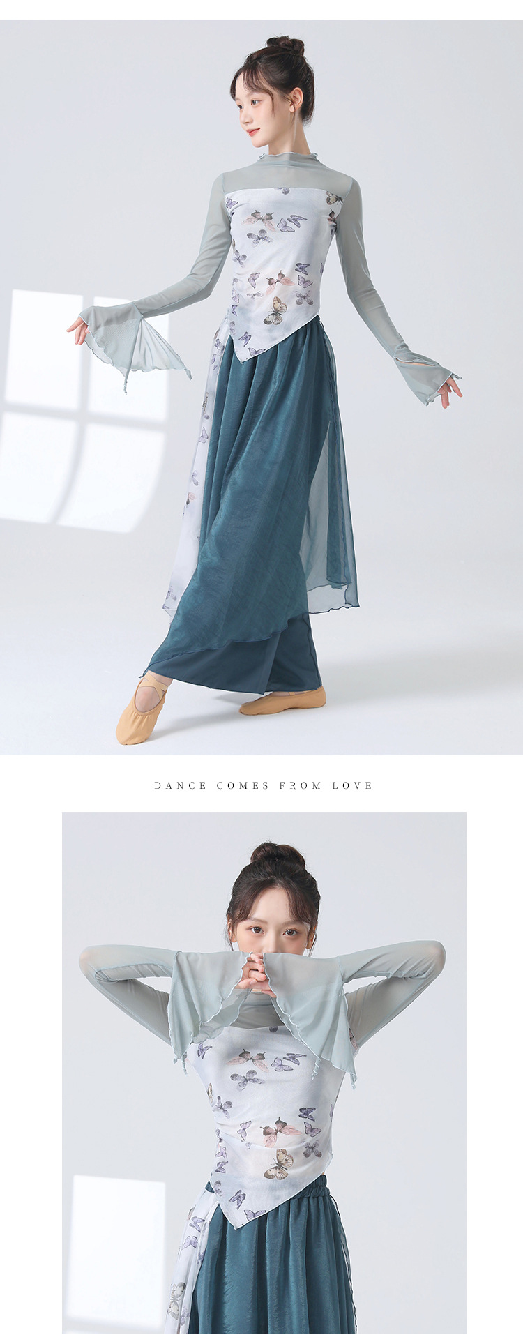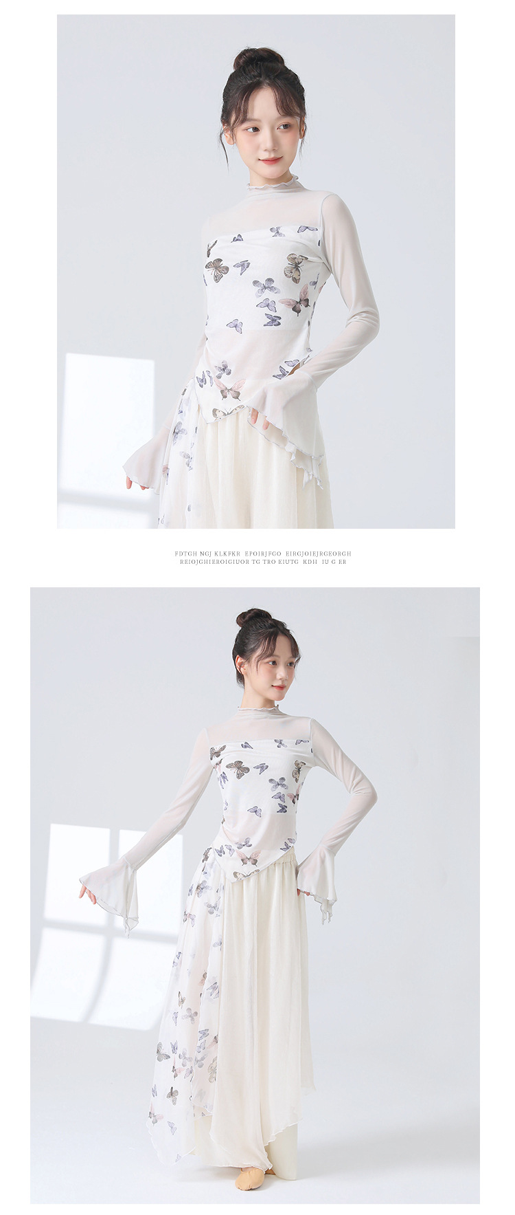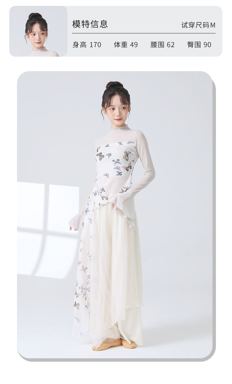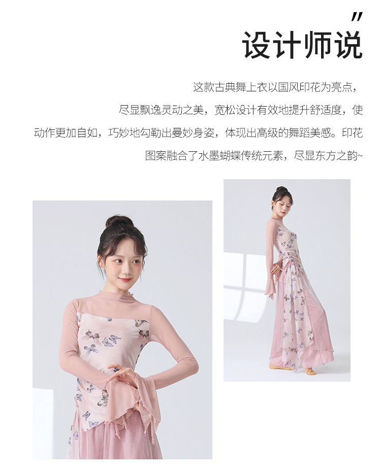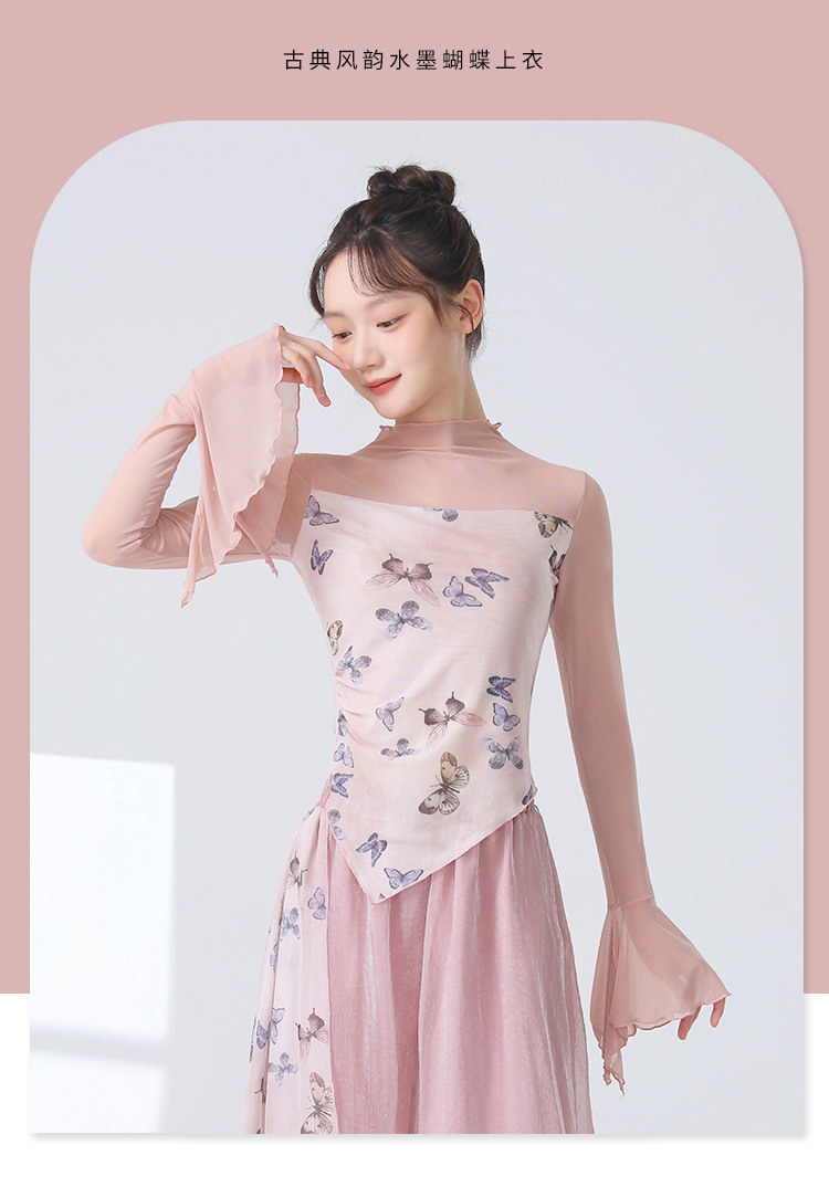 Классическая танцевальная одежда для женщин на осень, новая тонкая сетчатая тренировочная одежда с принтом, топы для ежедневных тренировок для современных танцев