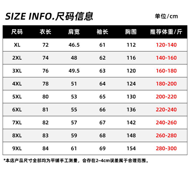 XL( 60-70kg ); 2XL( 70-80kg ); 3XL( 80-90kg ); 4XL( 90-100kg ); 5XL( 100-110kg ); 6XL( 110-120kg ); 7XL( 120-130kg ); 8XL( 130-140kg ); 9XL( 140-150kg )