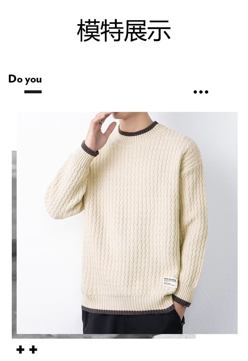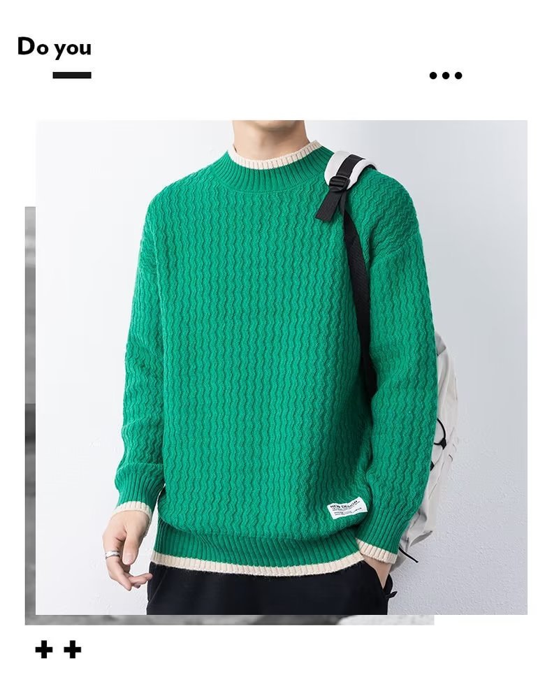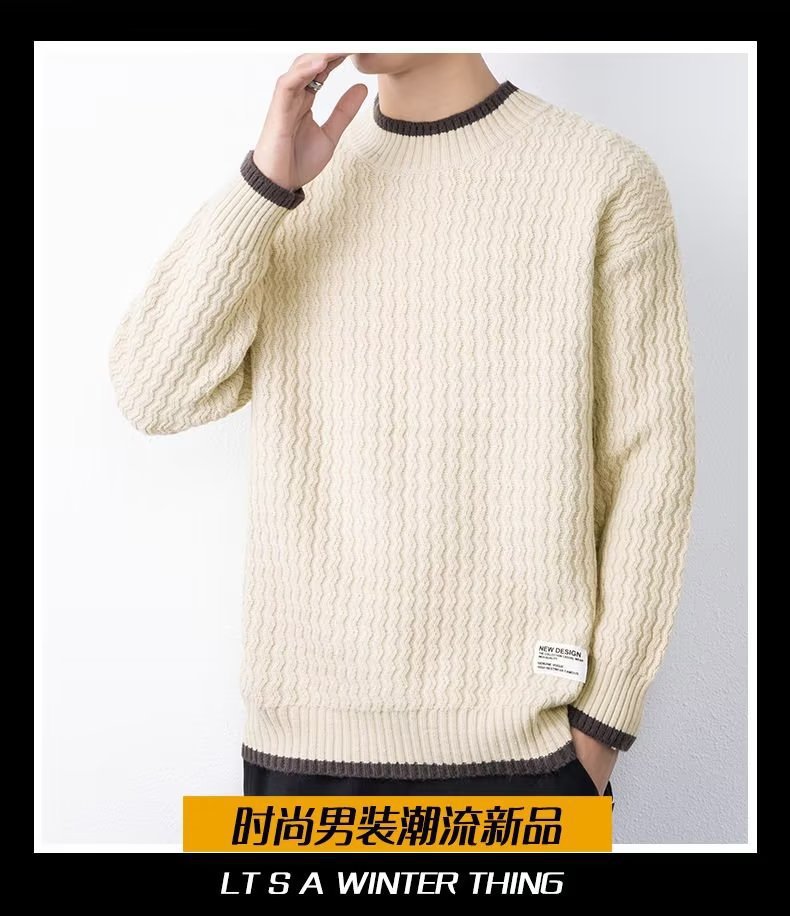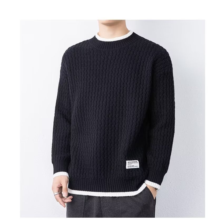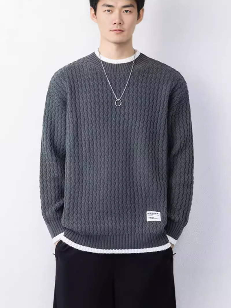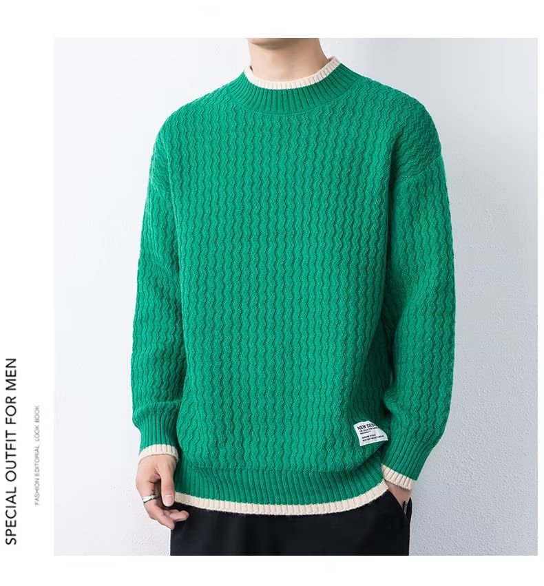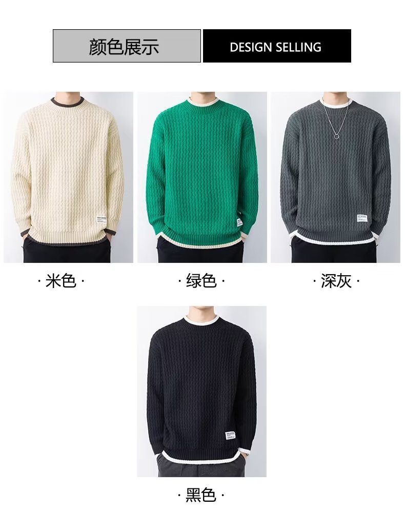 Свитер мужской осенний и зимний модный свитер бренд свитер одежда поддельные две нити тренд дикий трикотаж с полувысоким воротником с короткими рукавами