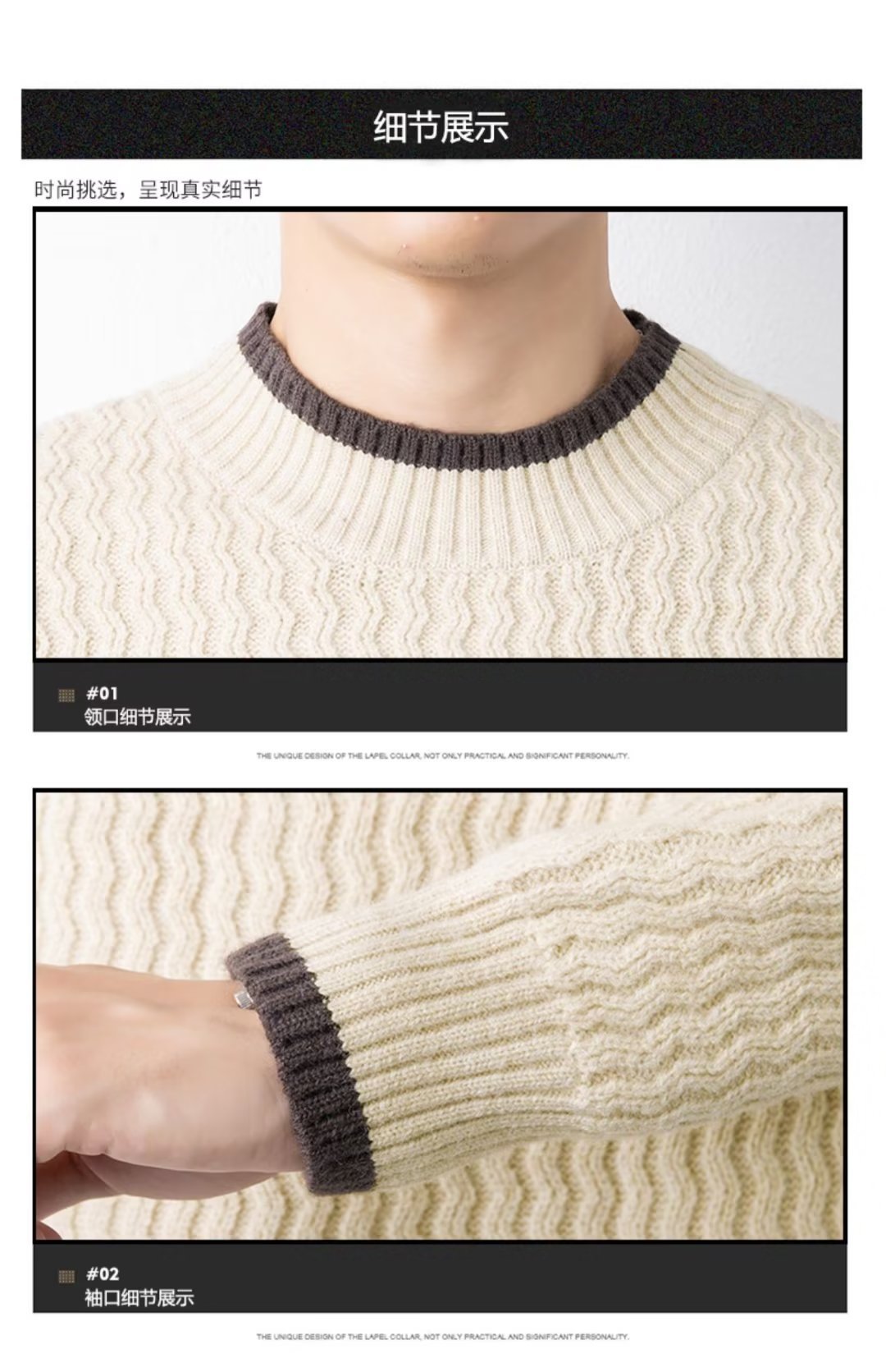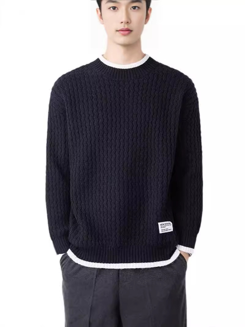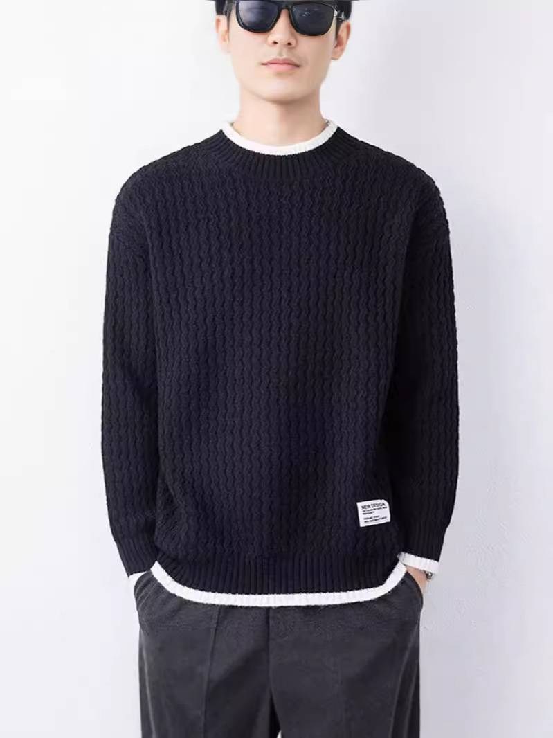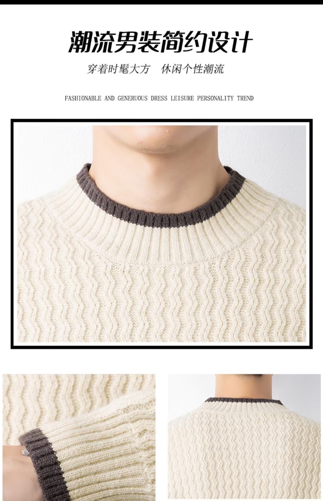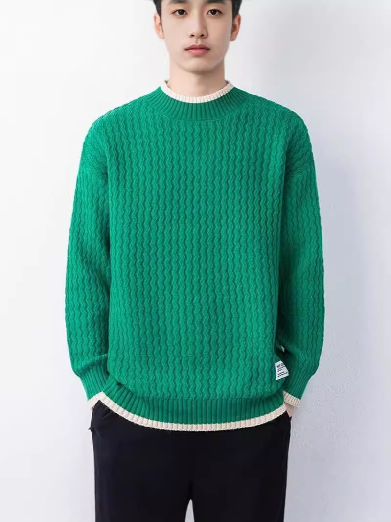 Свитер мужской осенний и зимний модный свитер бренд свитер одежда поддельные две нити тренд дикий трикотаж с полувысоким воротником с короткими рукавами
