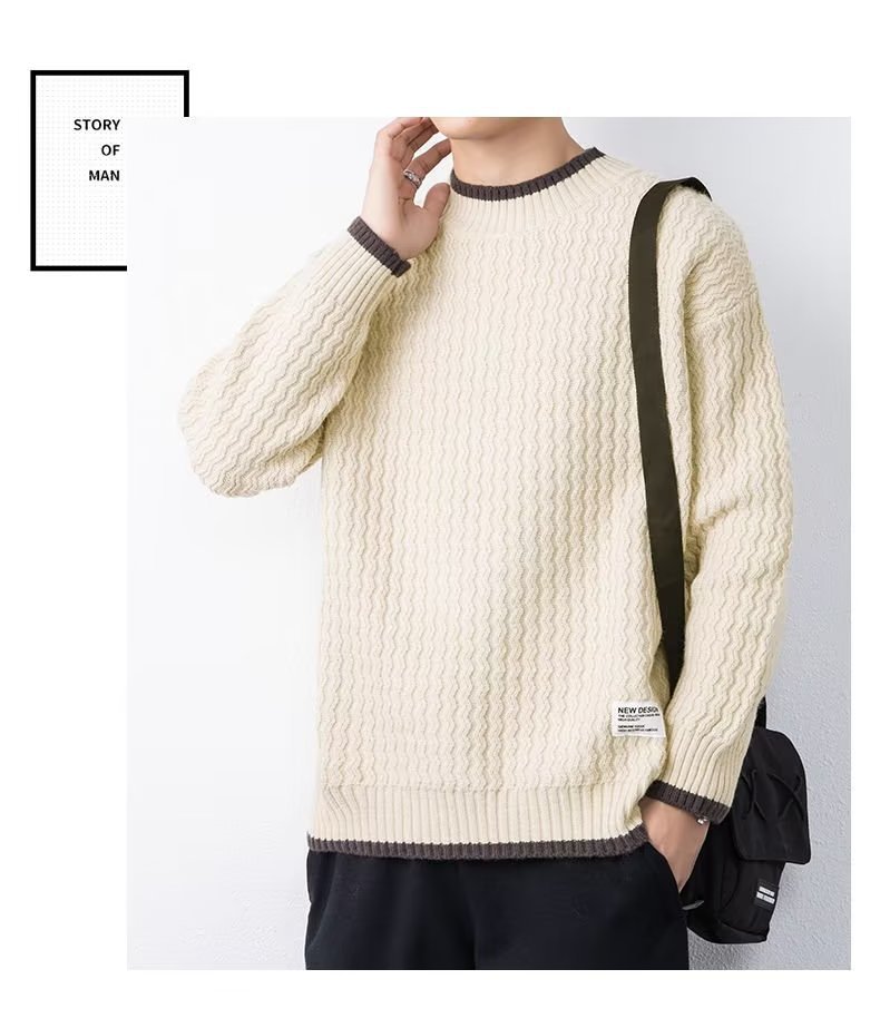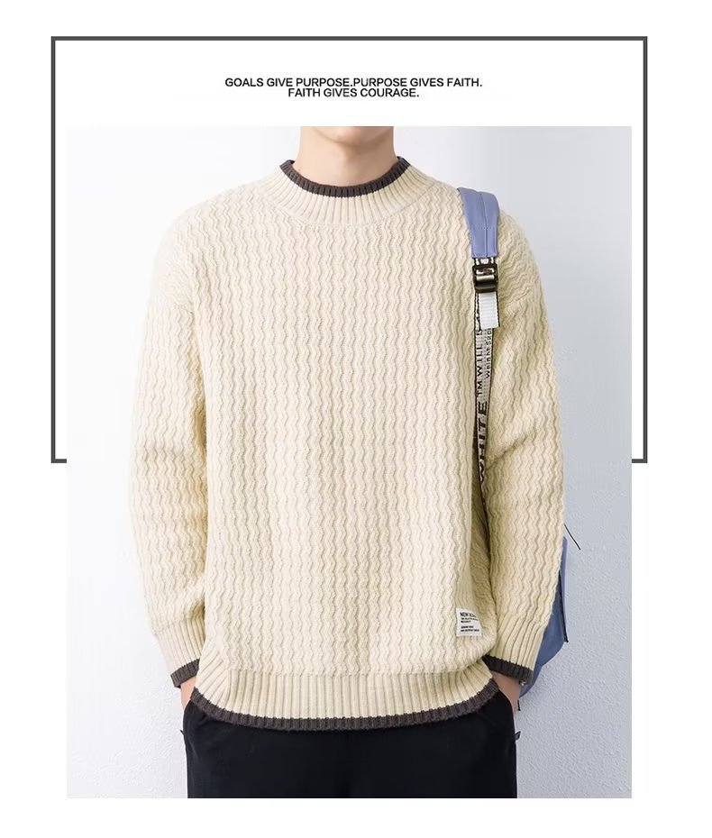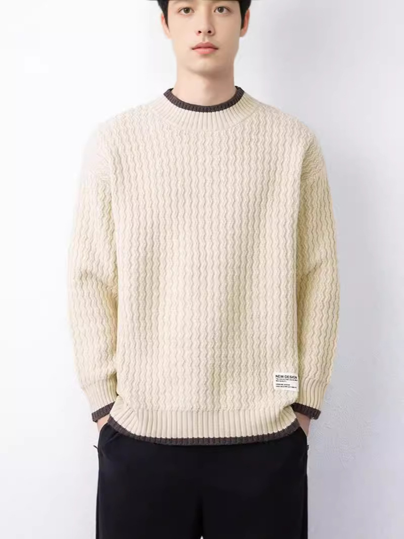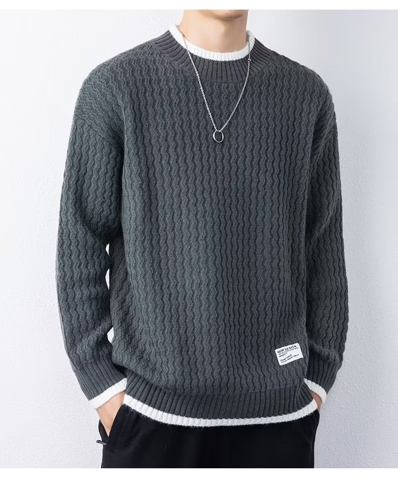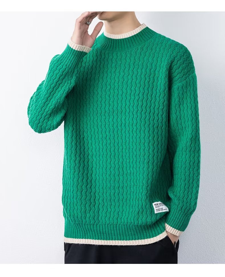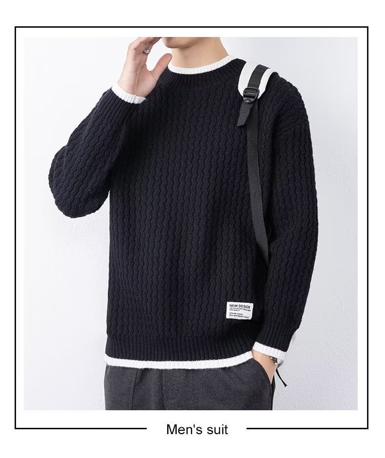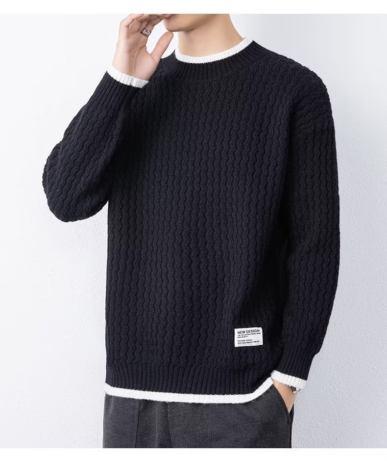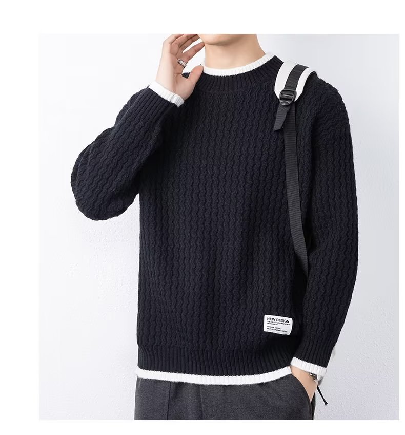 Свитер мужской осенний и зимний модный свитер бренд свитер одежда поддельные две нити тренд дикий трикотаж с полувысоким воротником с короткими рукавами