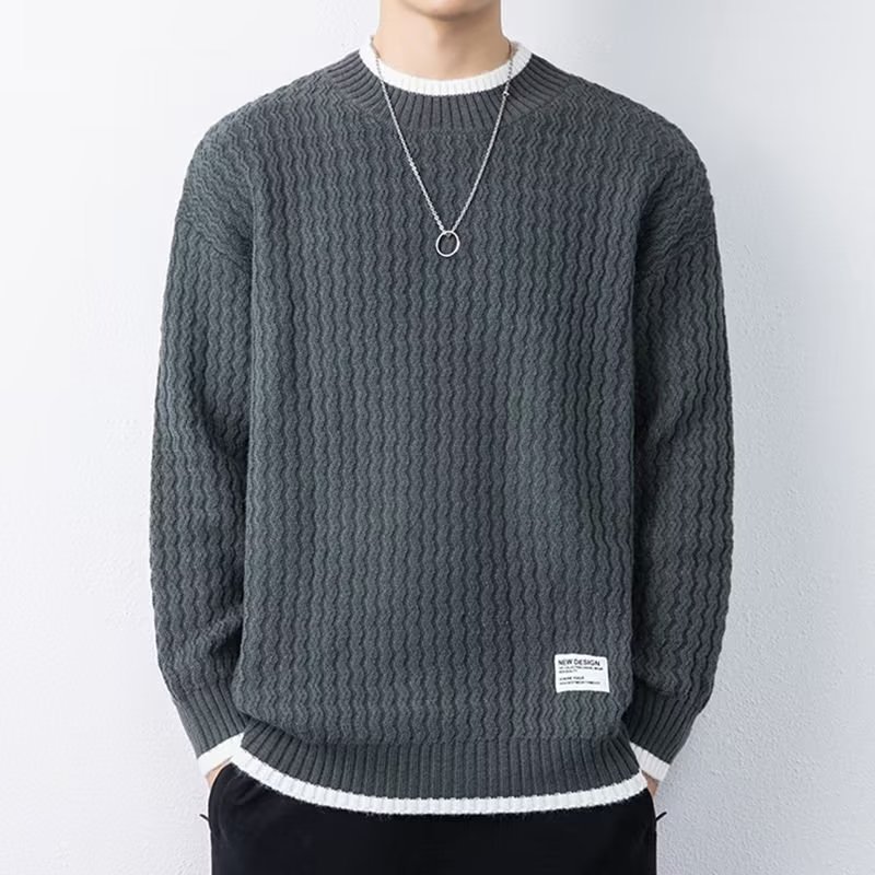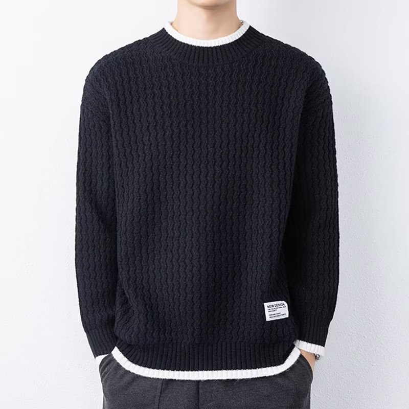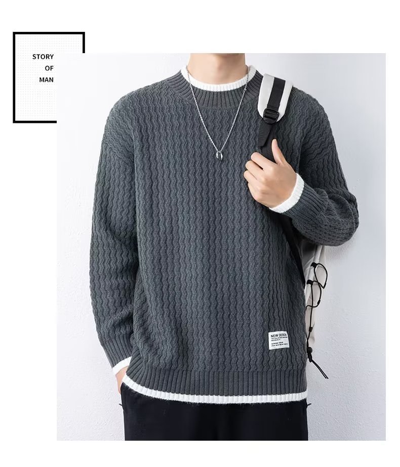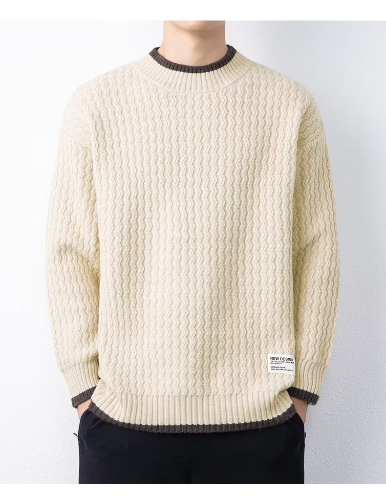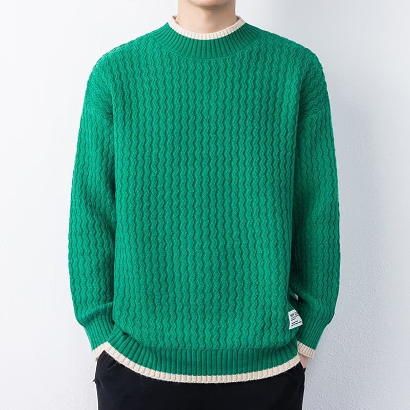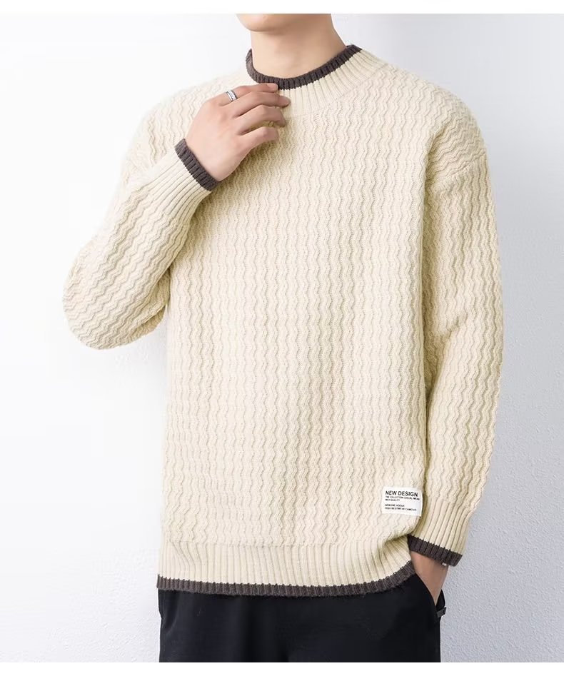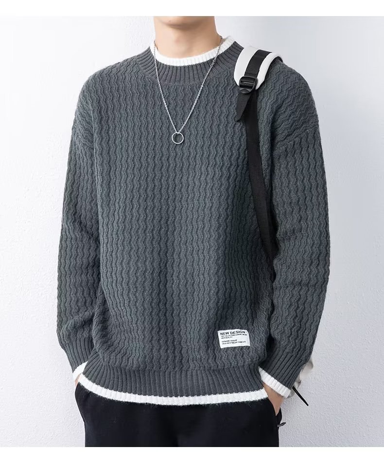 Свитер мужской осенний и зимний модный свитер бренд свитер одежда поддельные две нити тренд дикий трикотаж с полувысоким воротником с короткими рукавами