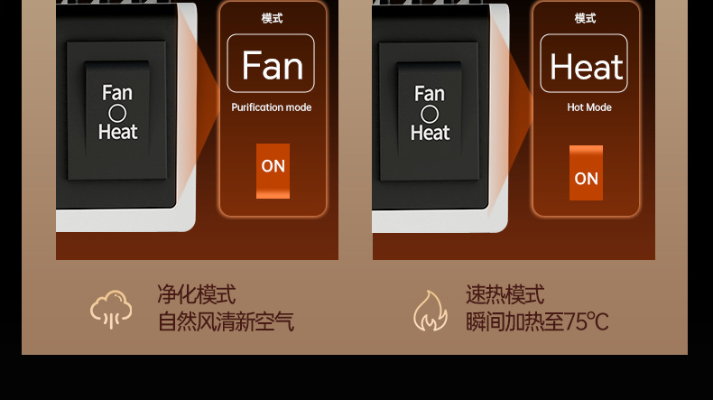 2:耐高温通透电暖风散热口 ,快速加热,取暖除霜除雾方便