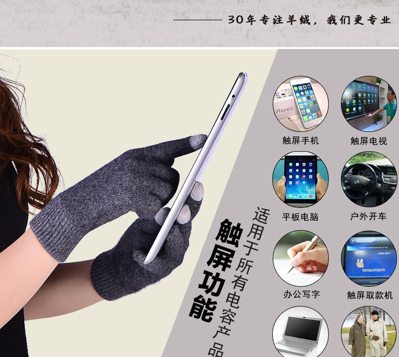 Осенний и зимний сенсорный экран шерстяные перчатки для мужчин и женщин