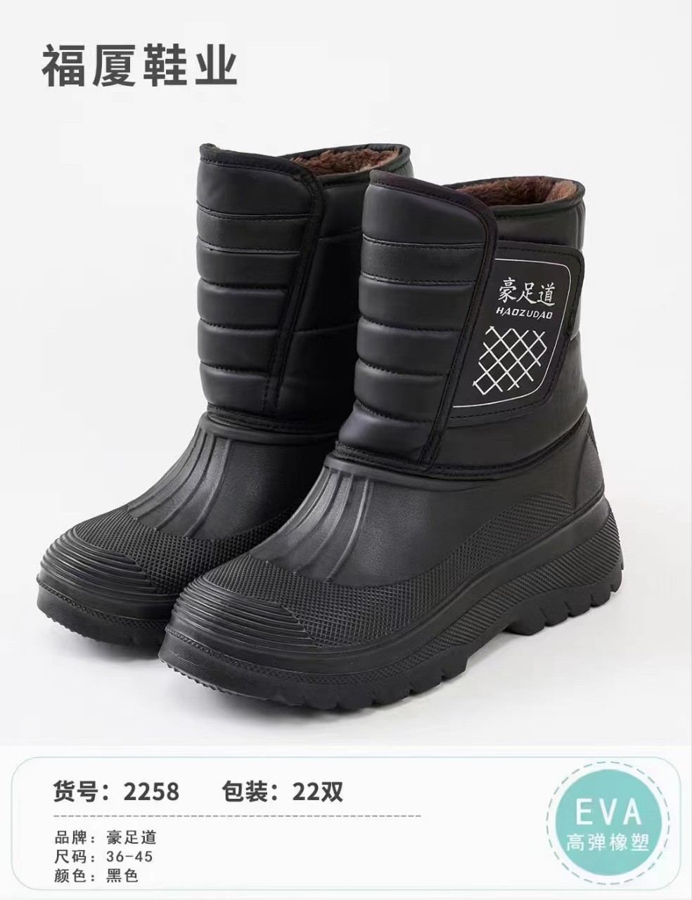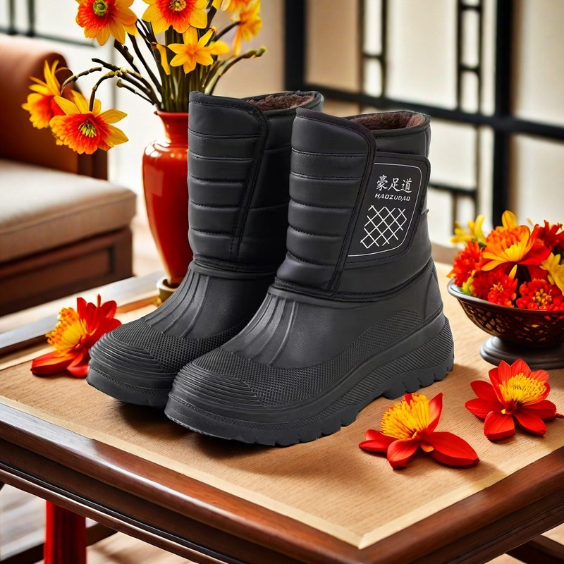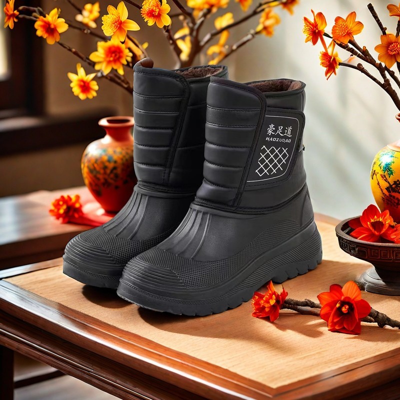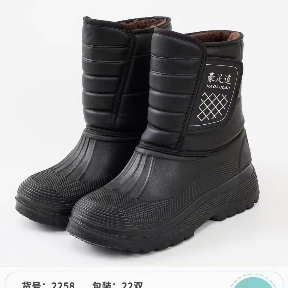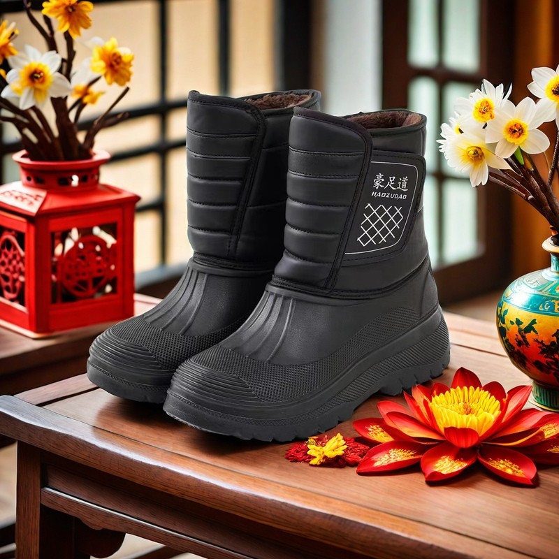 Зимние новые утолщенные северо-восточные снежные сапоги мужские нескользящие толстые подошвы легкая бархатная водонепроницаемая средняя труба хлопчатобумажные сапоги женские хлопчатобумажные сапоги