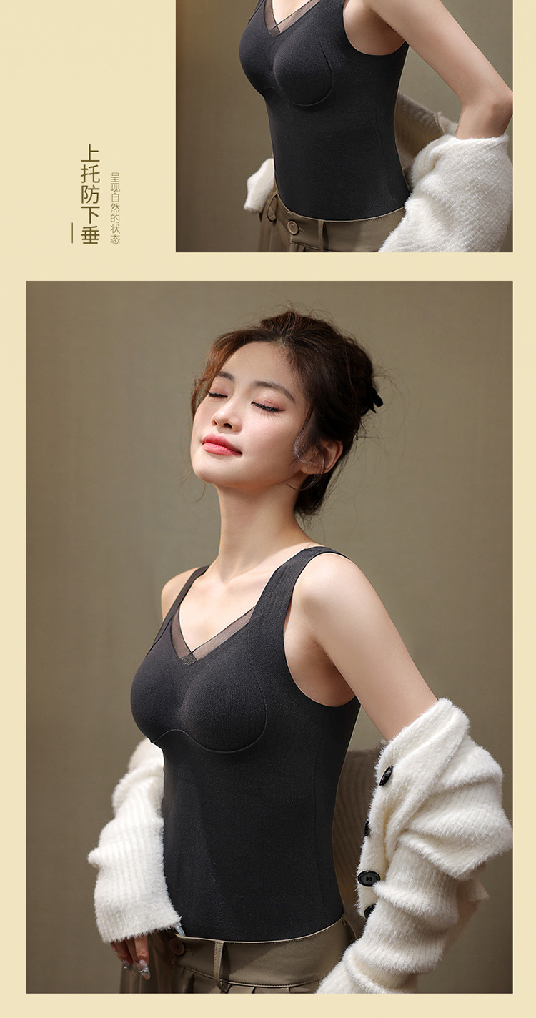 Осенний и зимний новый кружевной теплая жилет delong женский пол-фиксированная чашка все в одном бархатный утолщенный термобелье женский