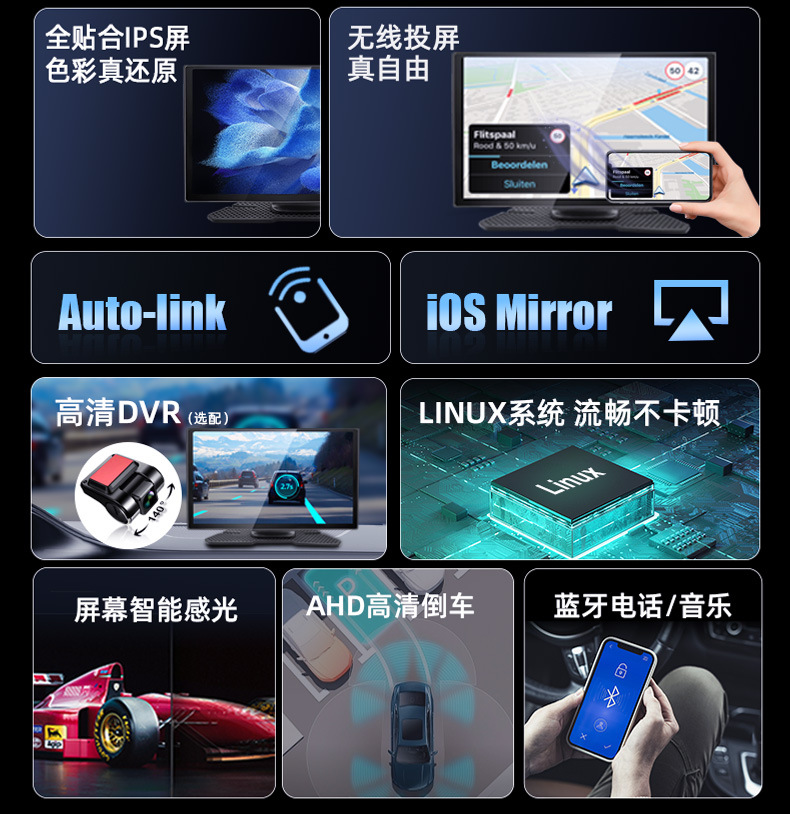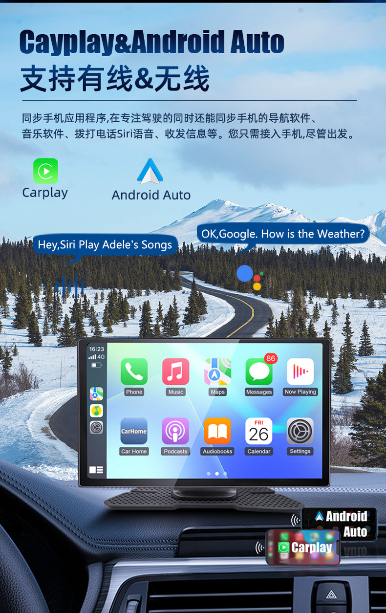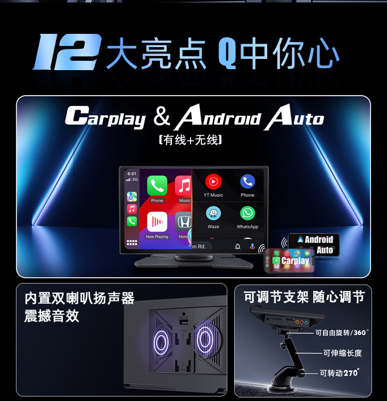 1.支持有线/无线carplay&android auto,有线/无线手机投屏
