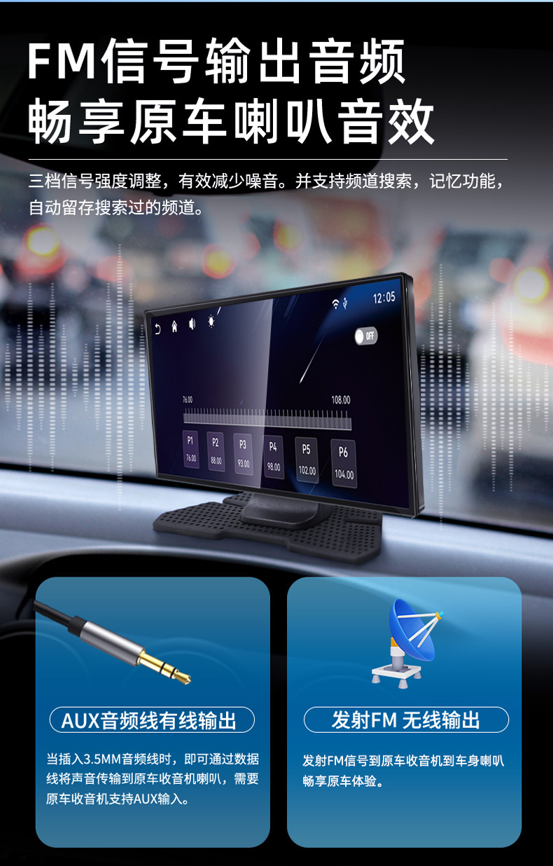 7.两种连接方式:FM信号无线连接 / AUX音频线连接