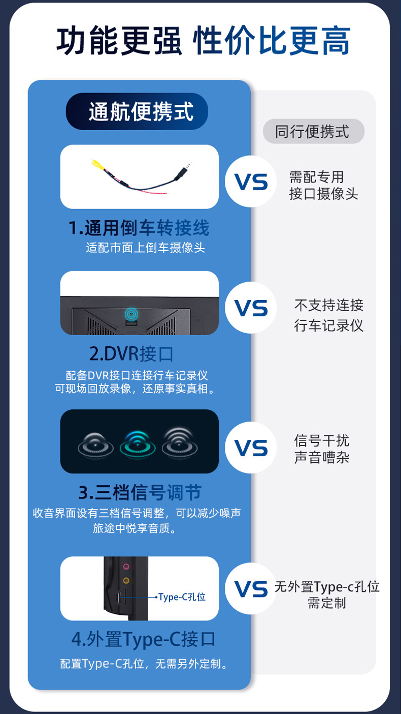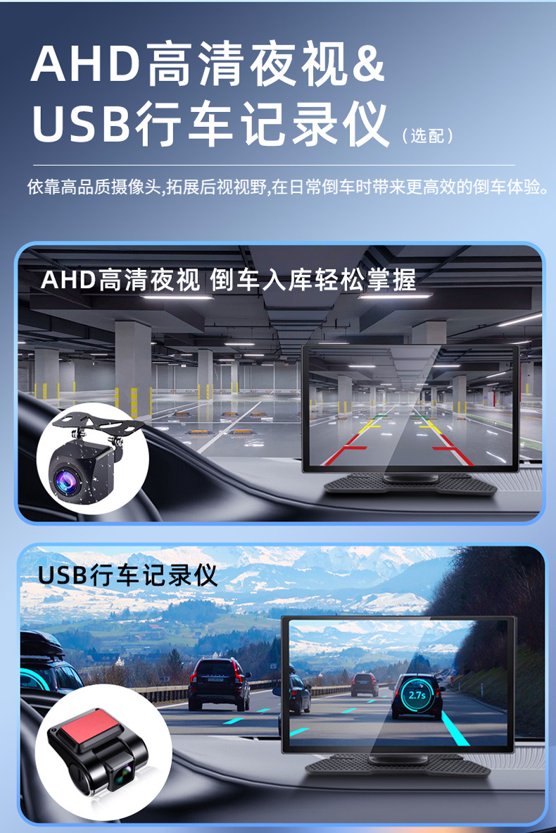 2.支持外接通用摄像头,AHD高清倒车影像